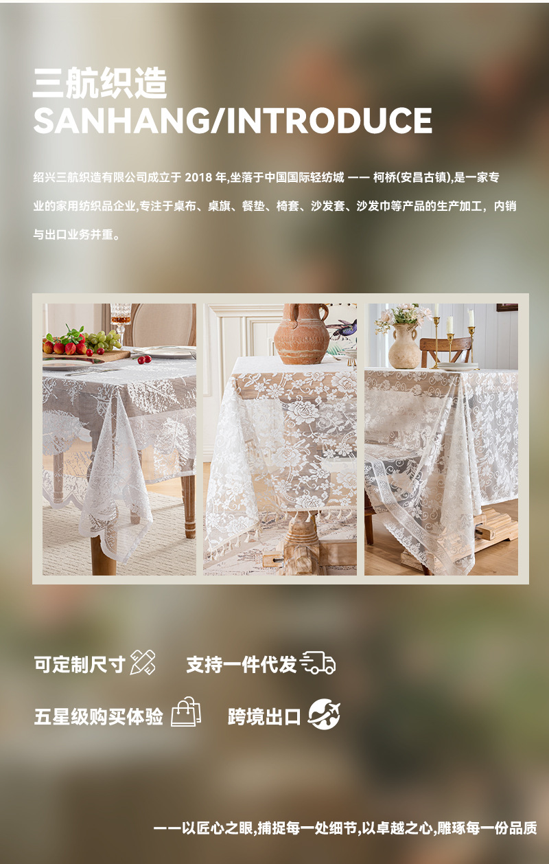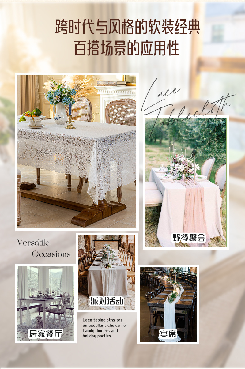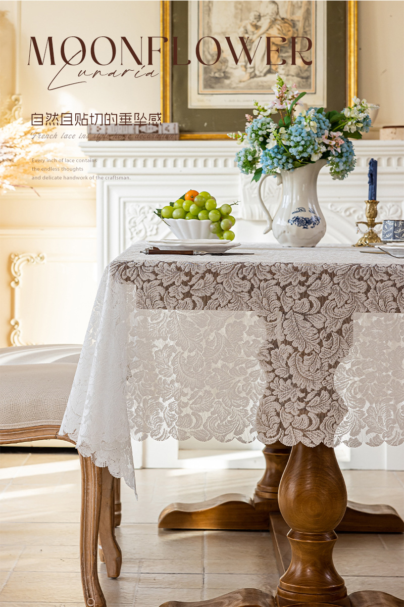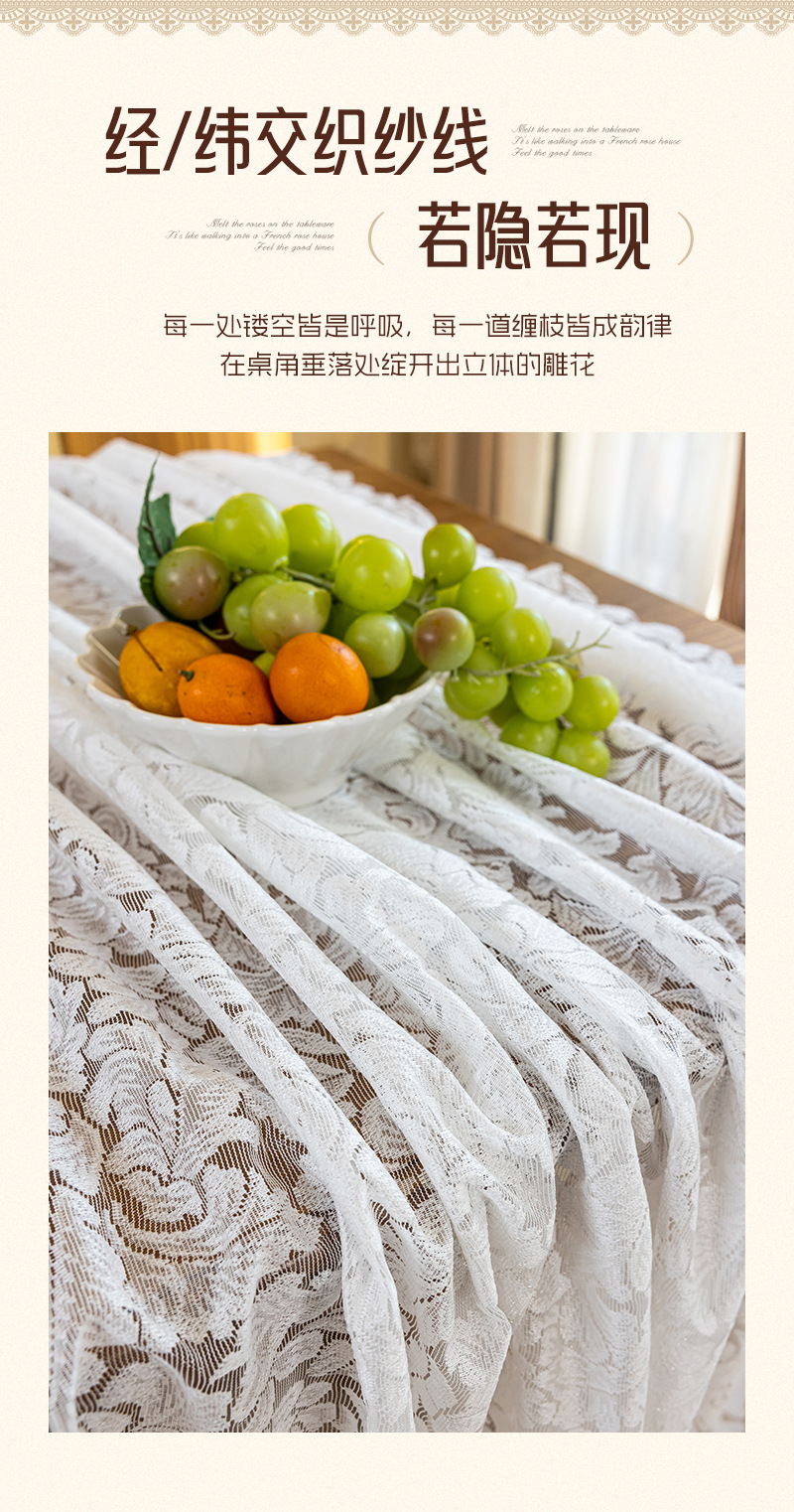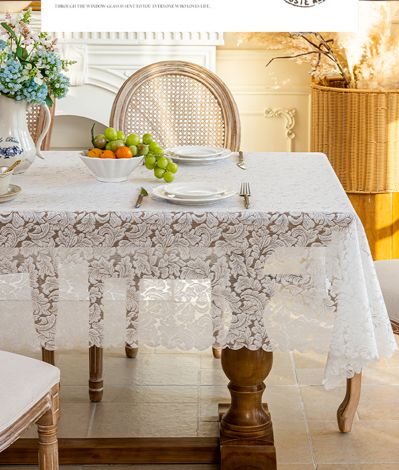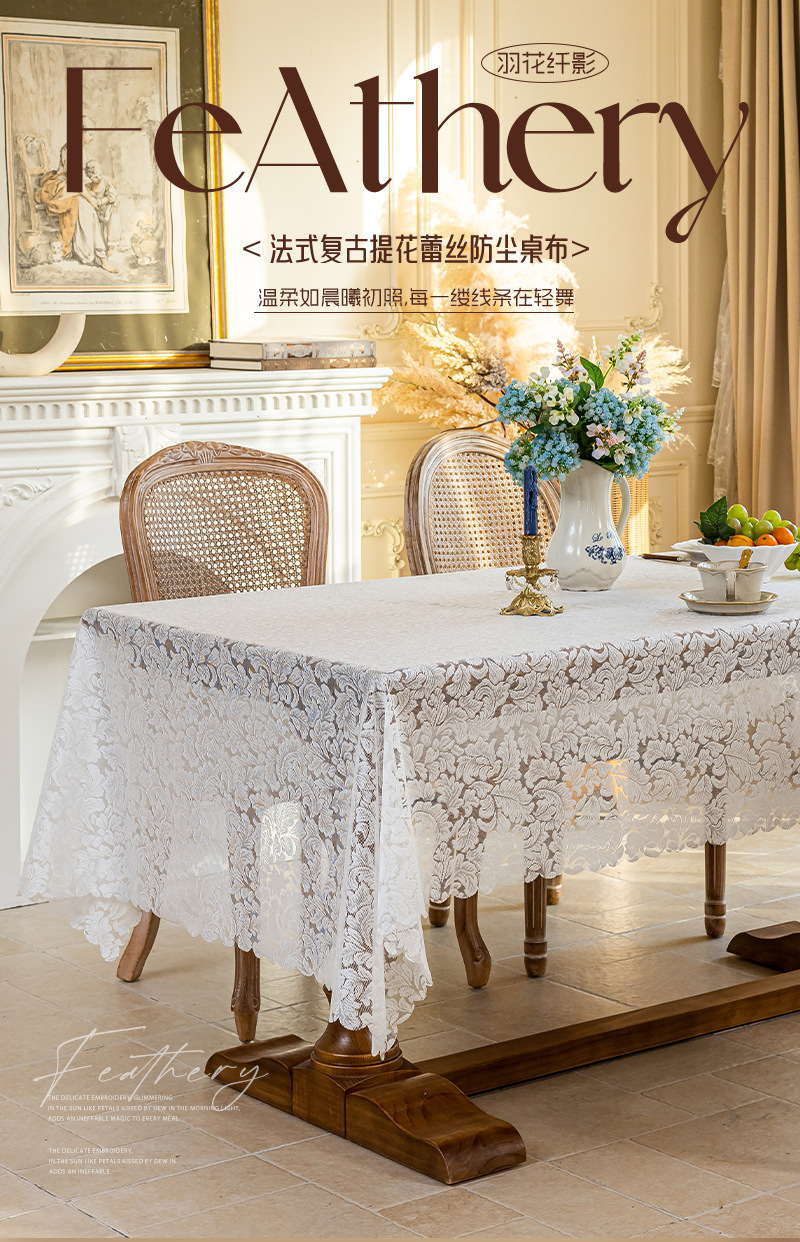 Topa de mesa de bodas francesa de encaje a prueba de polvo de mesa de decoración al aire libre bandera cubierta venta directa de 2026 manteles de mesa de Año Nuevo