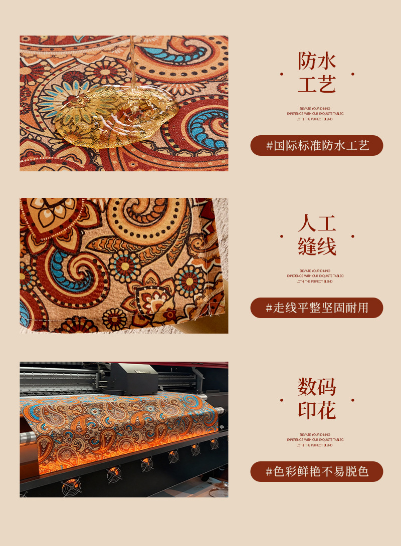 Transfronterizo bohemia tela de mesa impermeable a prueba de polvo tela de mesa resistente al desgaste impresión digital atmósfera sensación de tela decorativa nueva