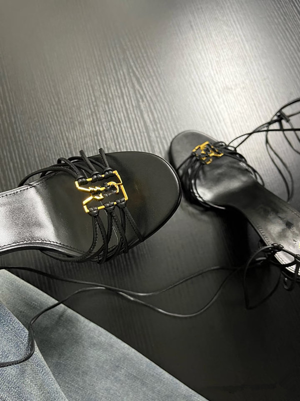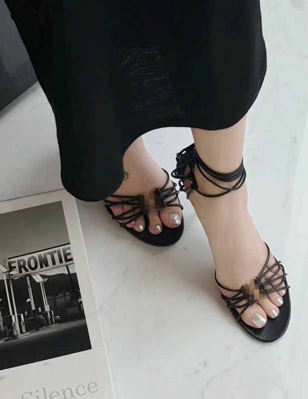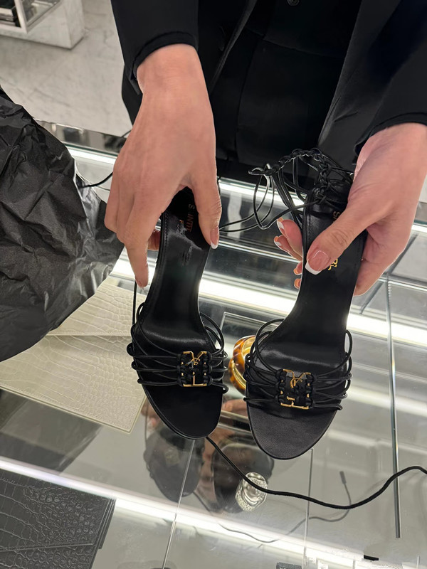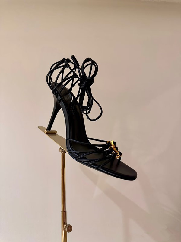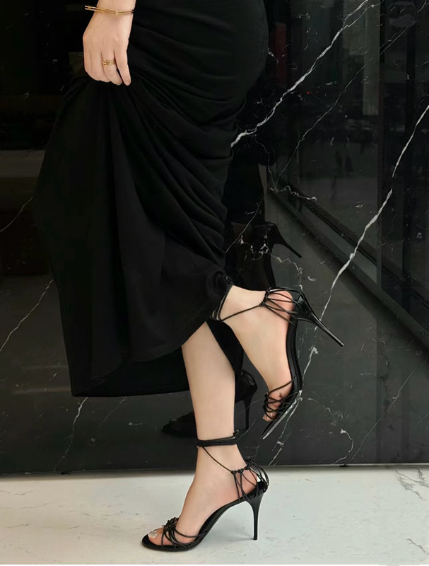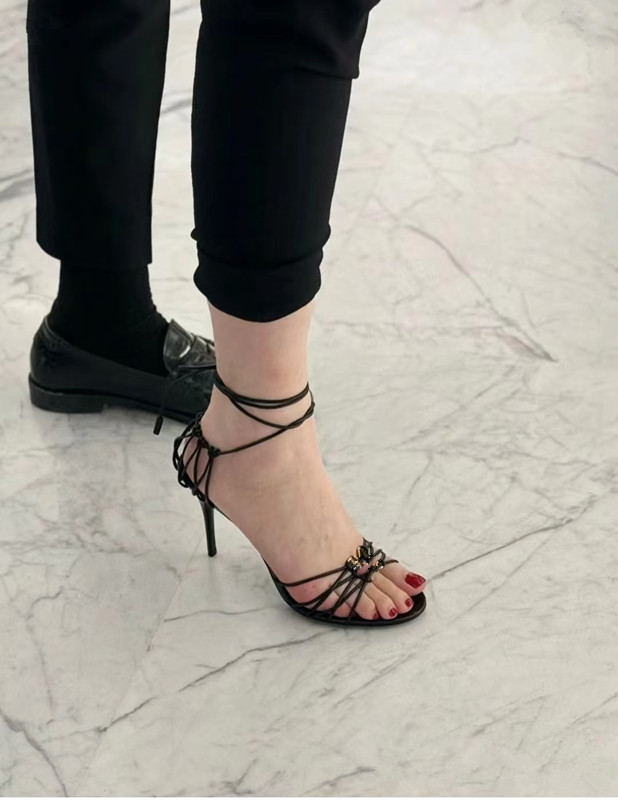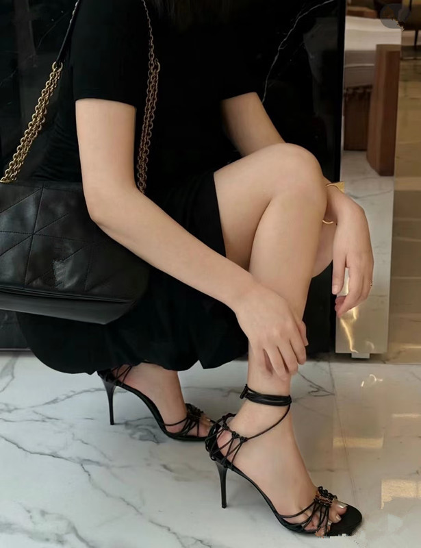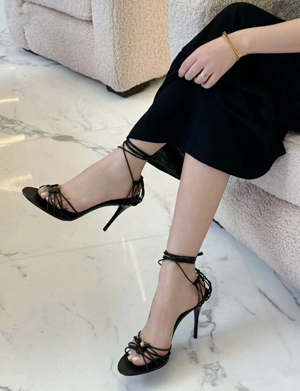 2025 Cross-border YS sexy zapatos de tacón alto con cordones cruzados para mujer nuevas letras hebilla de metal con punta abierta sandalias romanas