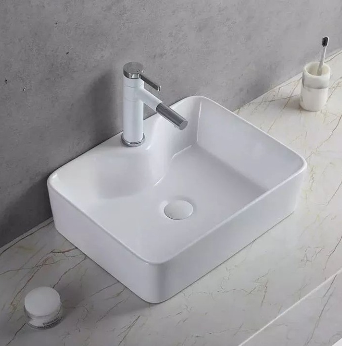 Fábrica directa ingeniería especial baños cuadrados lavabo de cerámica blanca mesa lavabo de un solo agujero lavabo