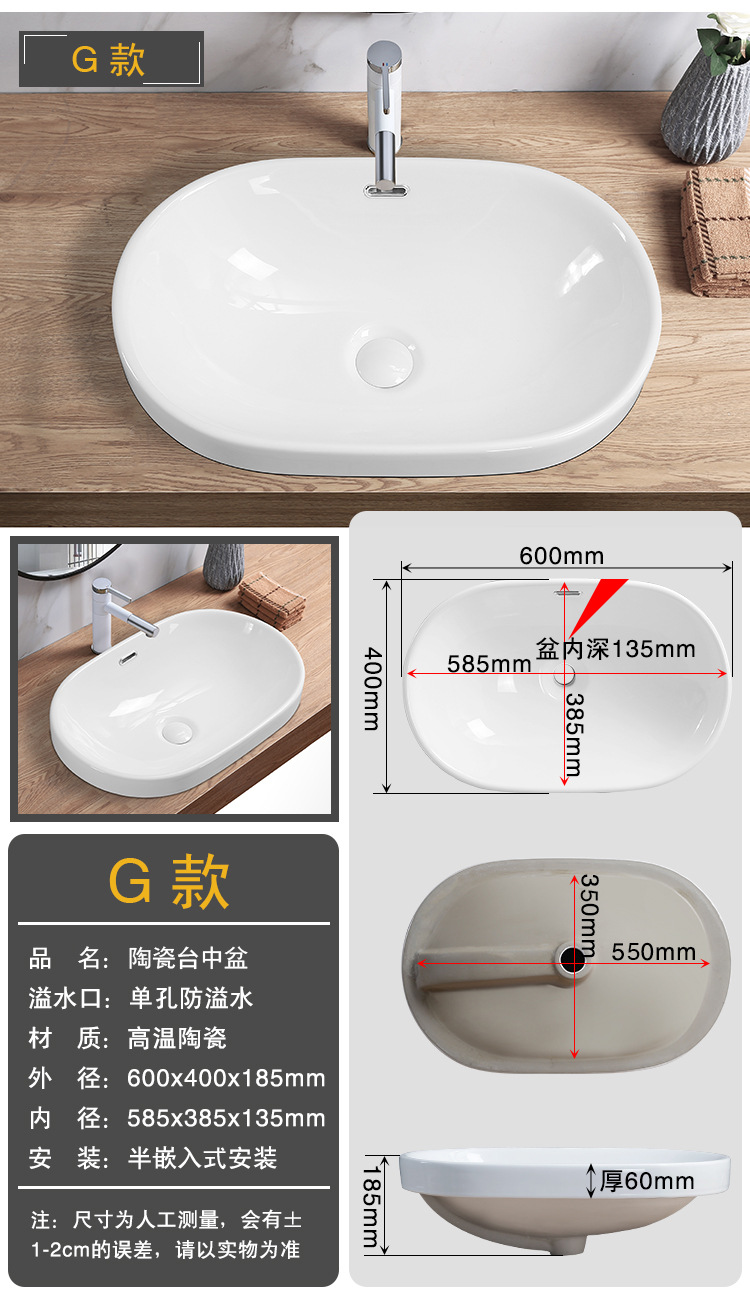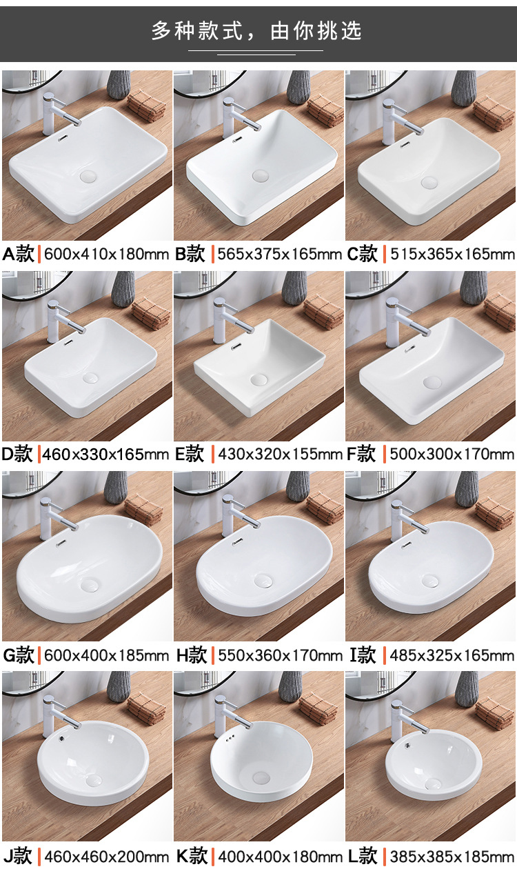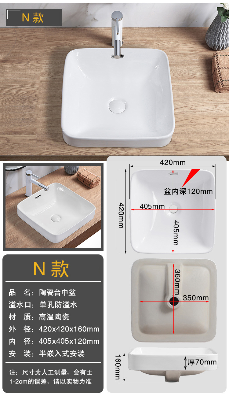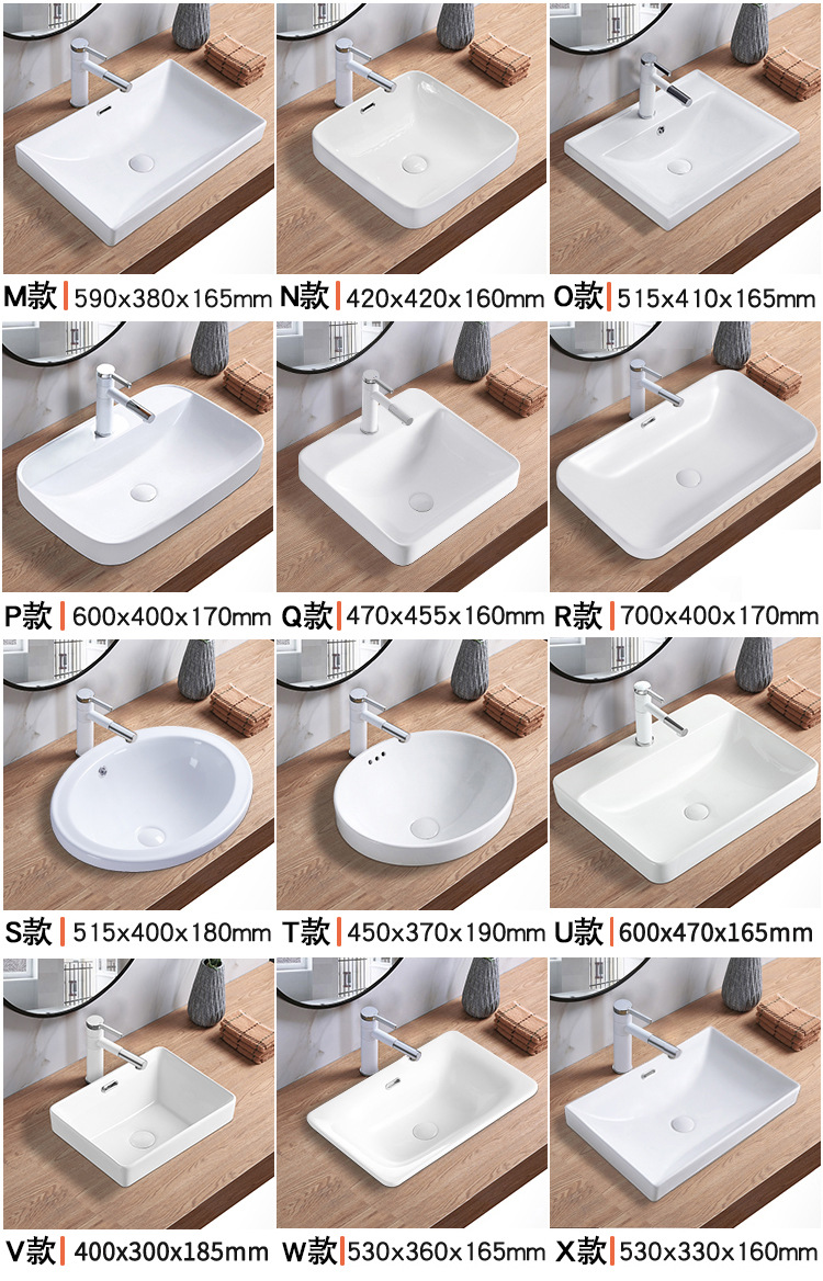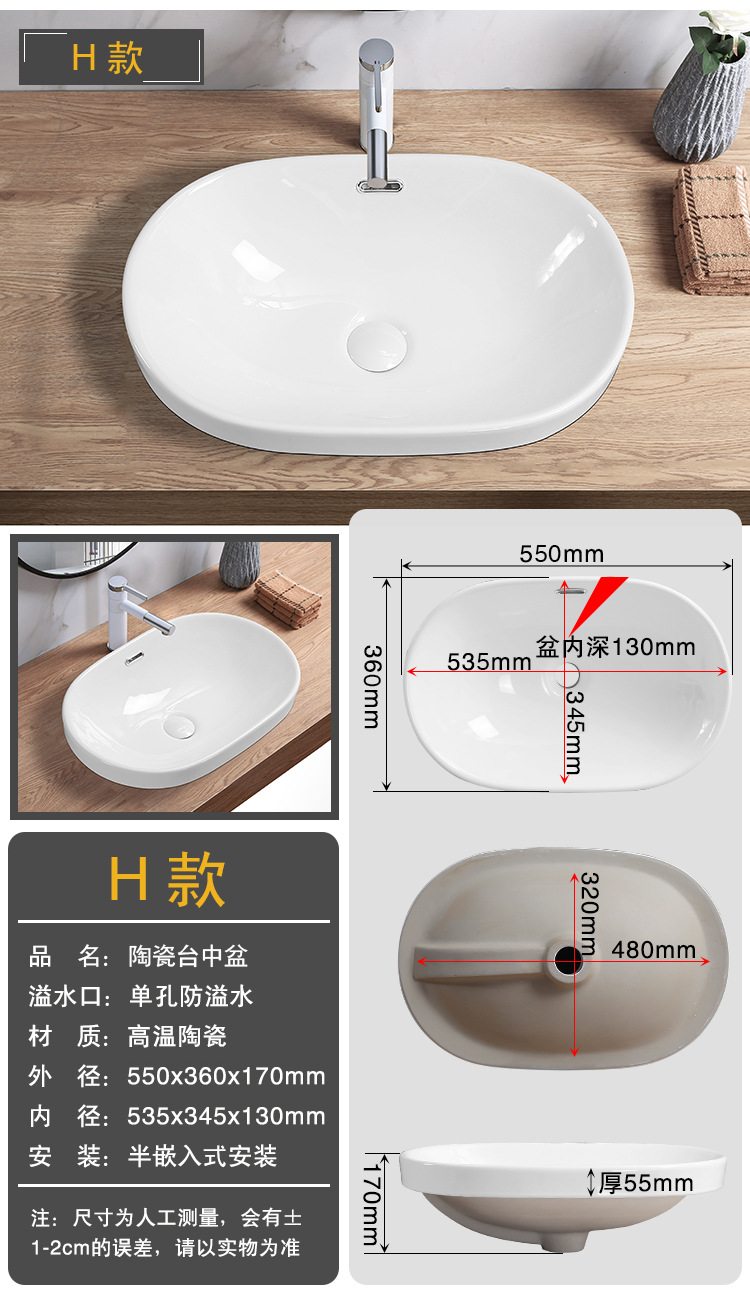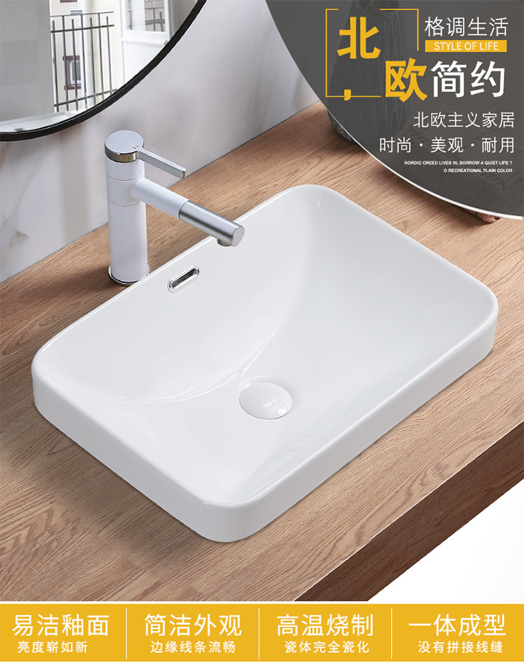 Taizhong cuenca semicrumpida en cerámica cuenca de mesa lavabo de baño doméstico lavabo rectangular lavabo elíptico lavabo