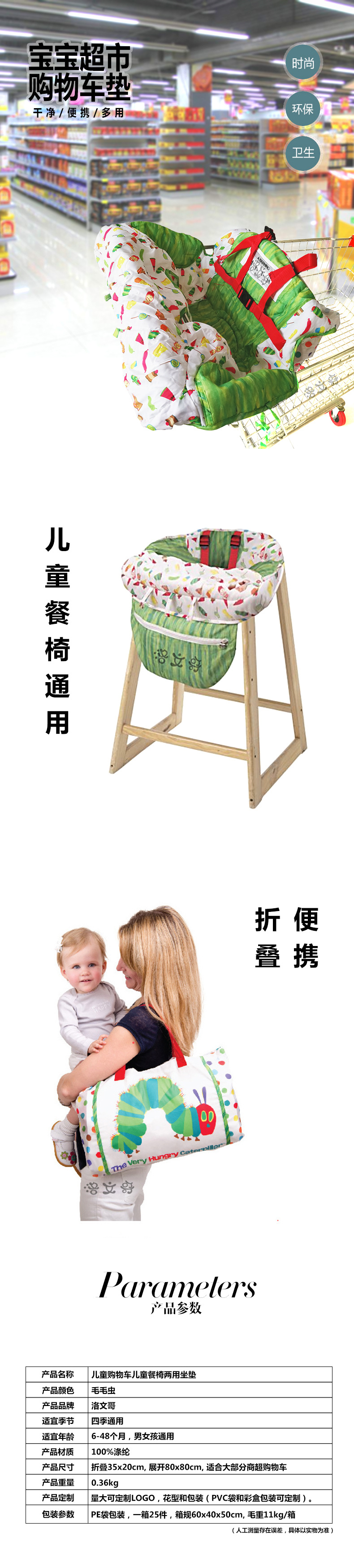 Ventas directas de fábrica transfronterizas dos en uno carrito de compras de supermercado para bebés Silla de comedor protección de seguridad cojín de viaje portátil
