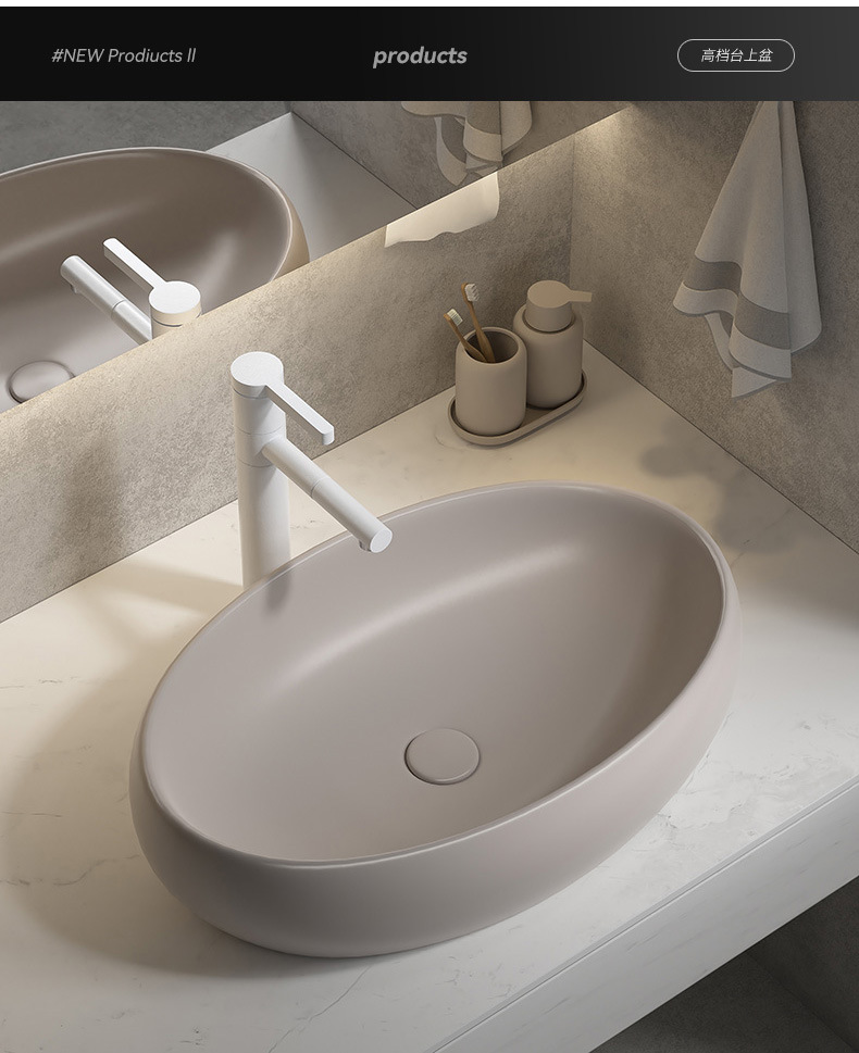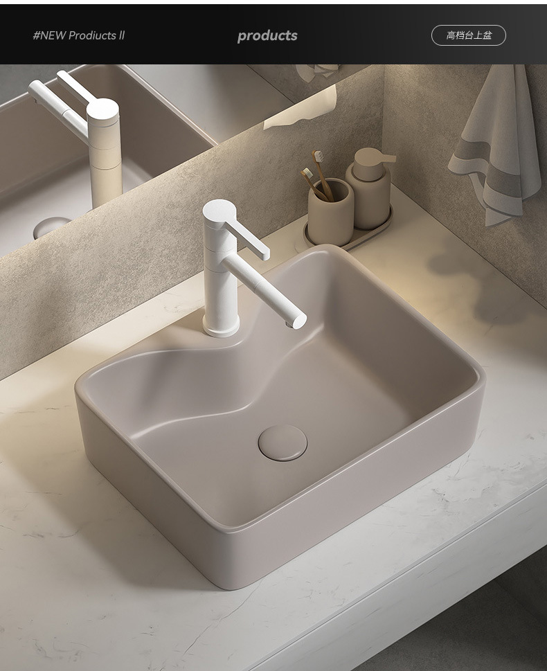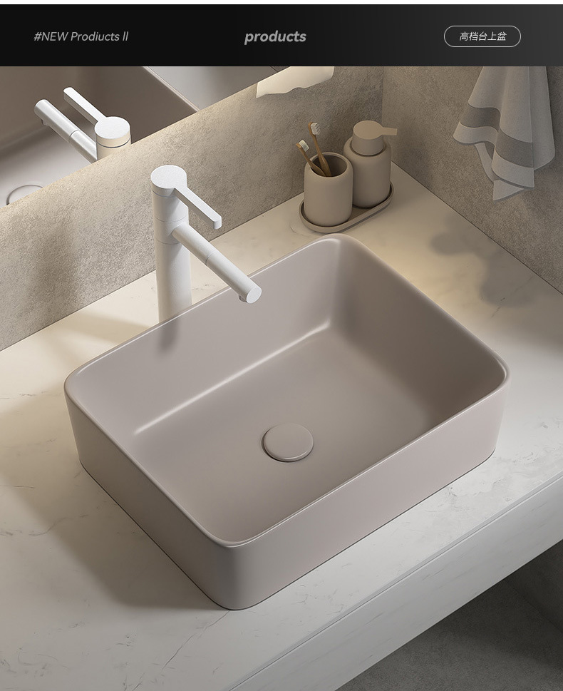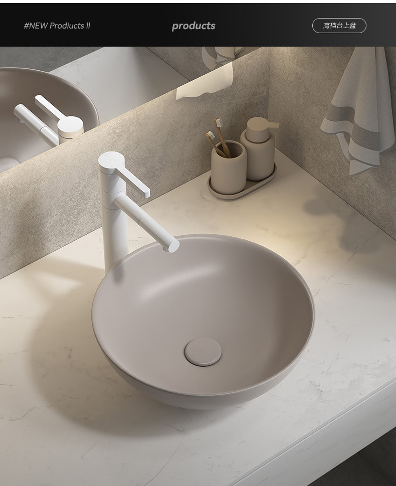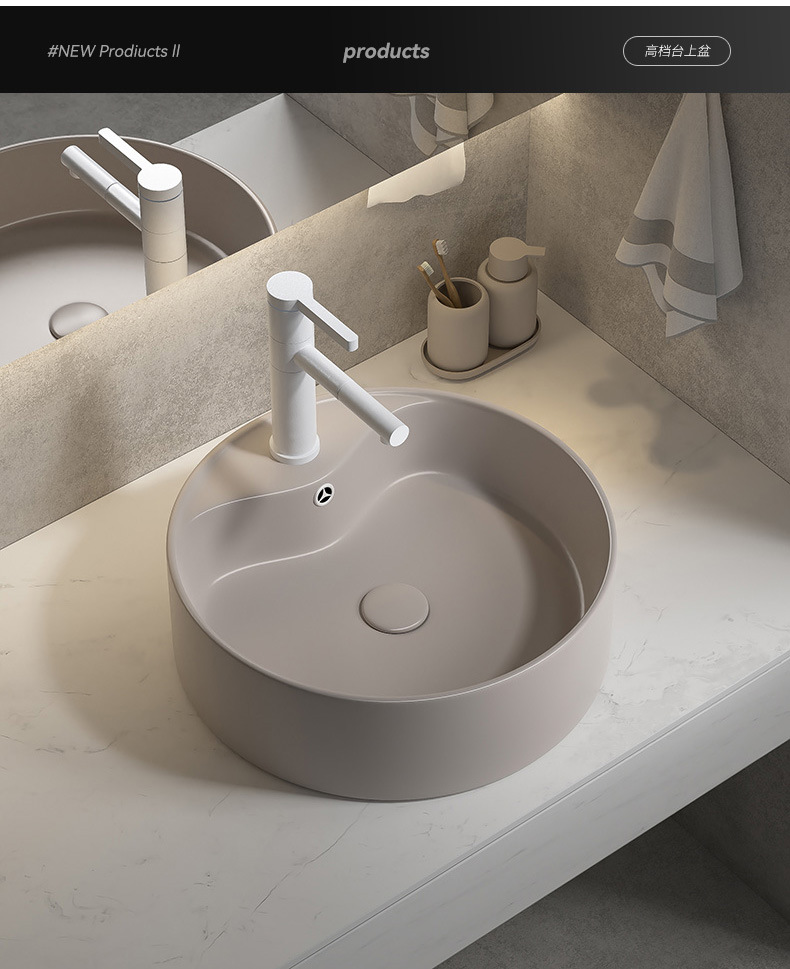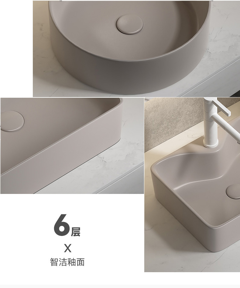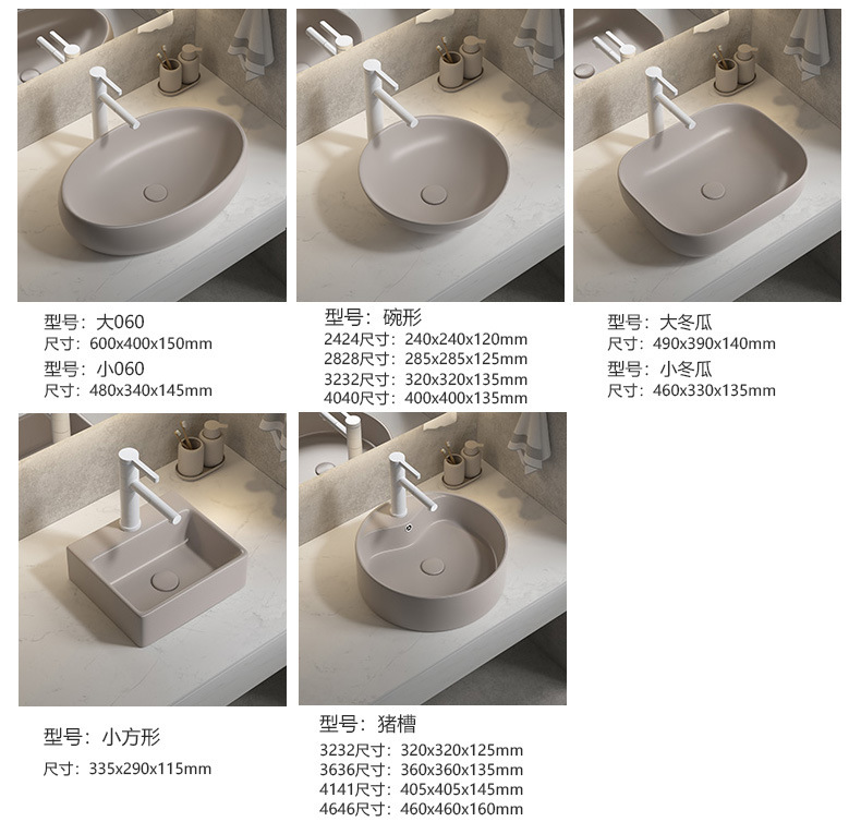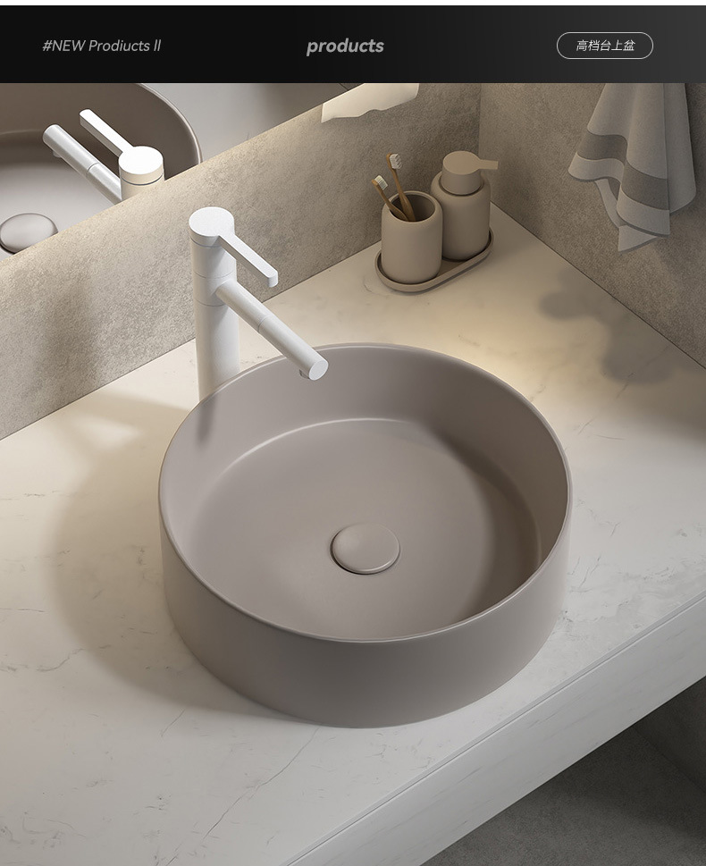 Viento moderno mate gris khaki cerámica mesa lavabo artístico lavabo único lavabo