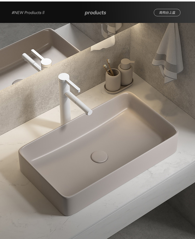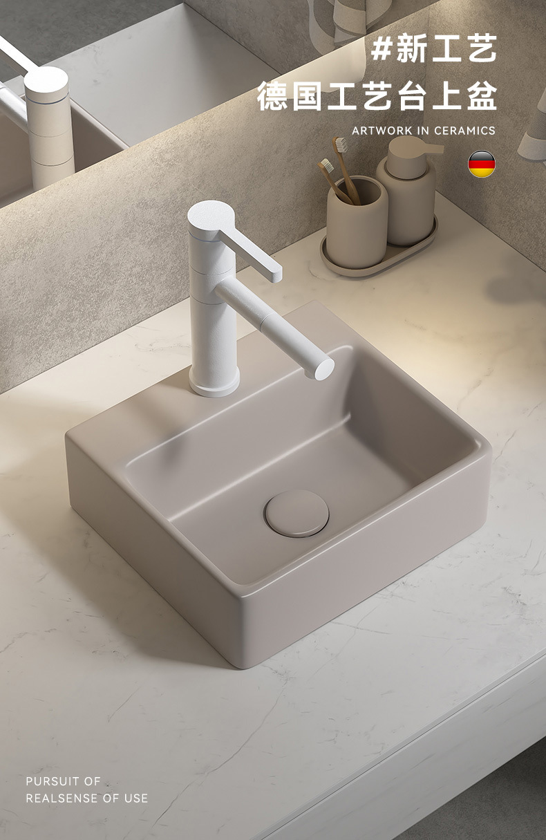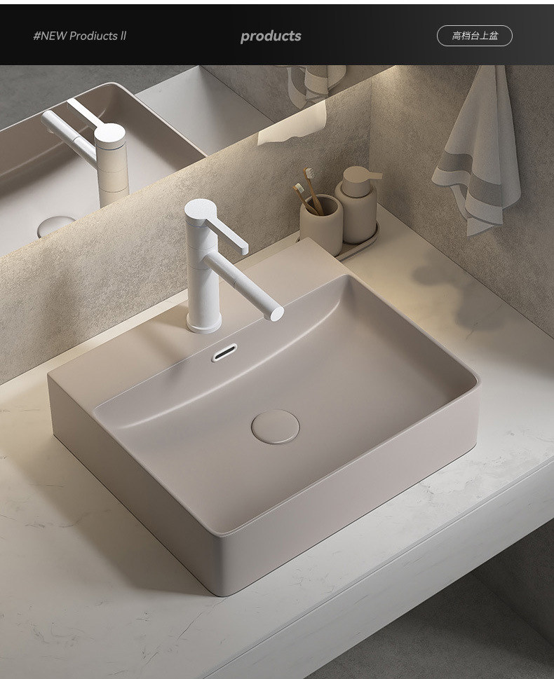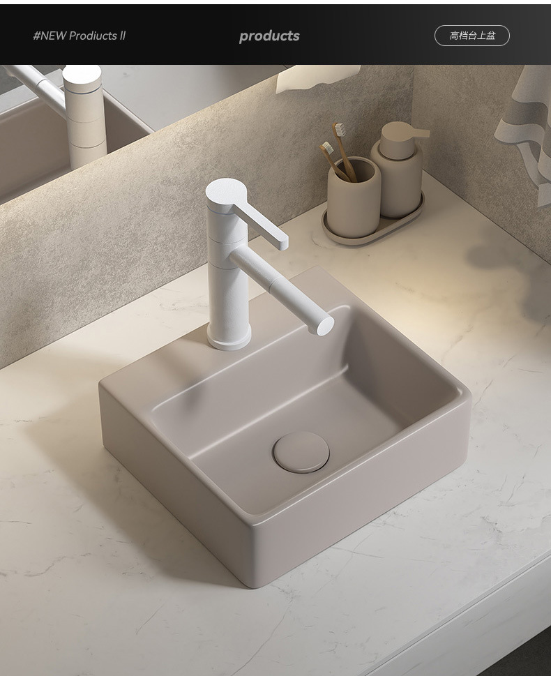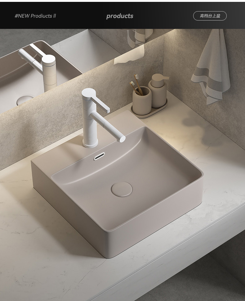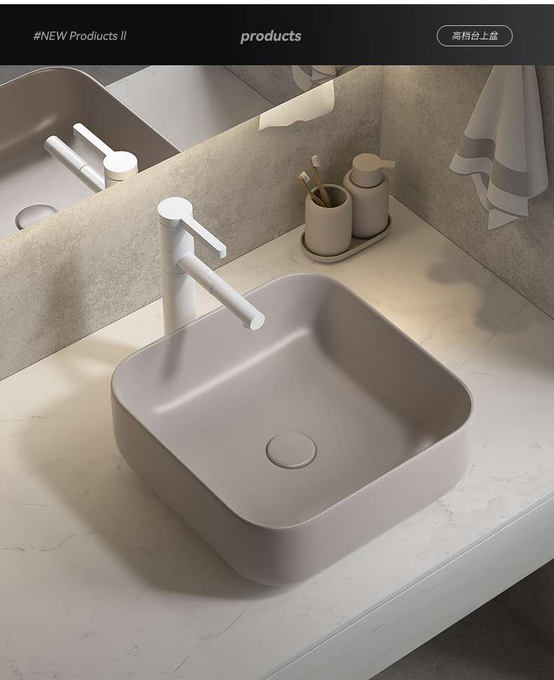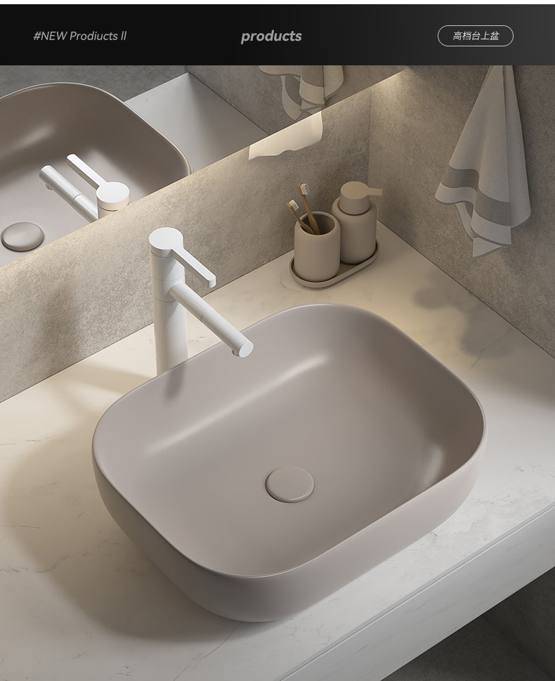 Viento moderno mate gris khaki cerámica mesa lavabo artístico lavabo único lavabo