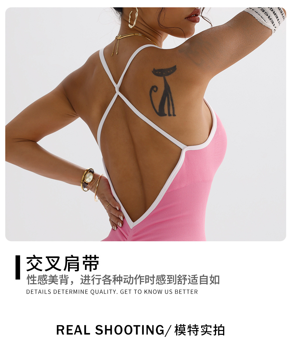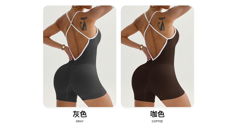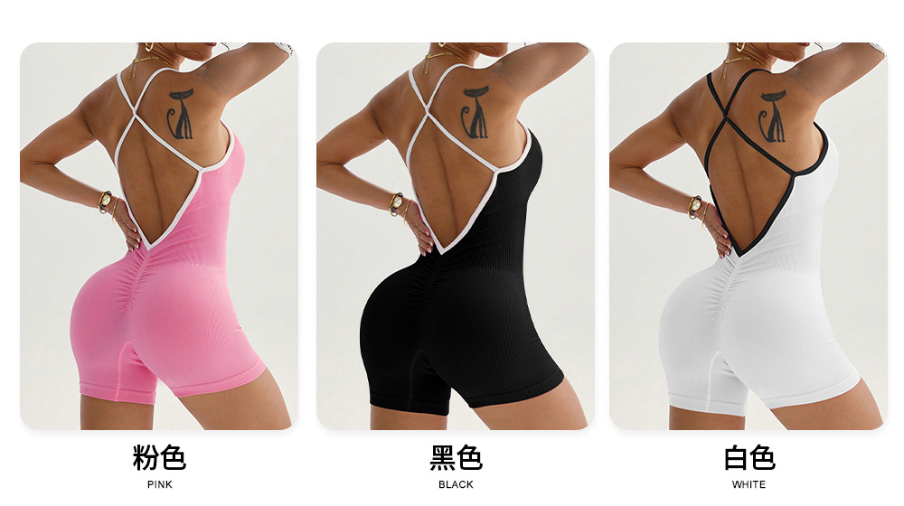 Mono deportivo transfronterizo con almohadilla de pecho extraíble, pantalones cortos sin espalda, de secado rápido, ajustado, para fitness y yoga.
