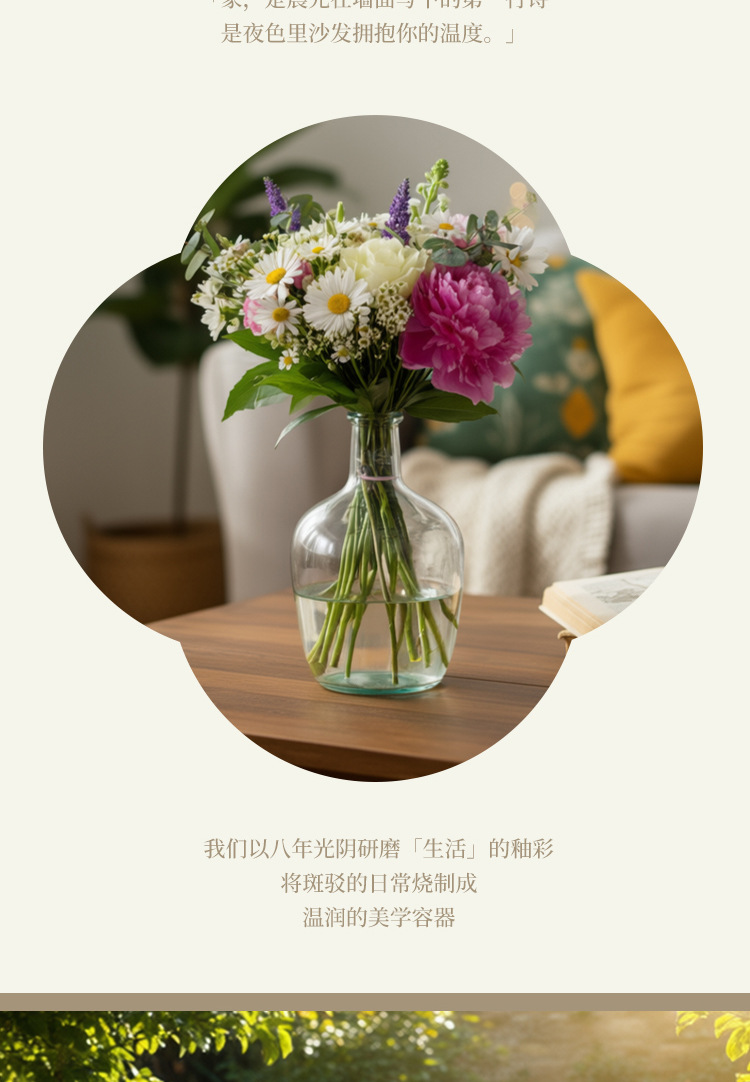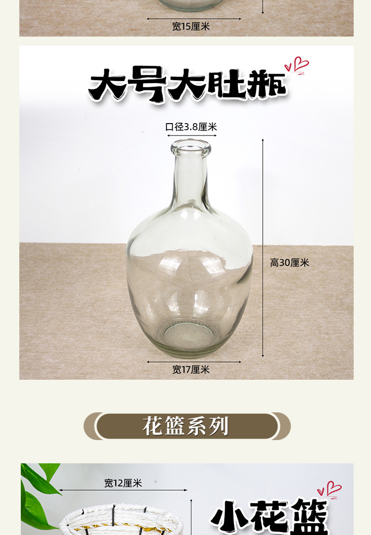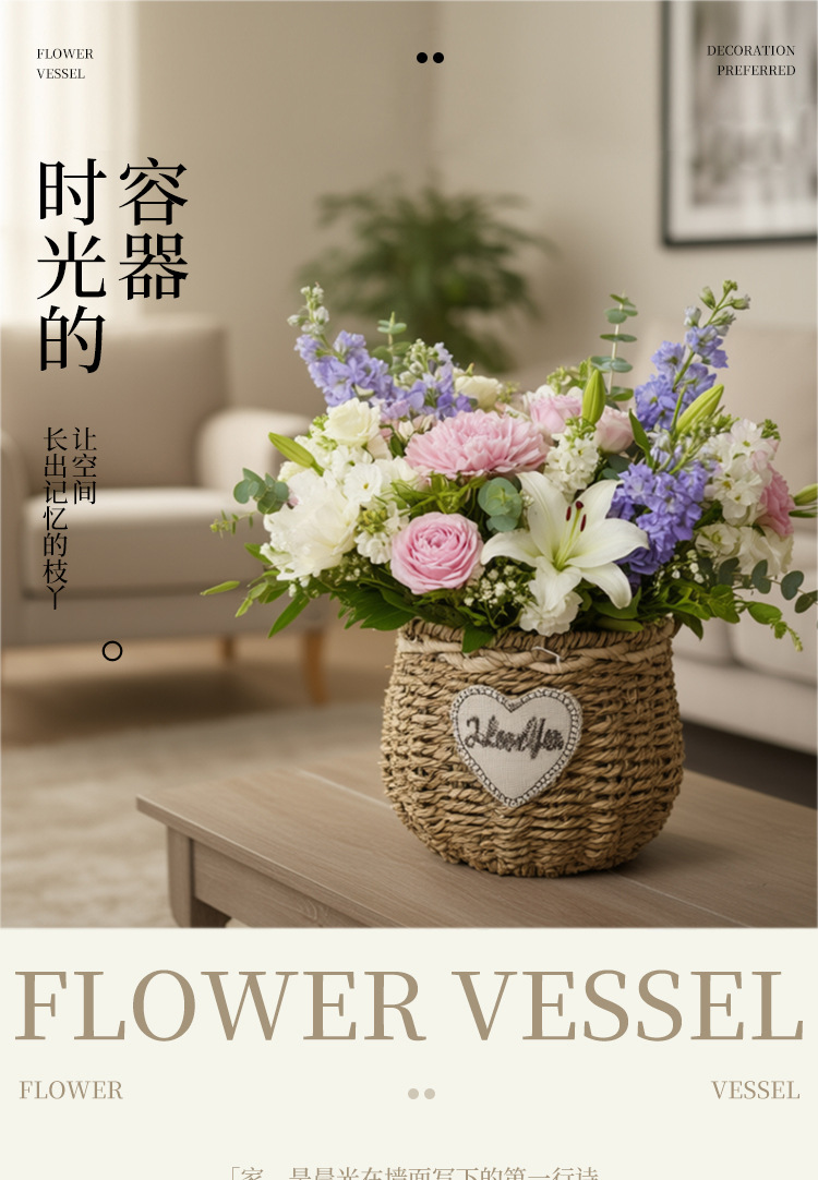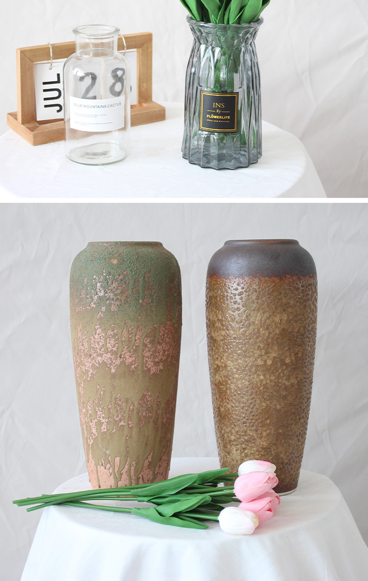 Vasos de cerámica, vasos de vidrio, cestas de flores tejidas a mano, ramas de madera, ramo de flores, arreglos de flores, adornos de flores.
