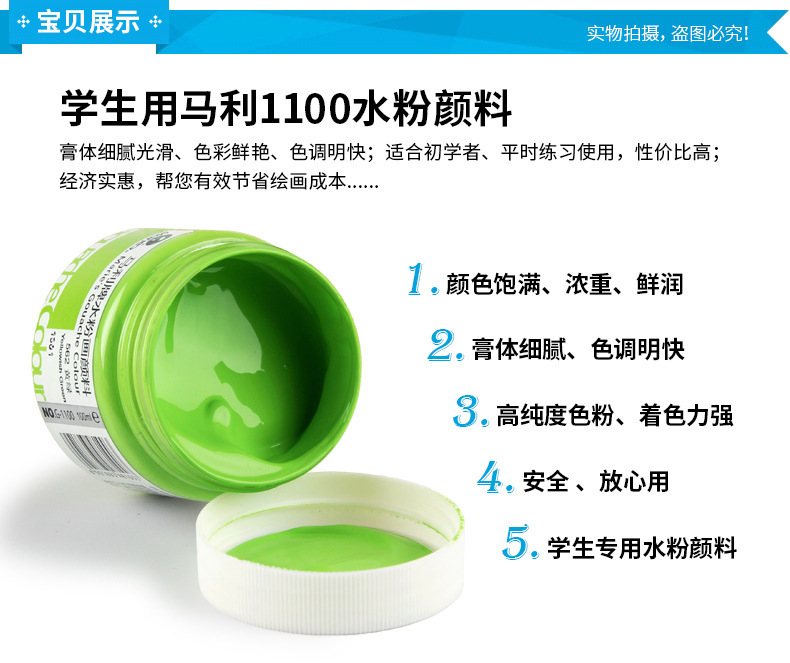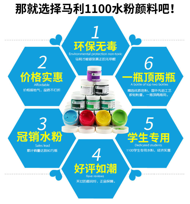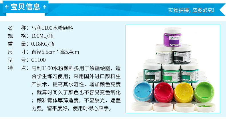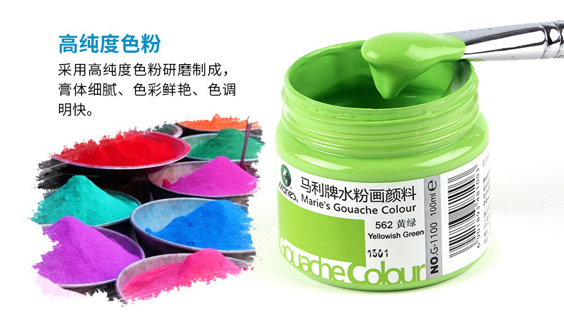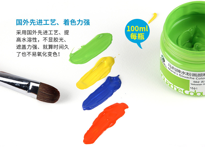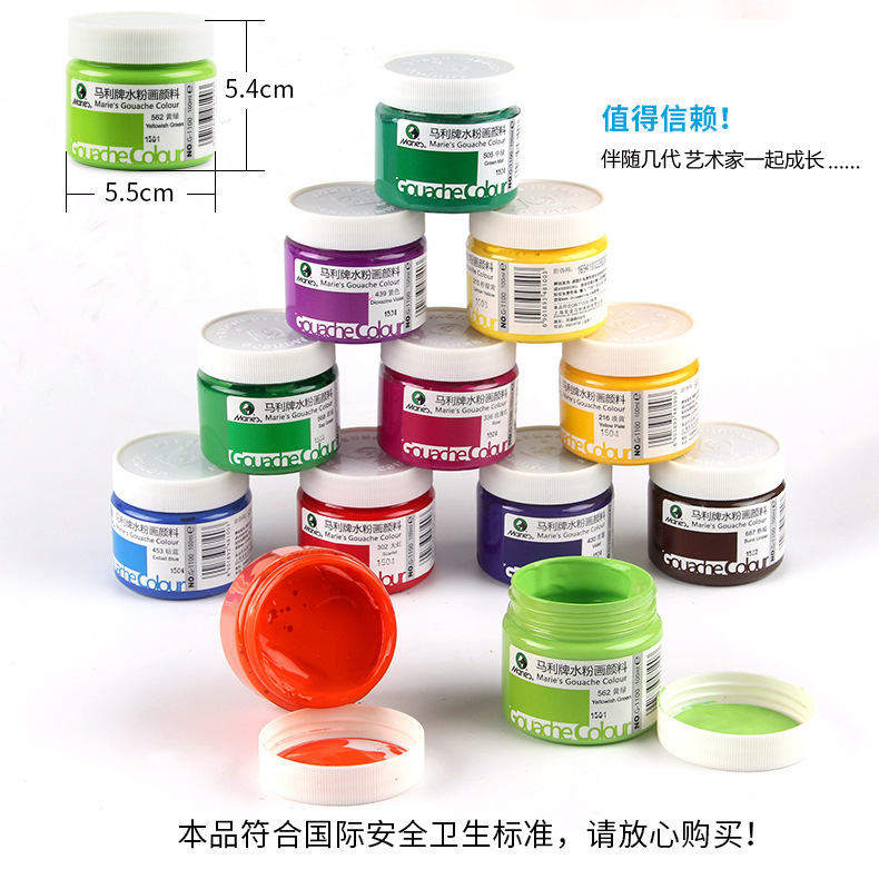 Paquete de pintura de polvo de agua Marley 100ml enlatado para niños y estudiantes color acuarela botellada