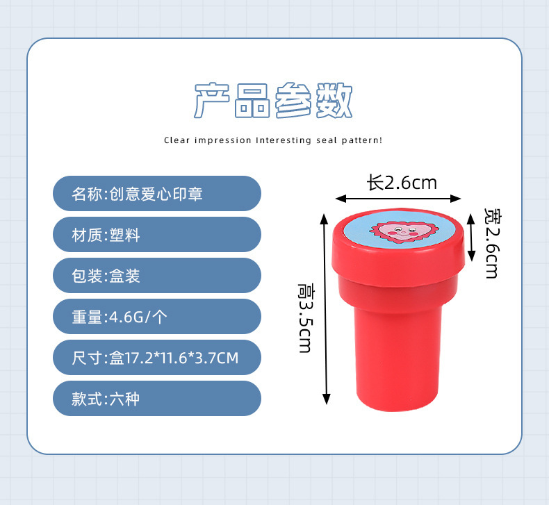 Sello de amor del día de San Valentín Recompensa creativa del maestro de jardín de infantes Sello cilíndrico de amor Juguetes creativos de bricolaje para niños
