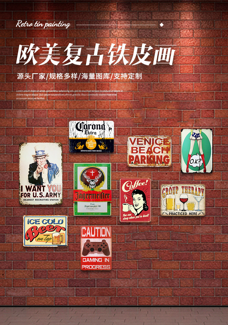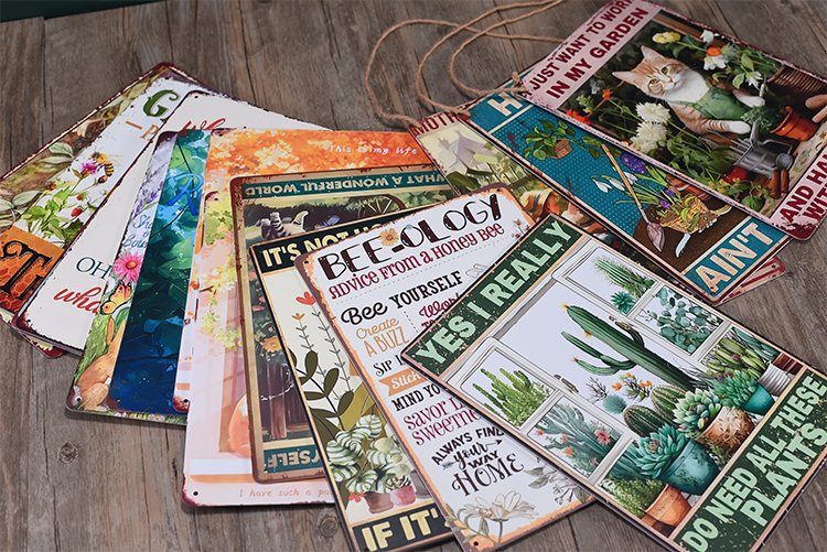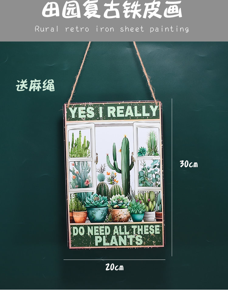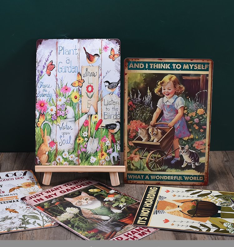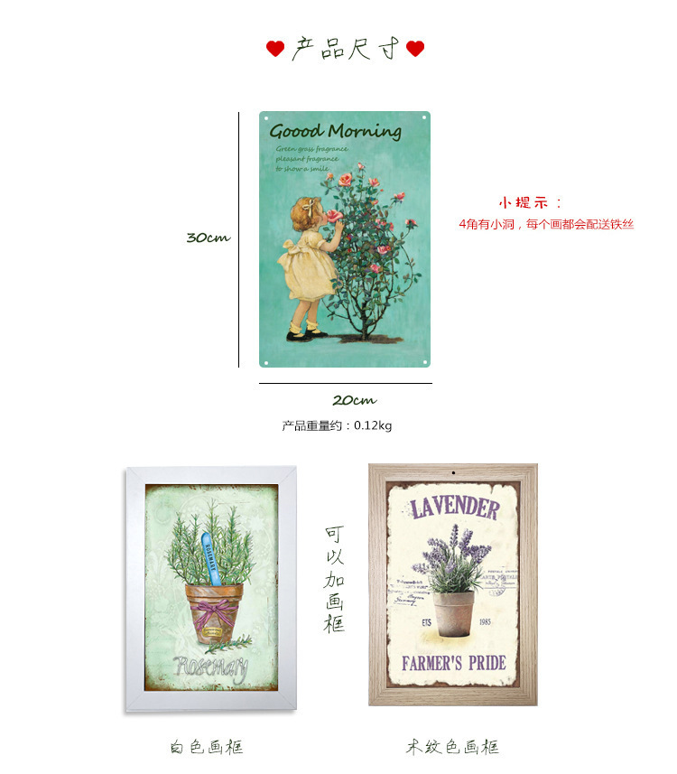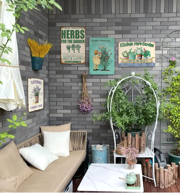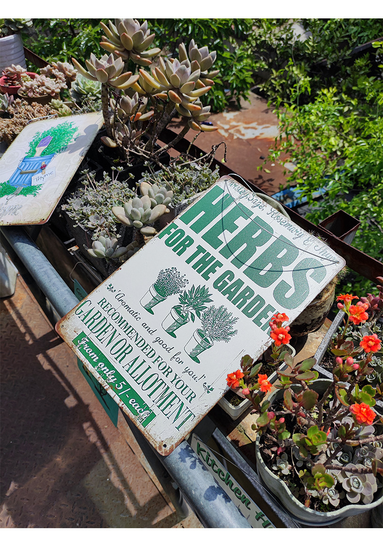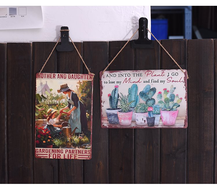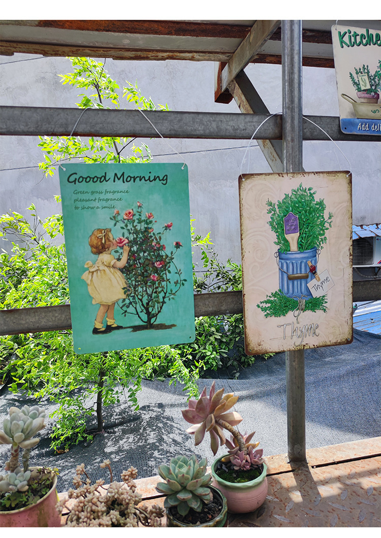 Pintura de hojalata pastoral Flor antigua retro Arte de hierro Pintura colgante pequeña Jardín al aire libre Balcón Decoración de pared Colgante transfronterizo