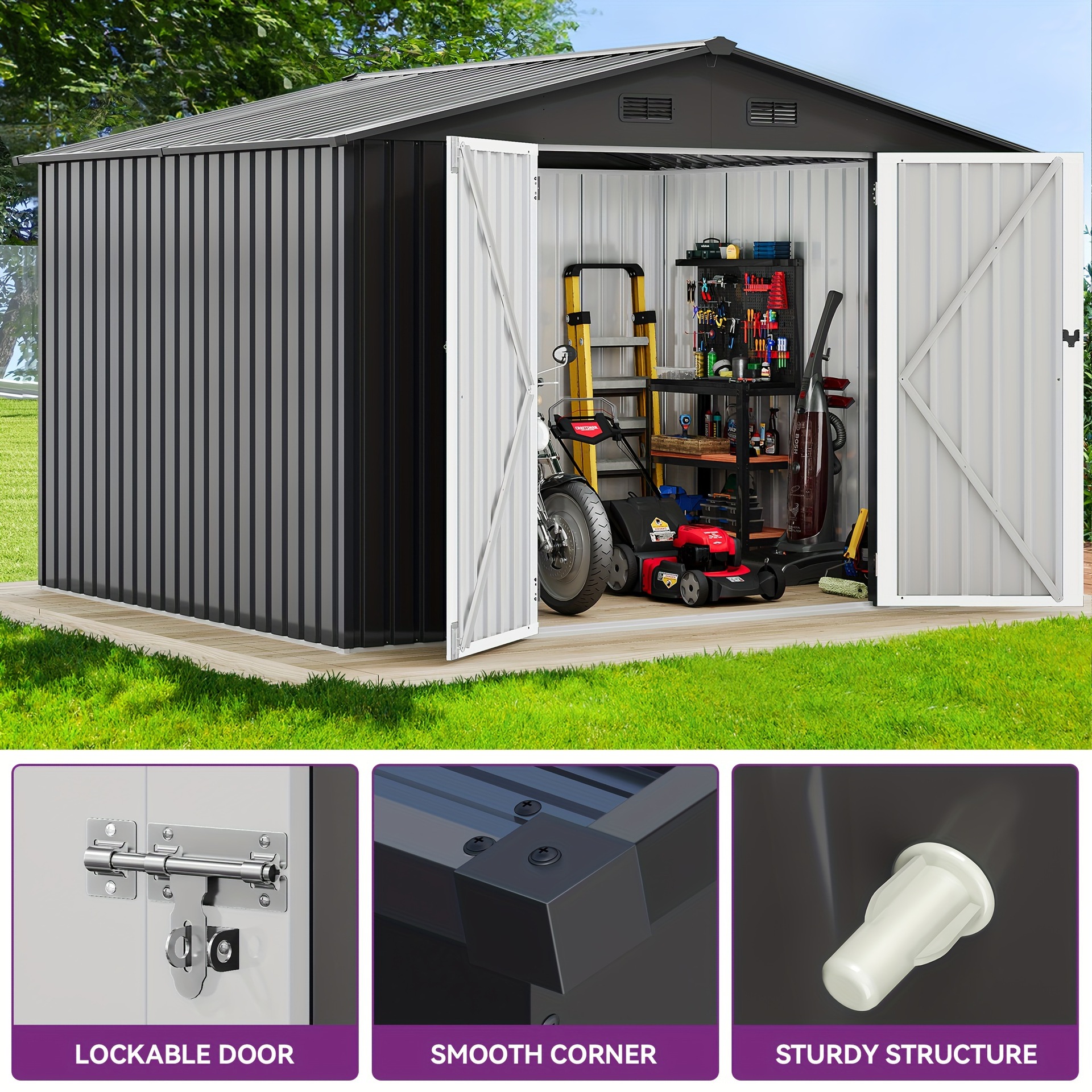 Balconera Large Metal Outdoor Storage Shed Heavy Duty Transfronterizo