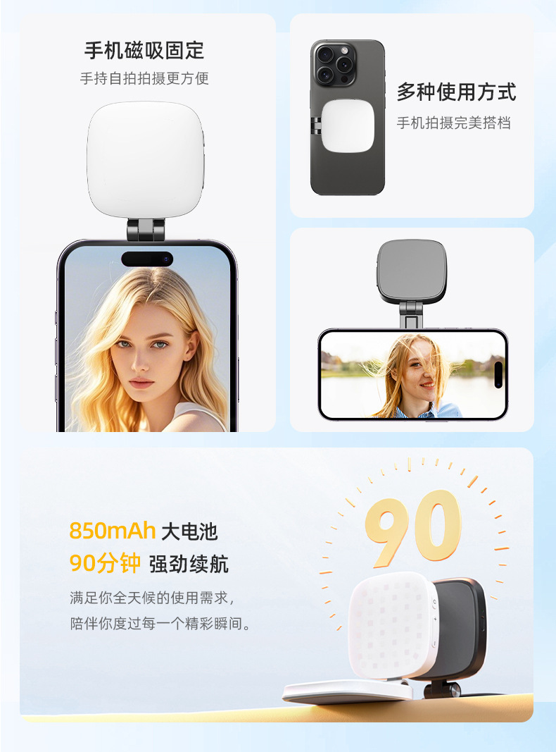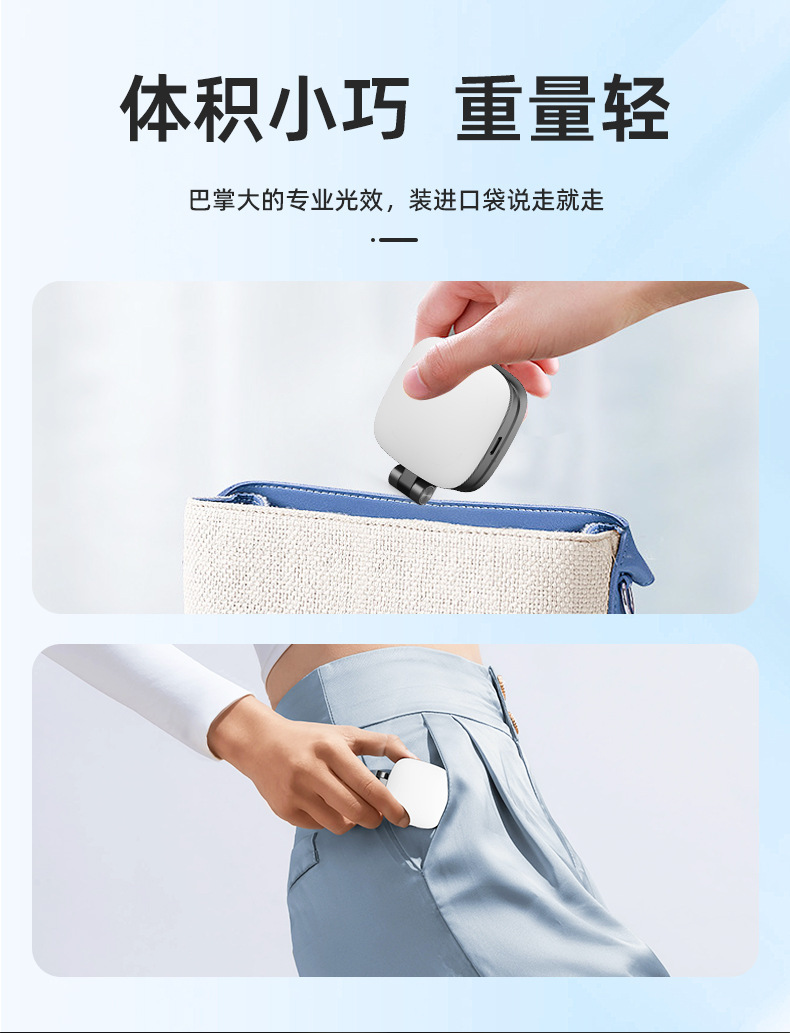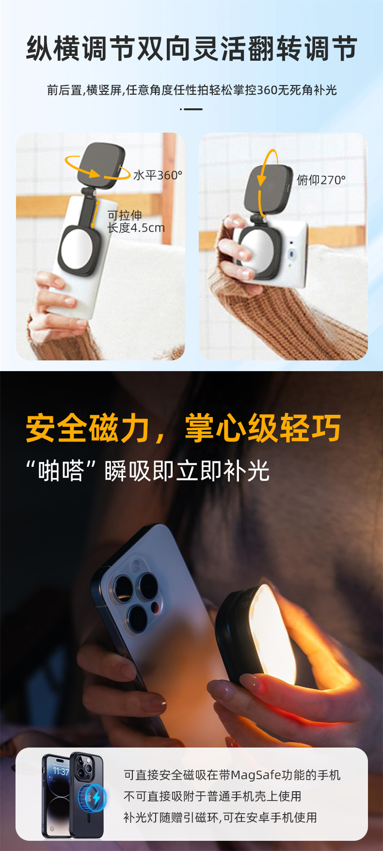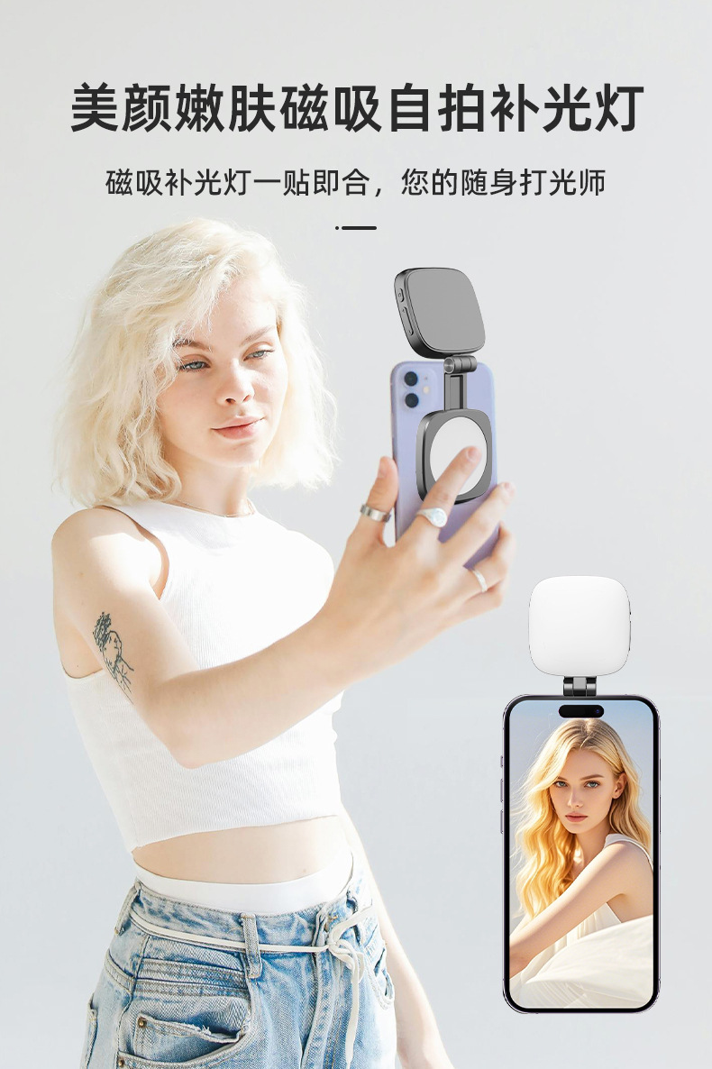 Luz de bolsillo transfronteriza, luz de relleno magnética para teléfono con espejo, mini luz con clip, luz especial para transmisión en vivo con teléfono móvil y videoconferencias.