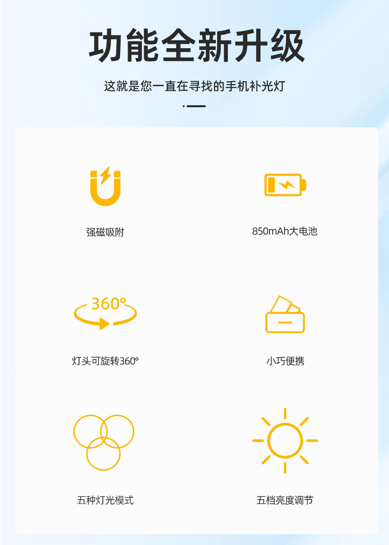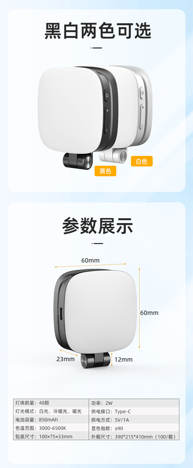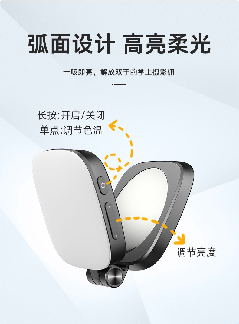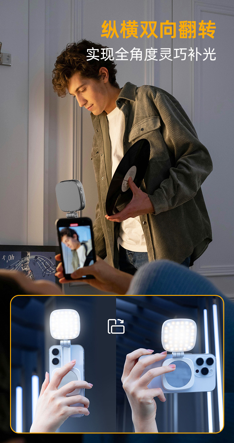 Luz de bolsillo transfronteriza, luz de relleno magnética para teléfono con espejo, mini luz con clip, luz especial para transmisión en vivo con teléfono móvil y videoconferencias.