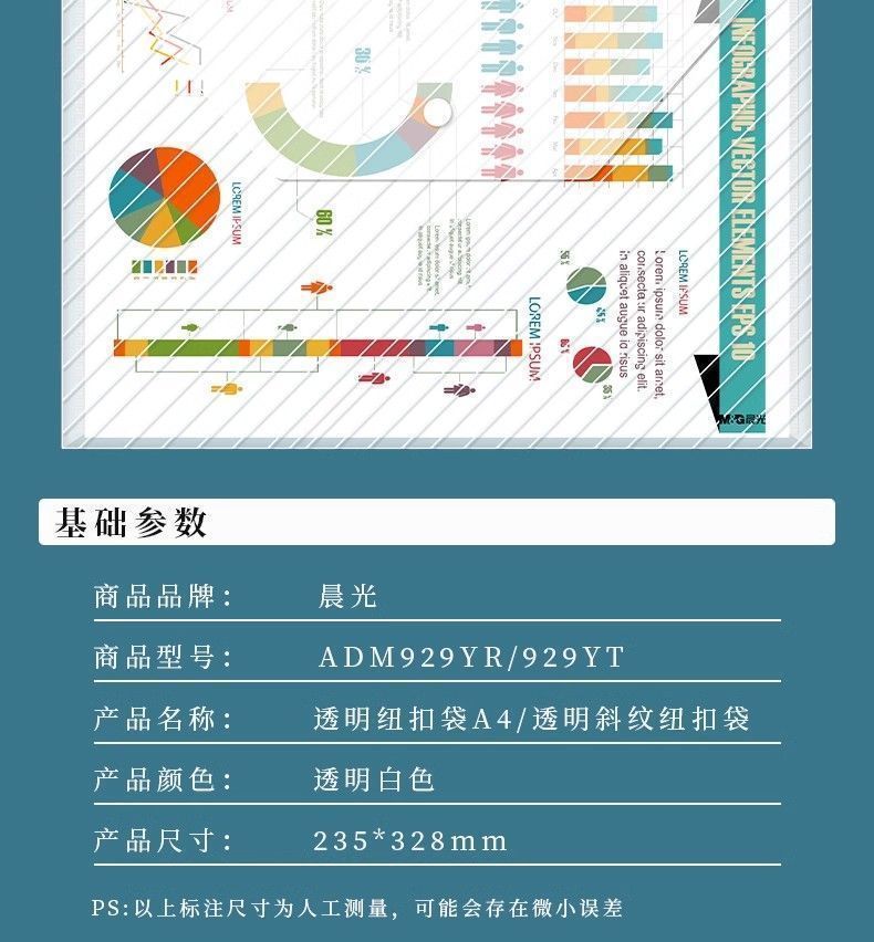 Bolsas de archivos de luz de la mañana A4 etiquetas transparentes bolsas de archivos de plástico bolsas de gran capacidad bolsas de botón para estudiantes