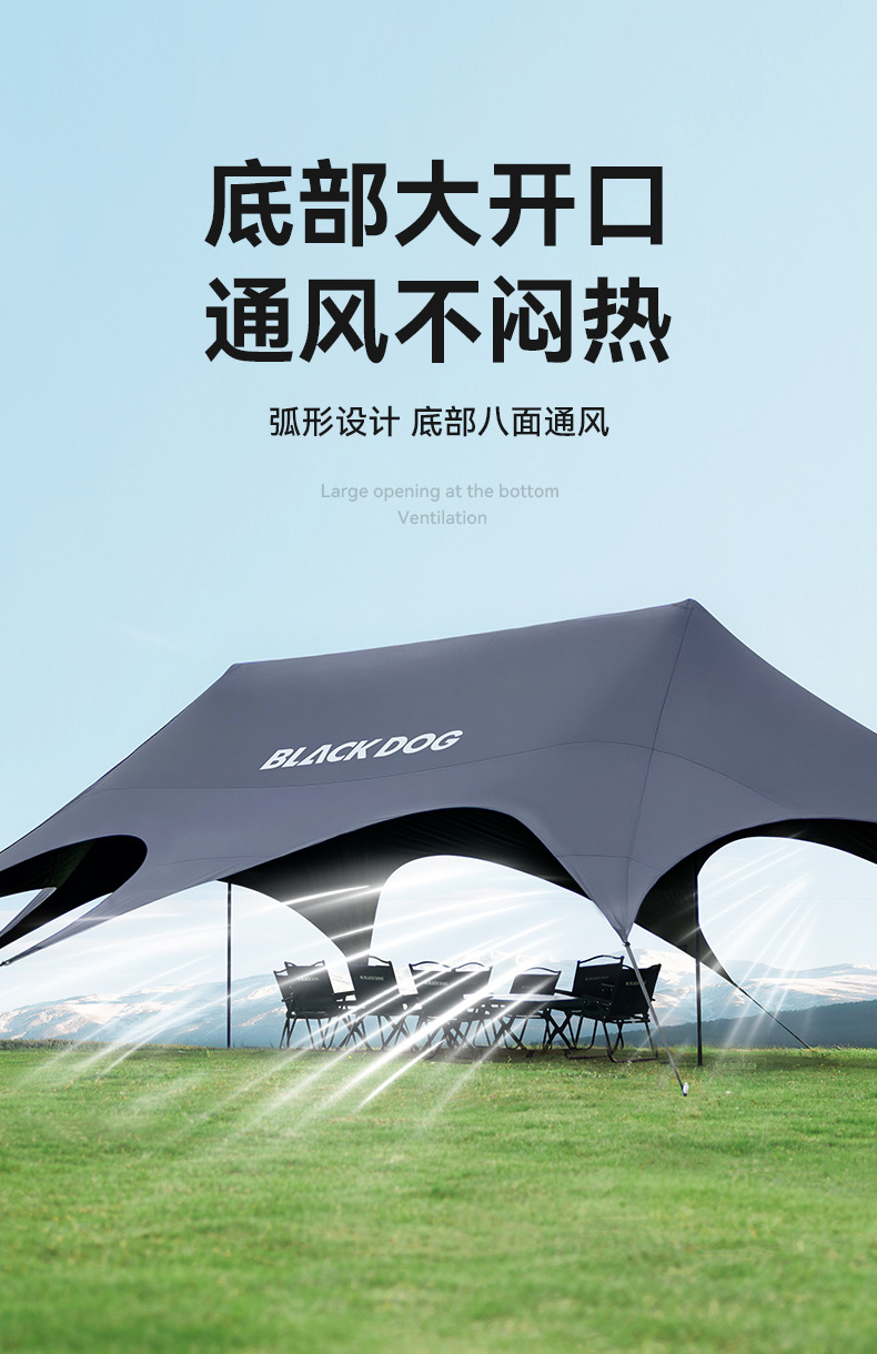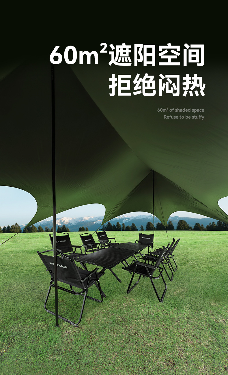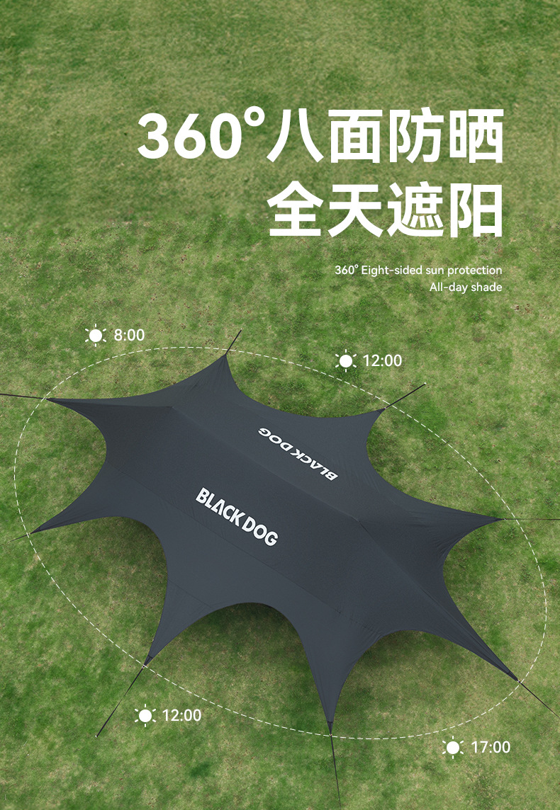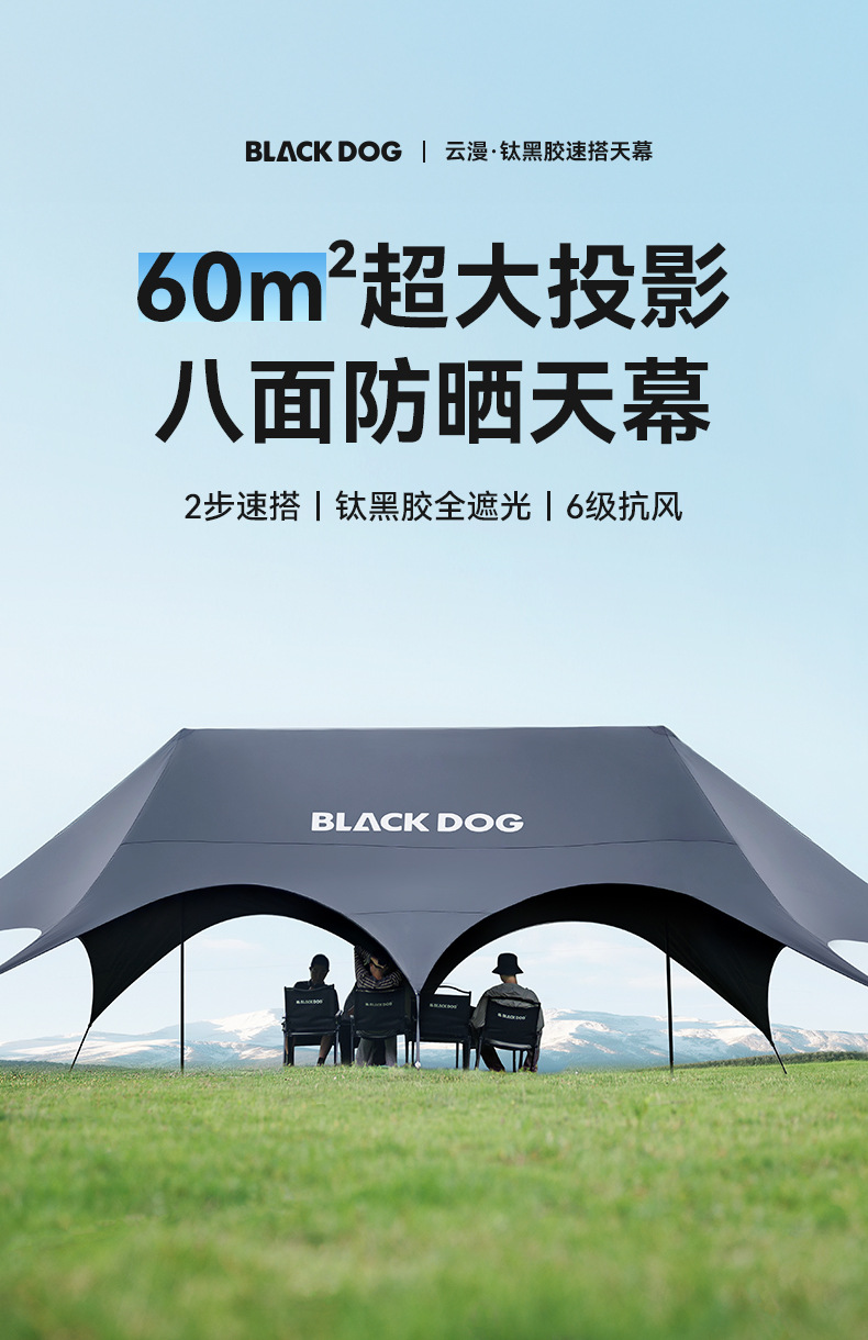 Blackdog Negro al aire libre tienda de sombreante vinil acampado rápido partido camping aire libre cuerda sombreante