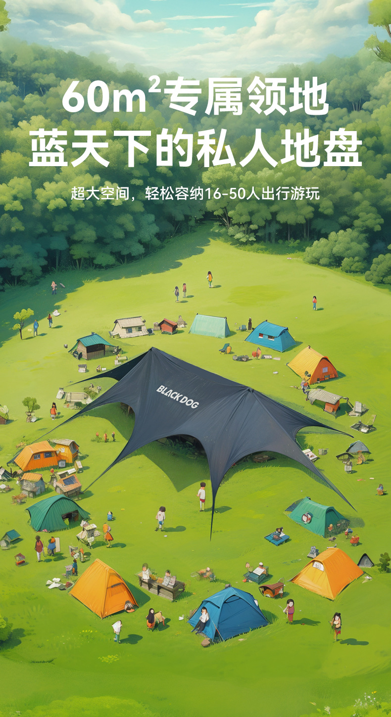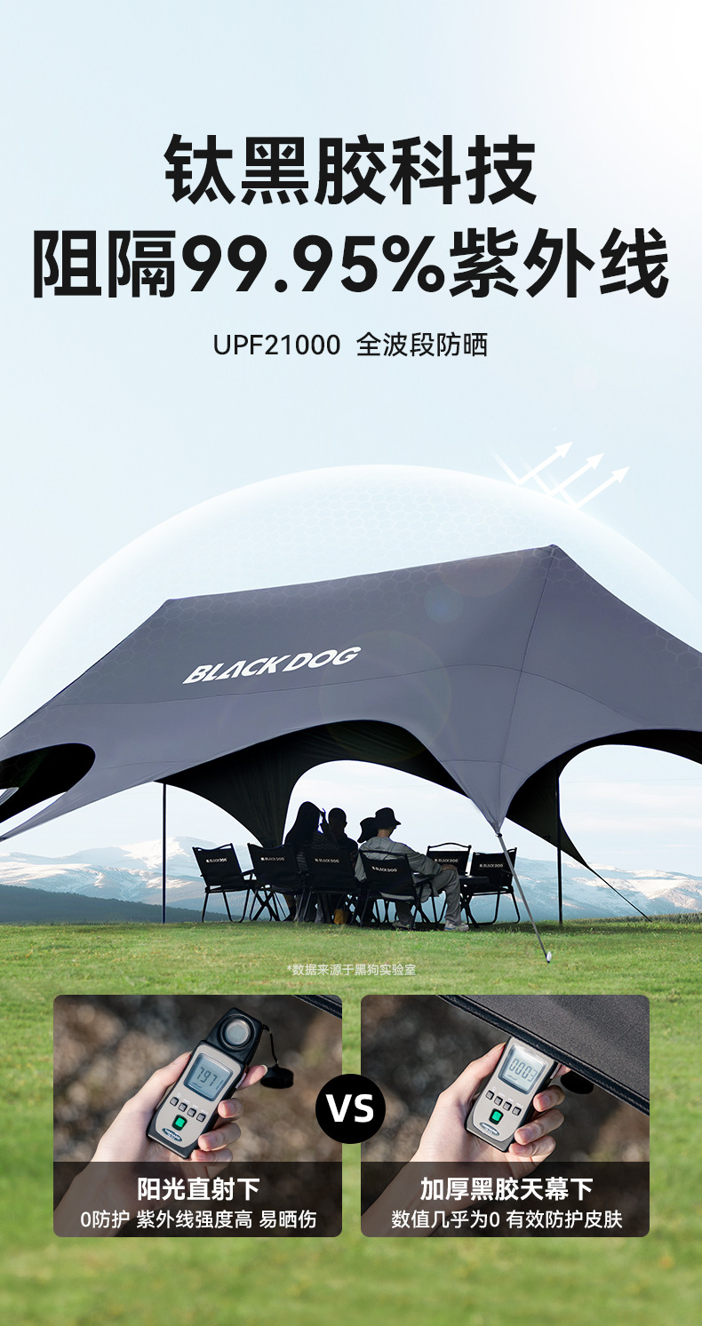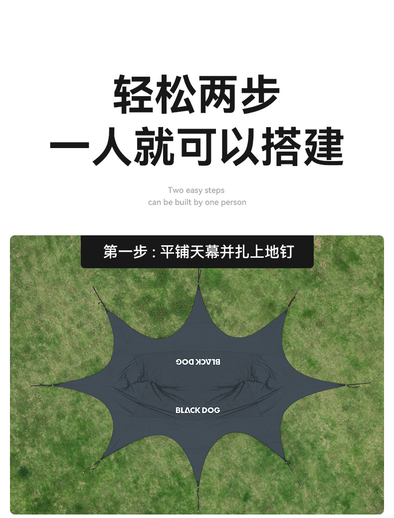 Blackdog Negro al aire libre tienda de sombreante vinil acampado rápido partido camping aire libre cuerda sombreante