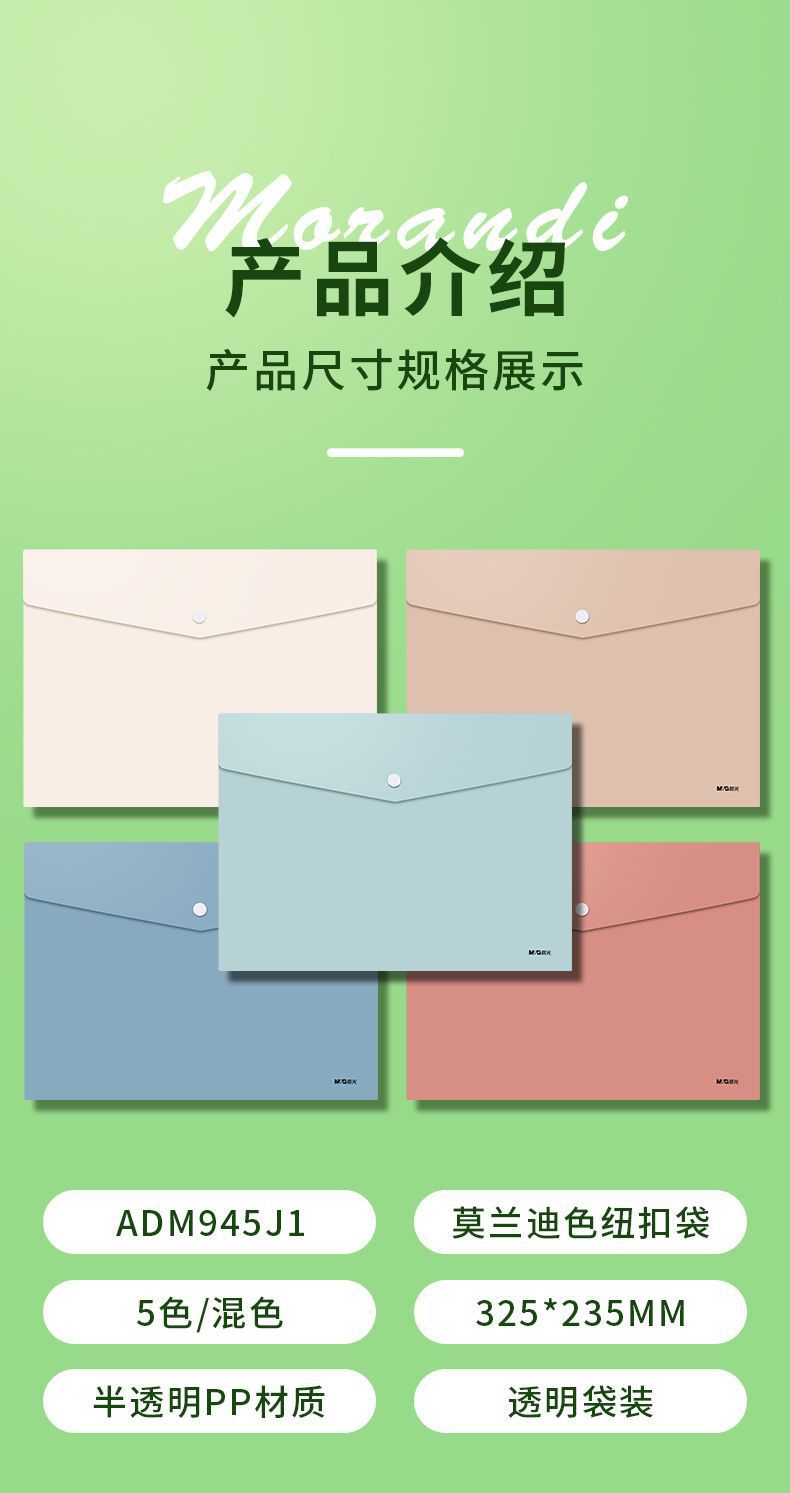 Morninglight A4 bolsa de archivos impermeable Morandi bolsa de archivo de archivo de documentos de oficina bolsa de archivo de archivo