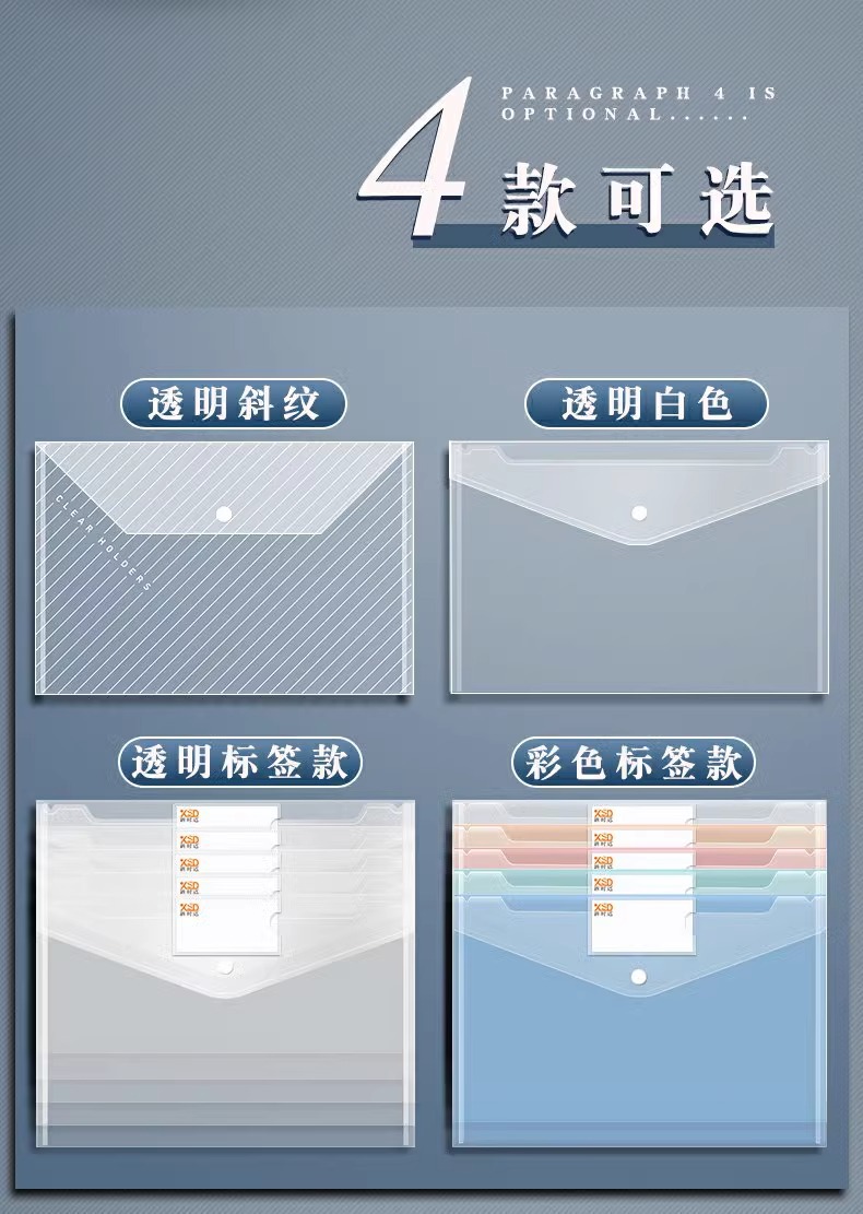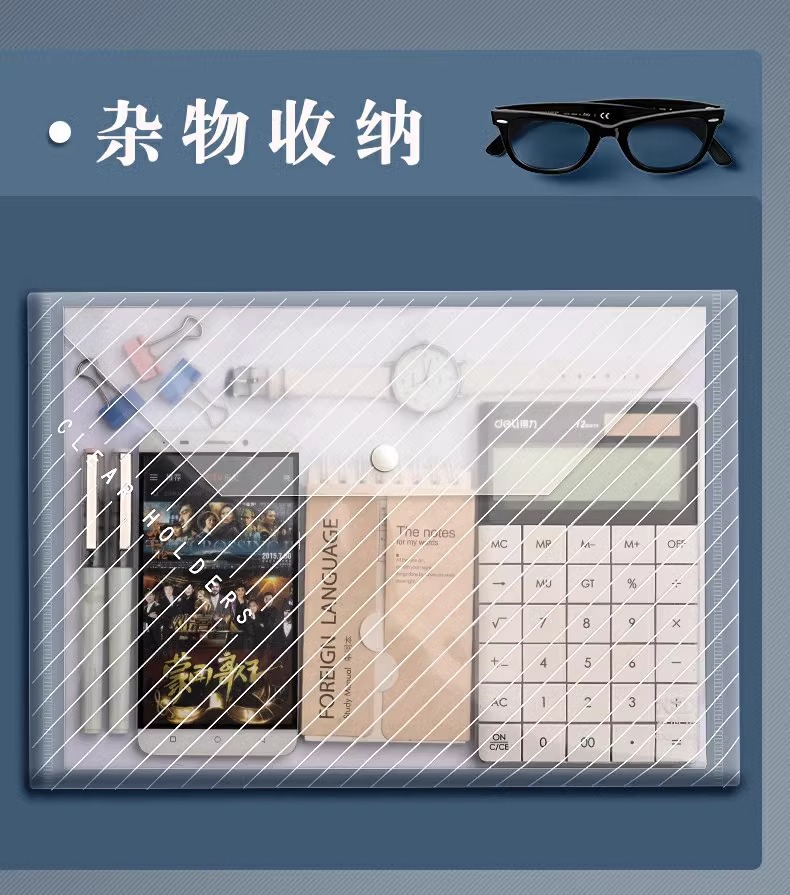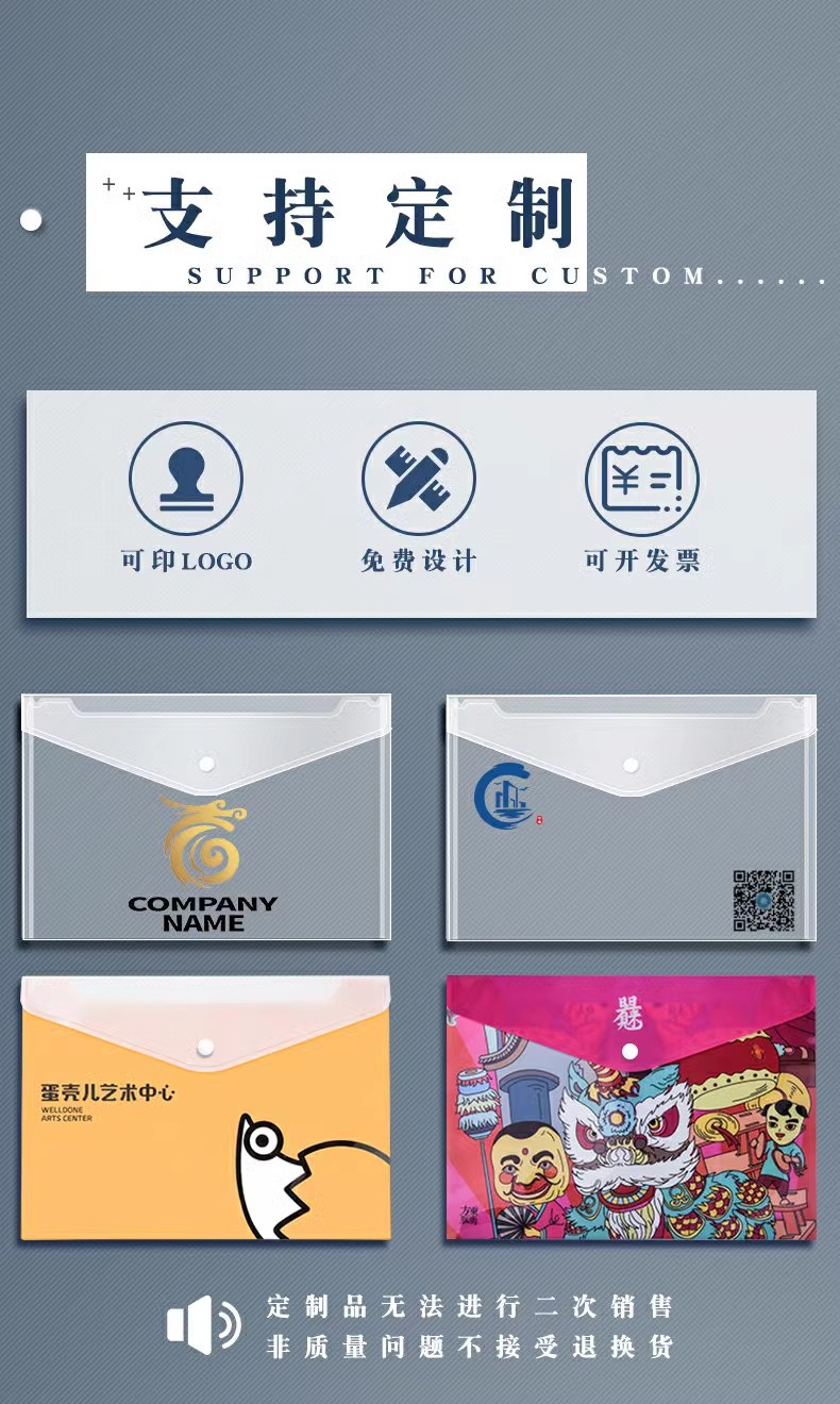 Bolsa de archivo A4 espesa bolsa de papel de prueba de plástico transparente bolsa de archivo de estudiantes bolsa de información de oficina de negocios