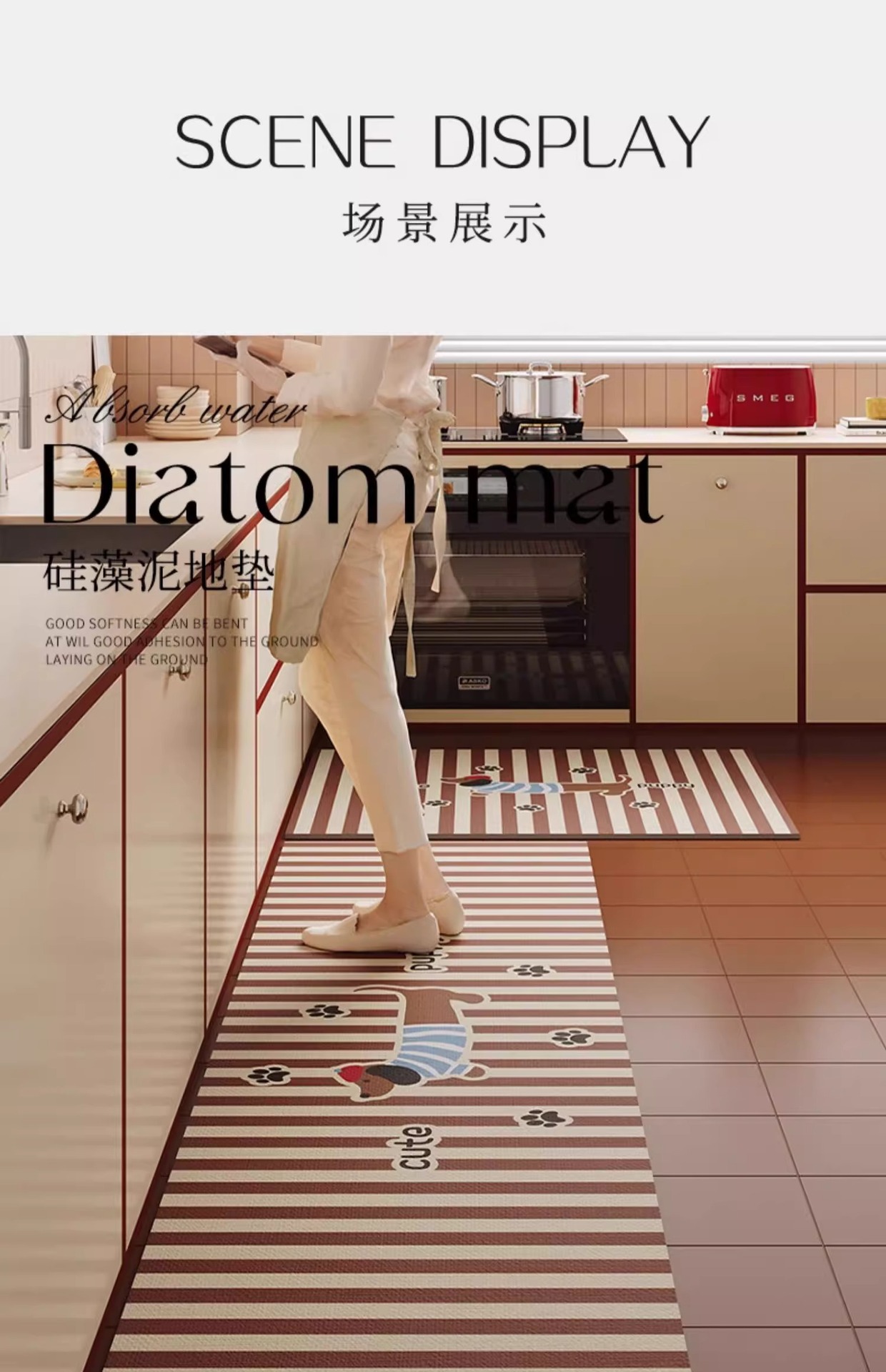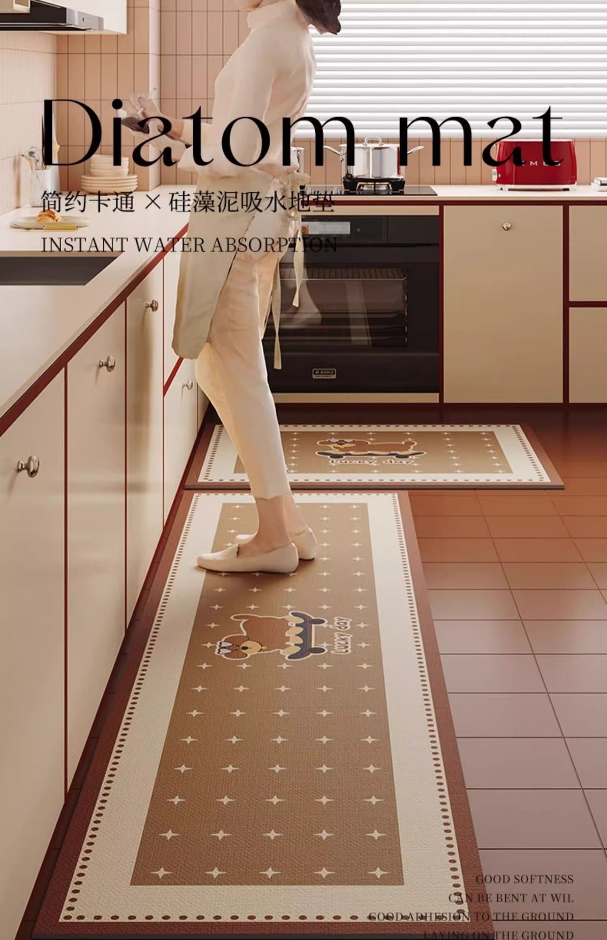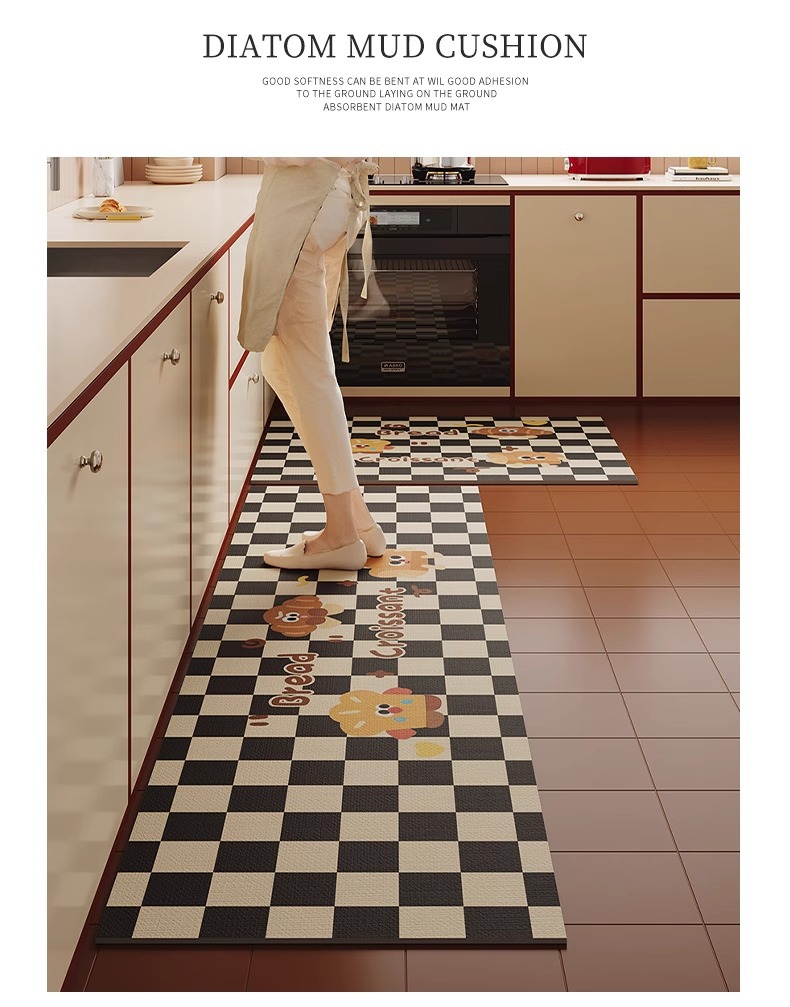Nueva alfombra de cocina de dibujos animados de alta calidad, barro de diatomeas, tira larga, antideslizante, alfombra cuadrada simple, suministro directo de fábrica