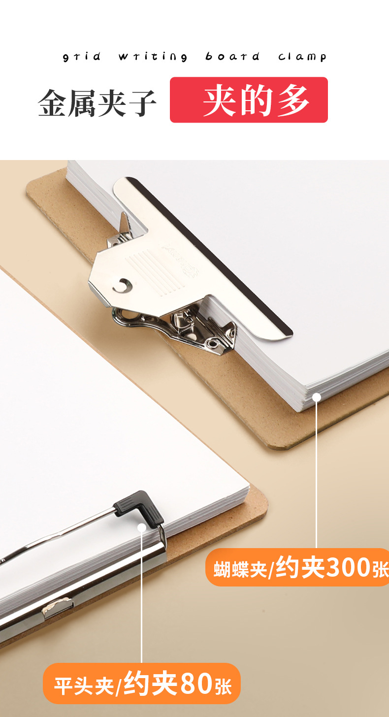Carpeta de archivos A4, carpeta para documentos, carpeta para exámenes, clip de madera para tablero de escritura, clip plano, clip mariposa engrosado, clip para menús.