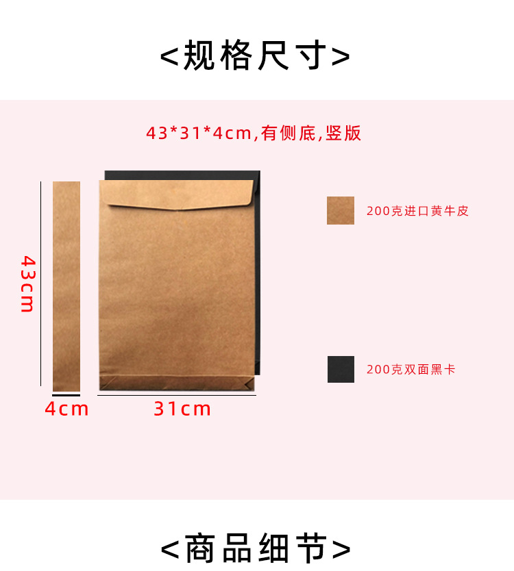 Bolsa de archivo kraft a3 tarjeta negra vertical velcro sobre de archivo universal bolsa de embalaje almacenamiento al por mayor