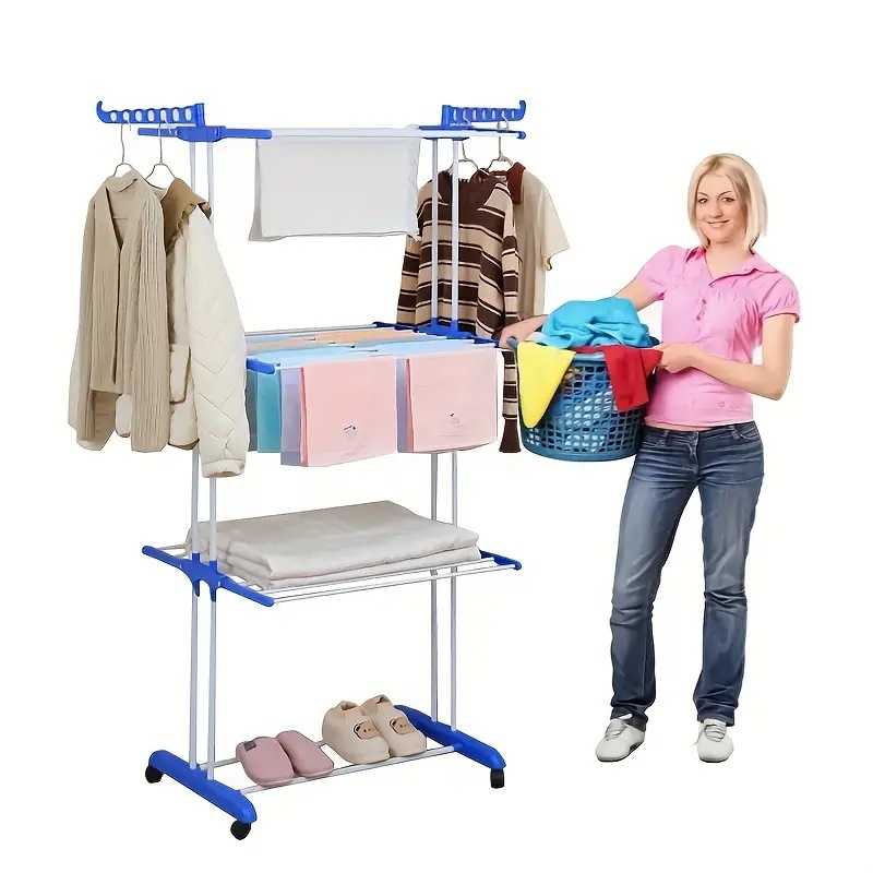 Transfronterizo plegable toalla rack rack de almacenamiento rack de secado móvil rack de secado telescópico rack de secado de doble barra rack al por mayor