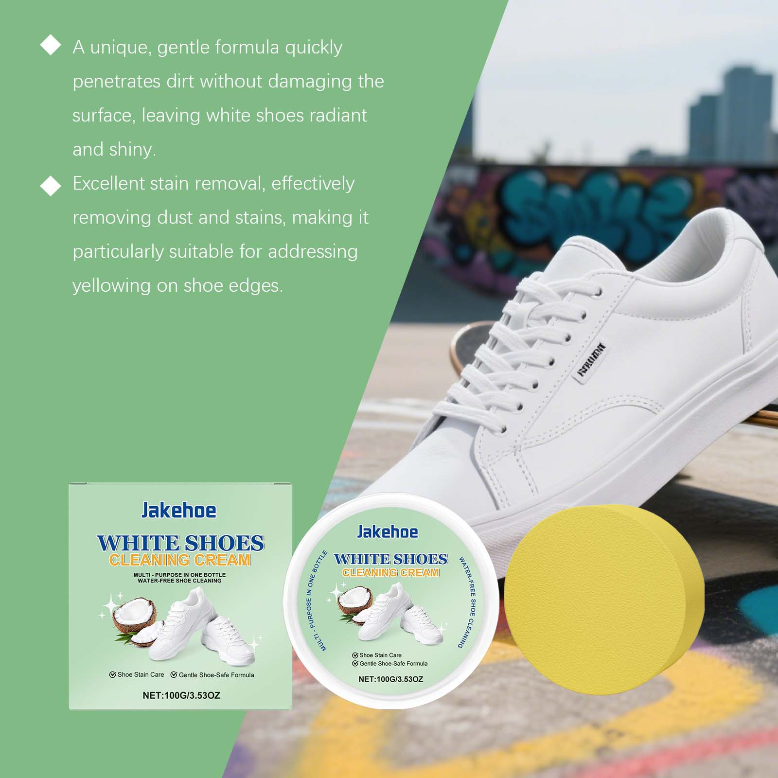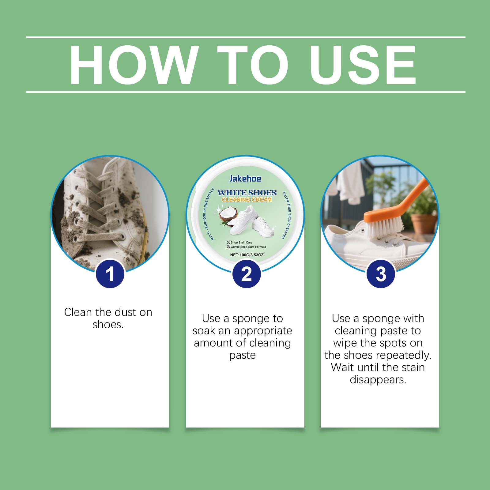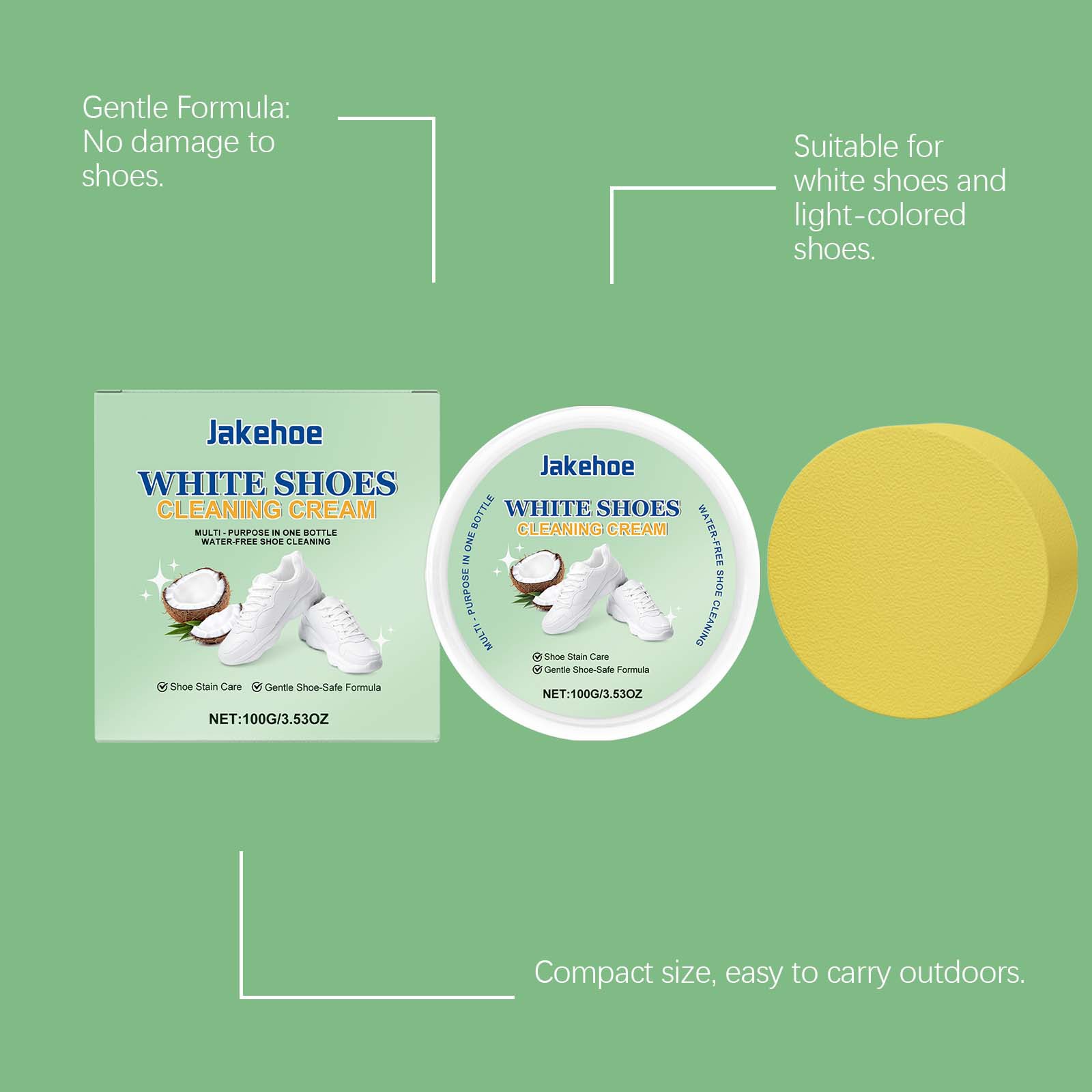 JAKEHOE limpiador de zapatos blancos, multifuncional sin lavado, suave para eliminar manchas amarillas, limpio y brillante para los zapatos.
