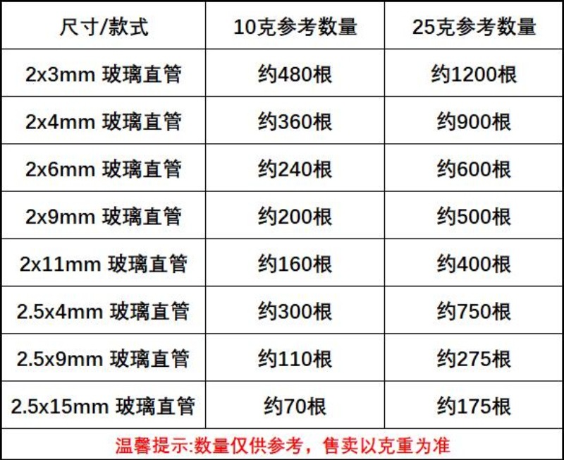 Cuentas de tubo de vidrio [paquete medio 25g]