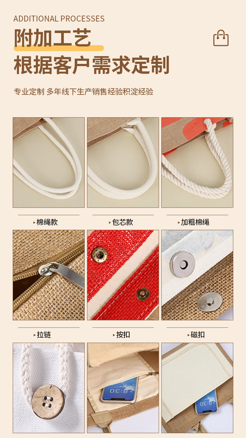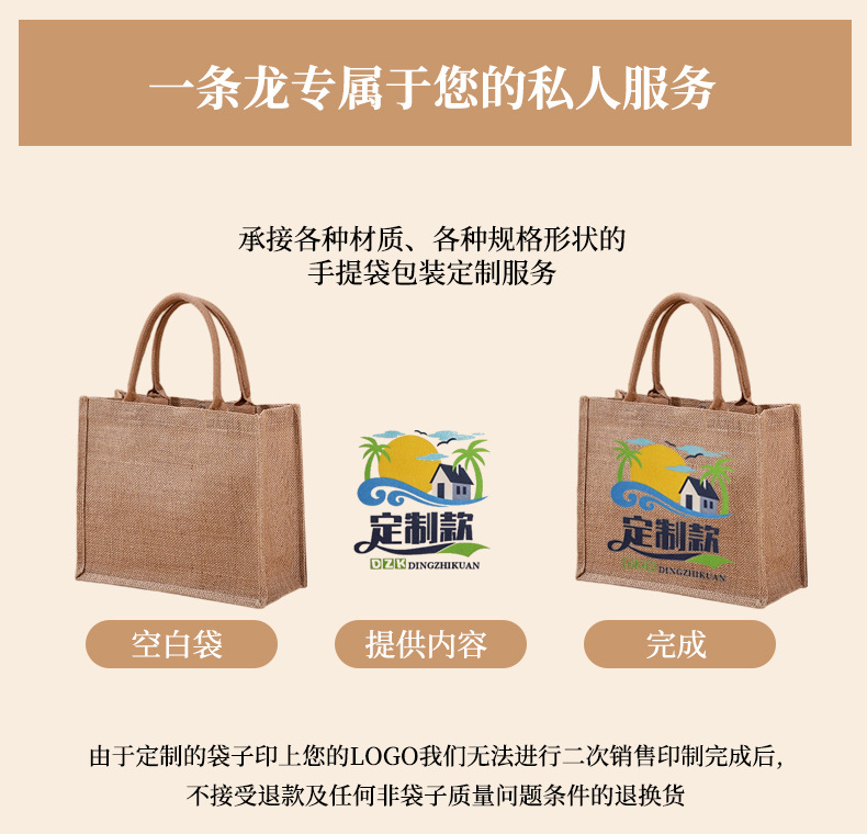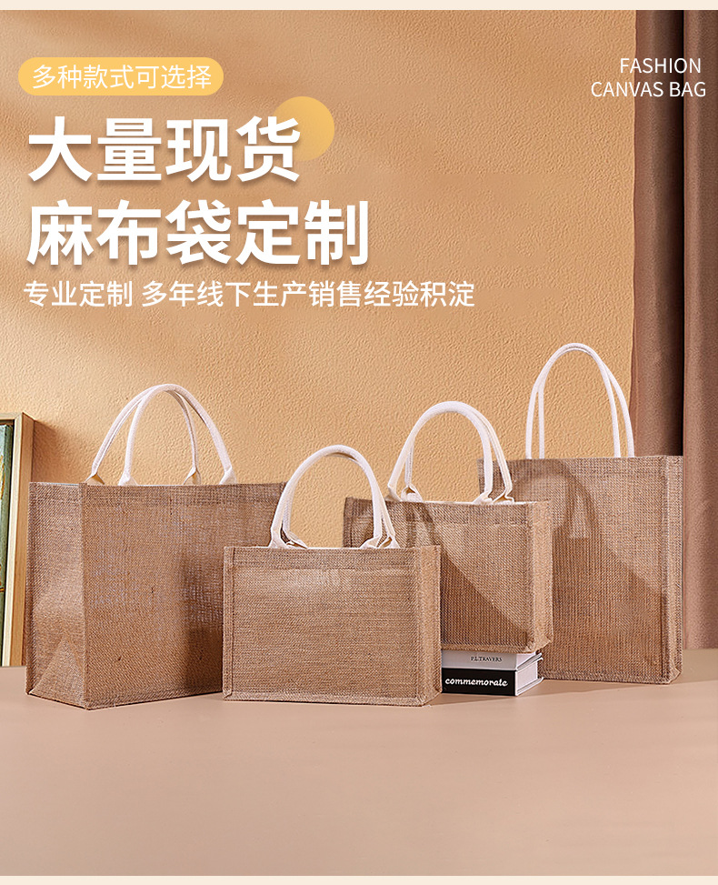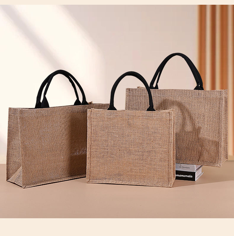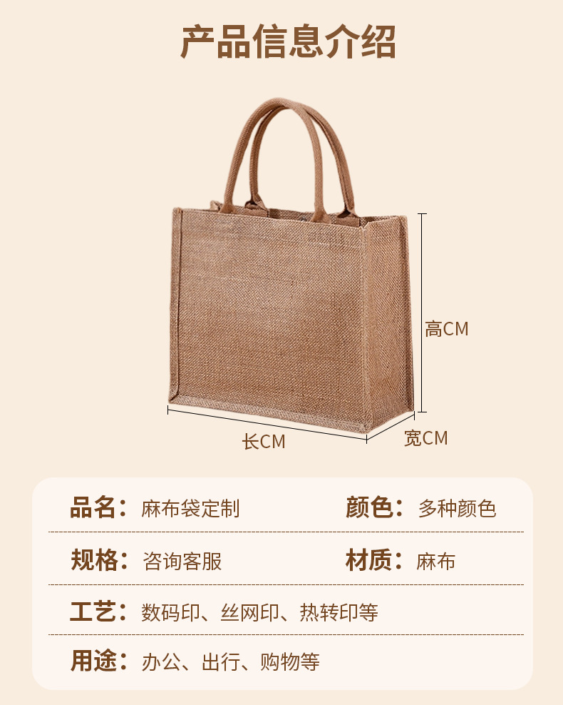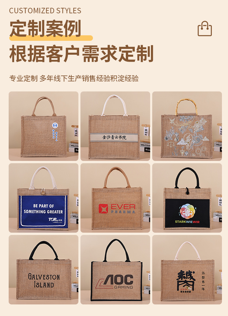 Spot bolsa de lino portátil con núcleo en blanco publicidad publicidad bolsa de lino de imitación patrón de impresión en color personalizado personalizado