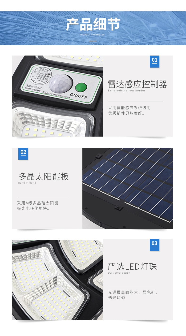 | Uso | Iluminación para carreteras rurales, casas familiares, parques y villas comunitarias |