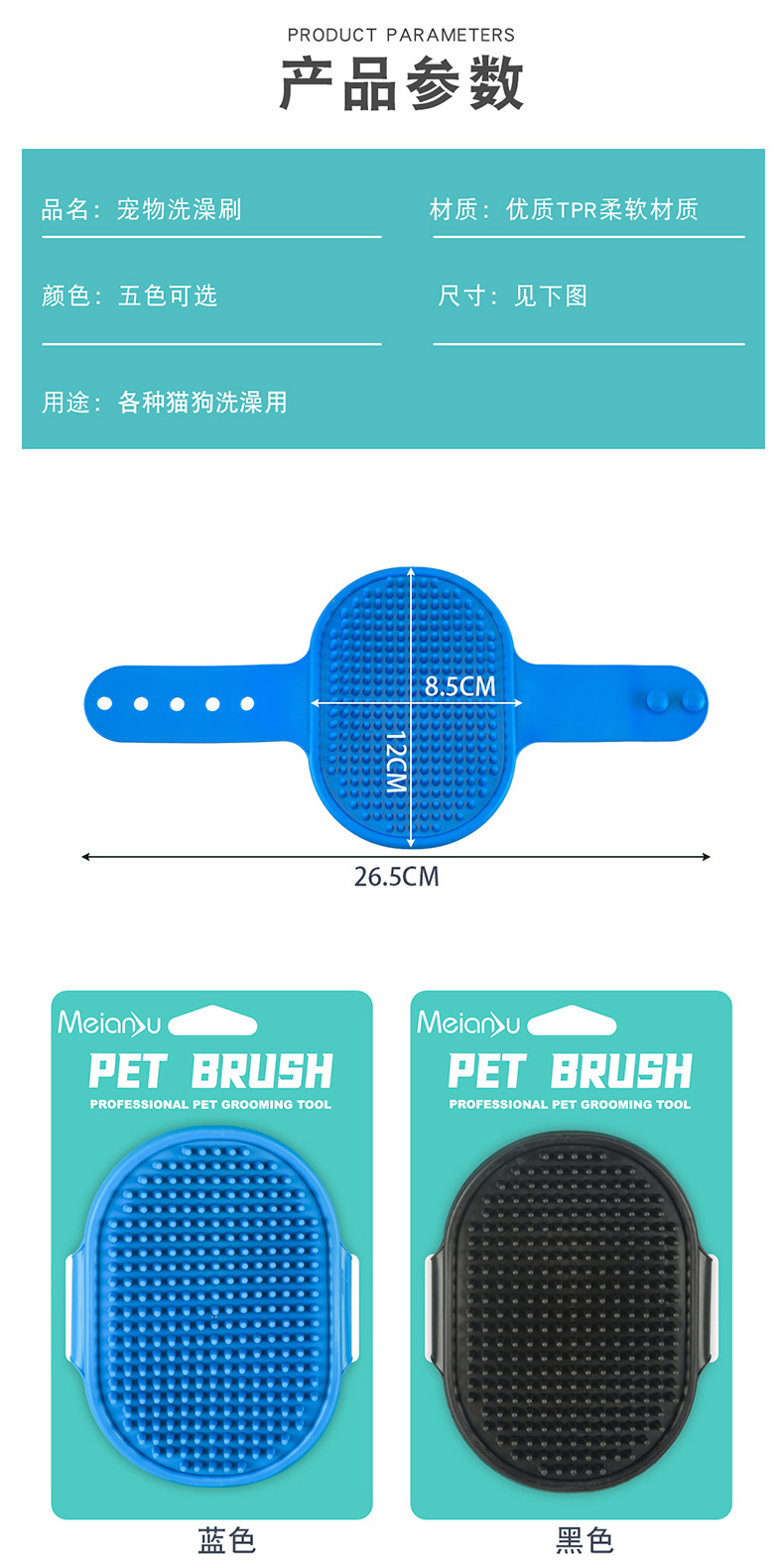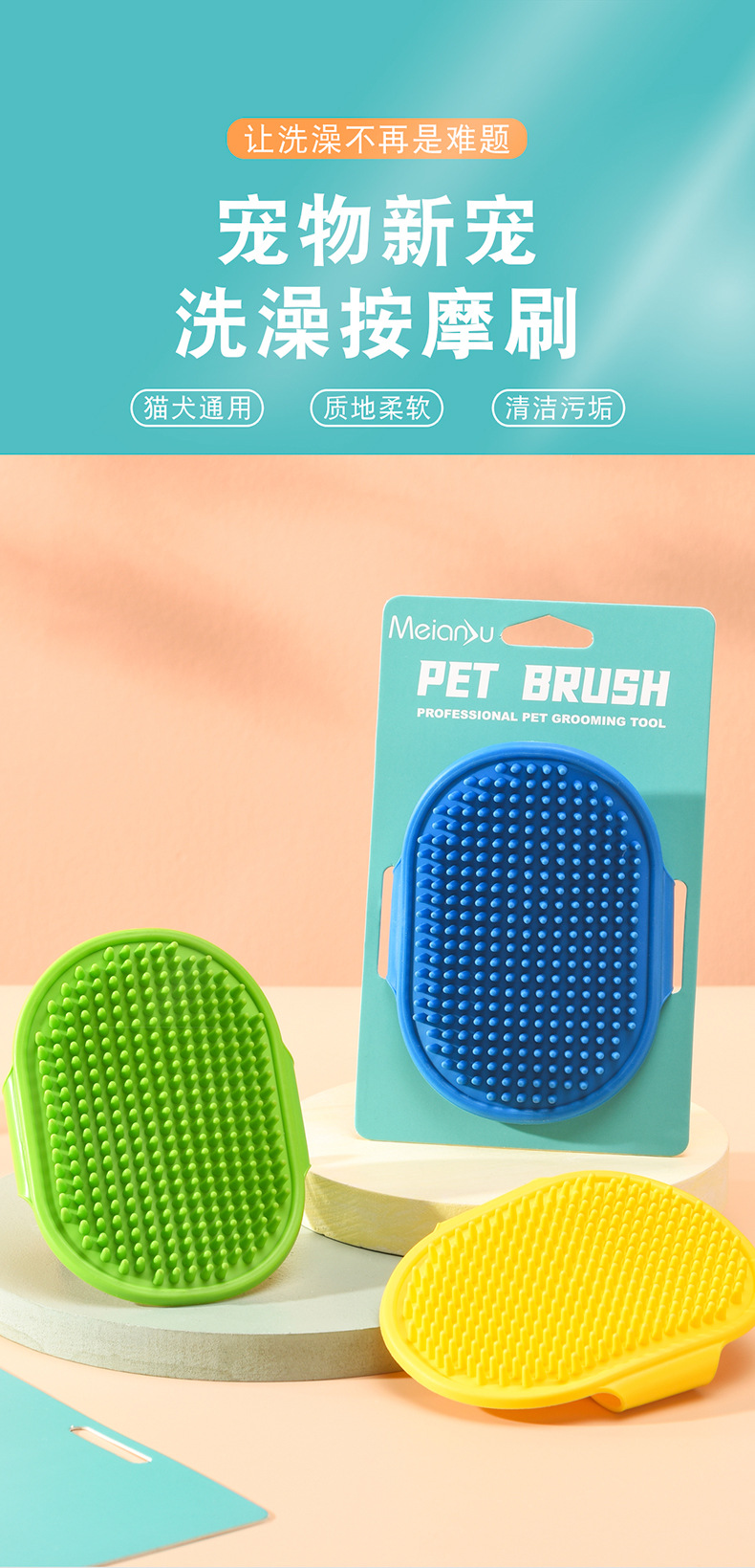 Meianju cepillo de baño para mascotas cepillo de masaje para perros guantes de baño para gatos cepillo de baño para perros productos de limpieza