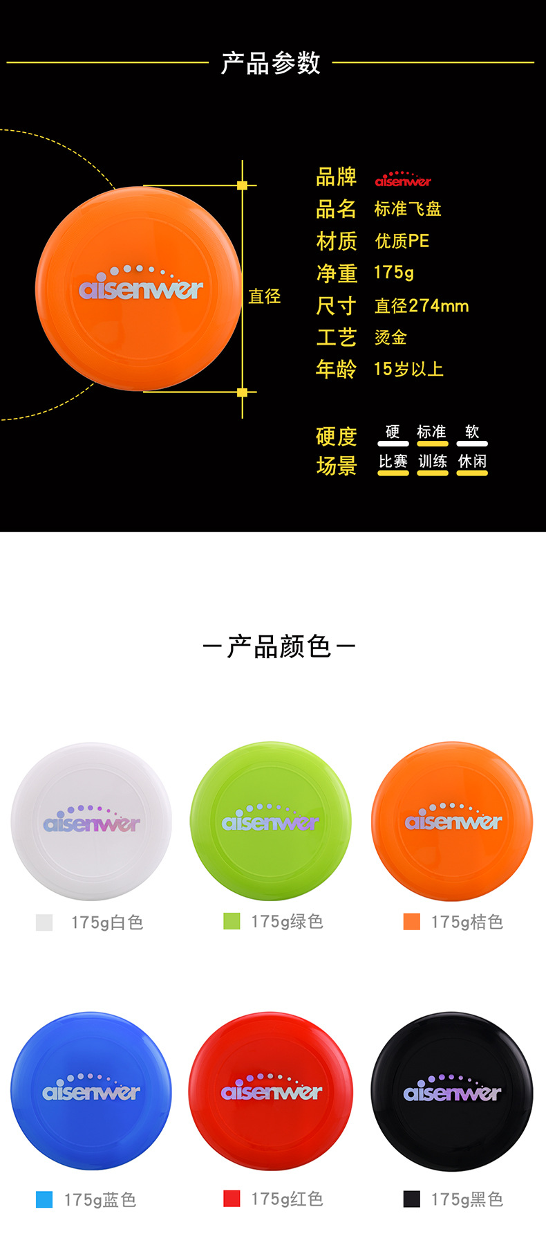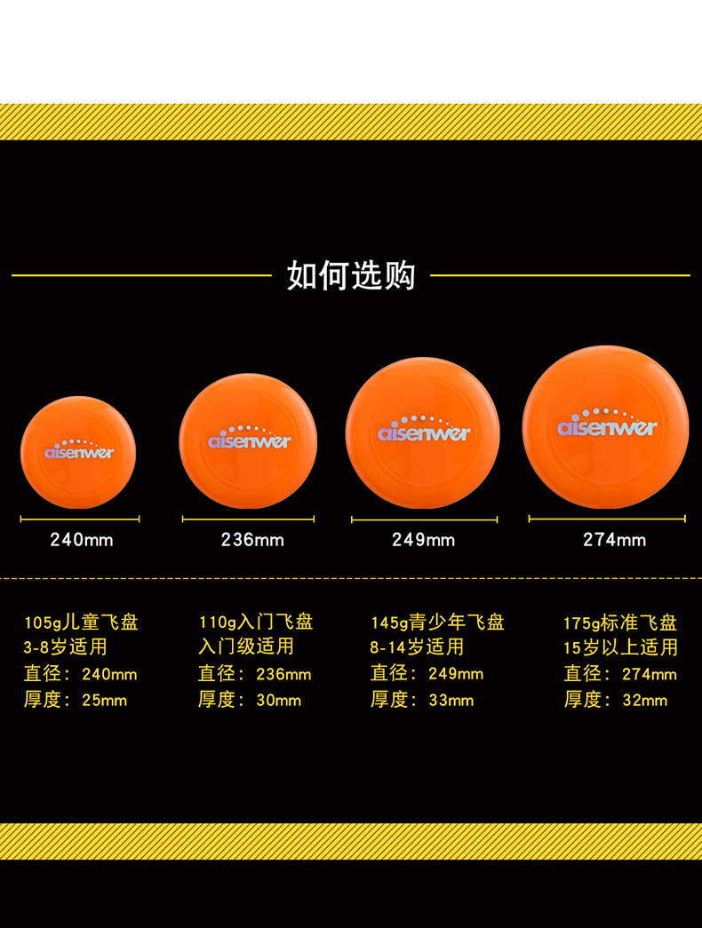 Aisenwer Frisbee extremo profesional 175g equipo de fitness al aire libre competición plato volador swing serie de color Frisbee