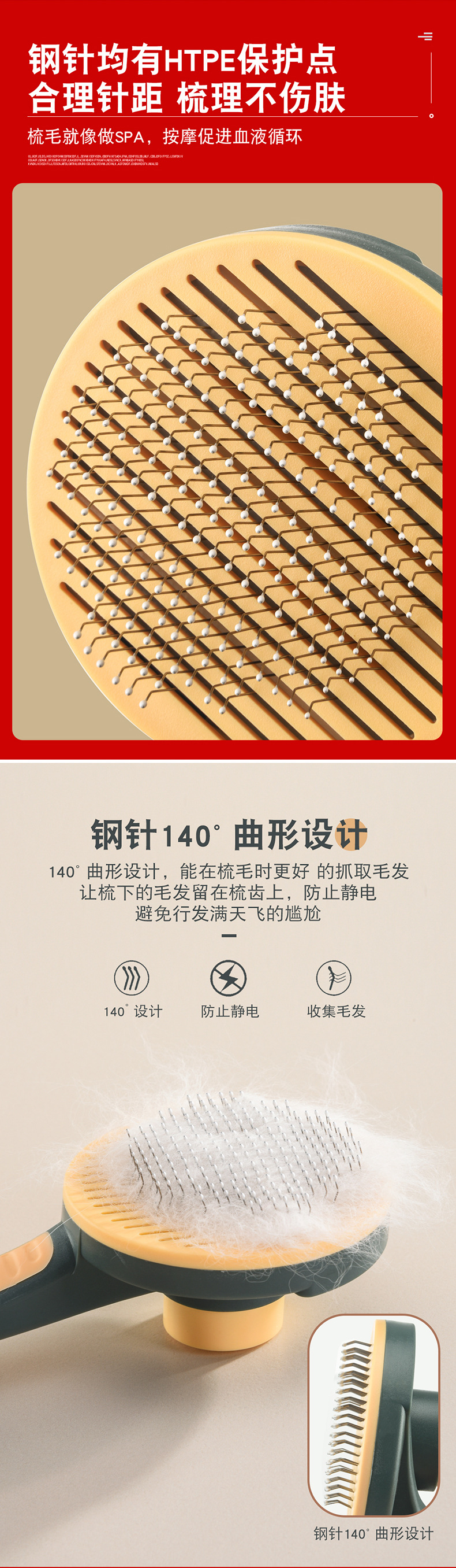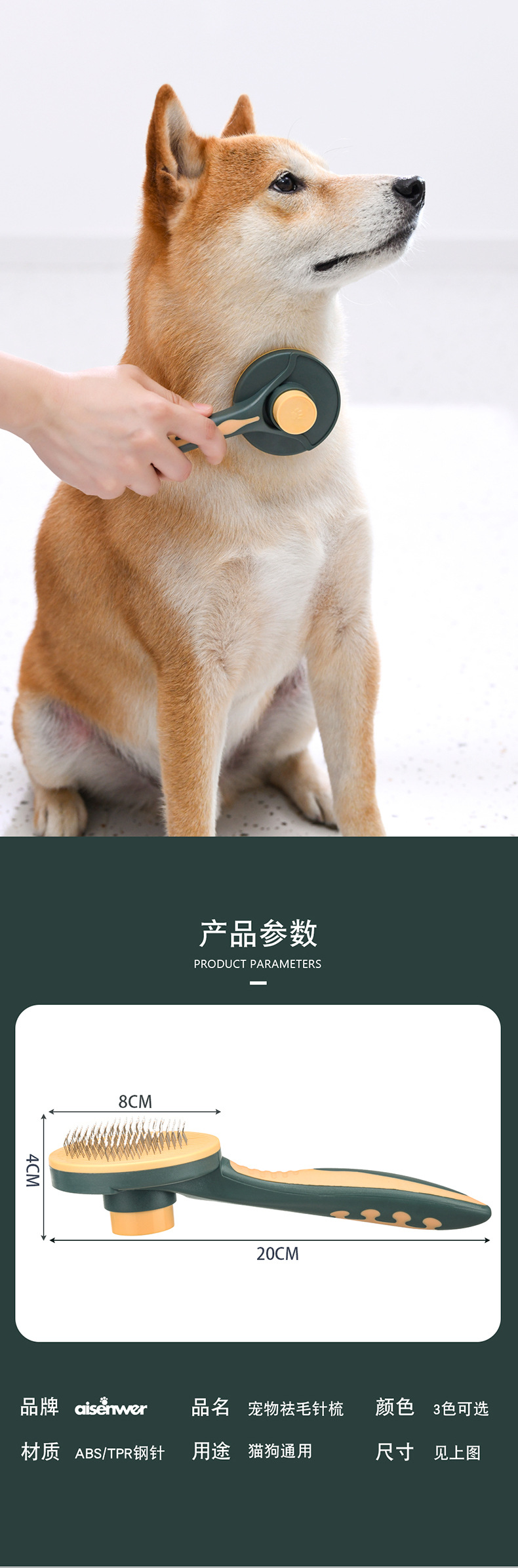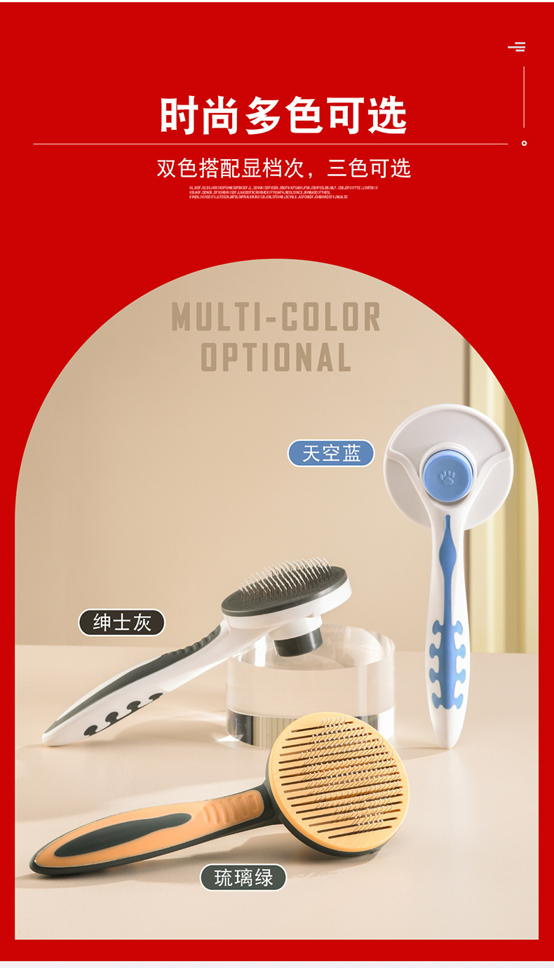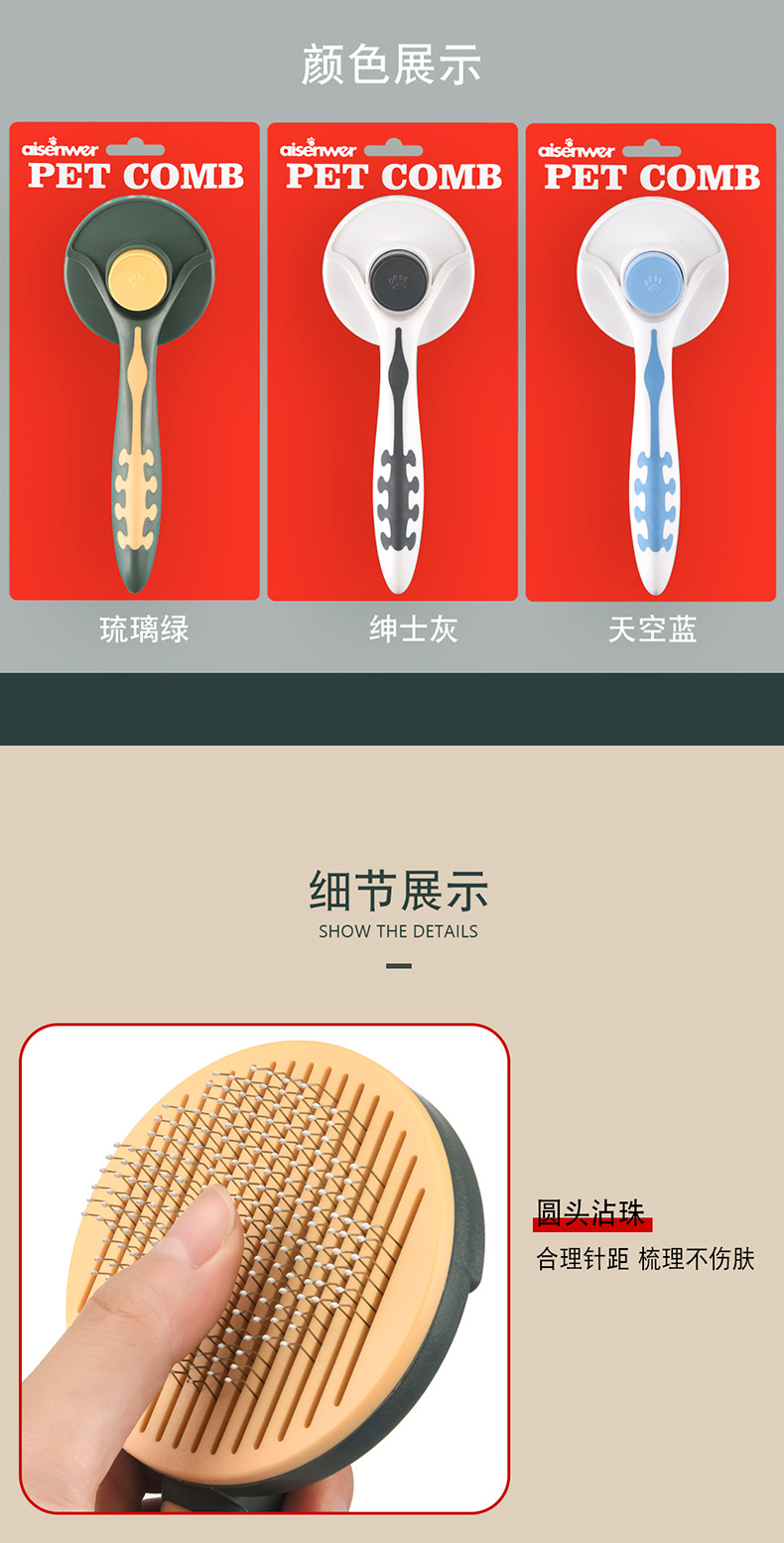 Eisenwell peine para mascotas peine autolimpiante peine de aguja de acero inoxidable peine autolimpiante de una tecla peine de limpieza para perros y gatos productos para mascotas