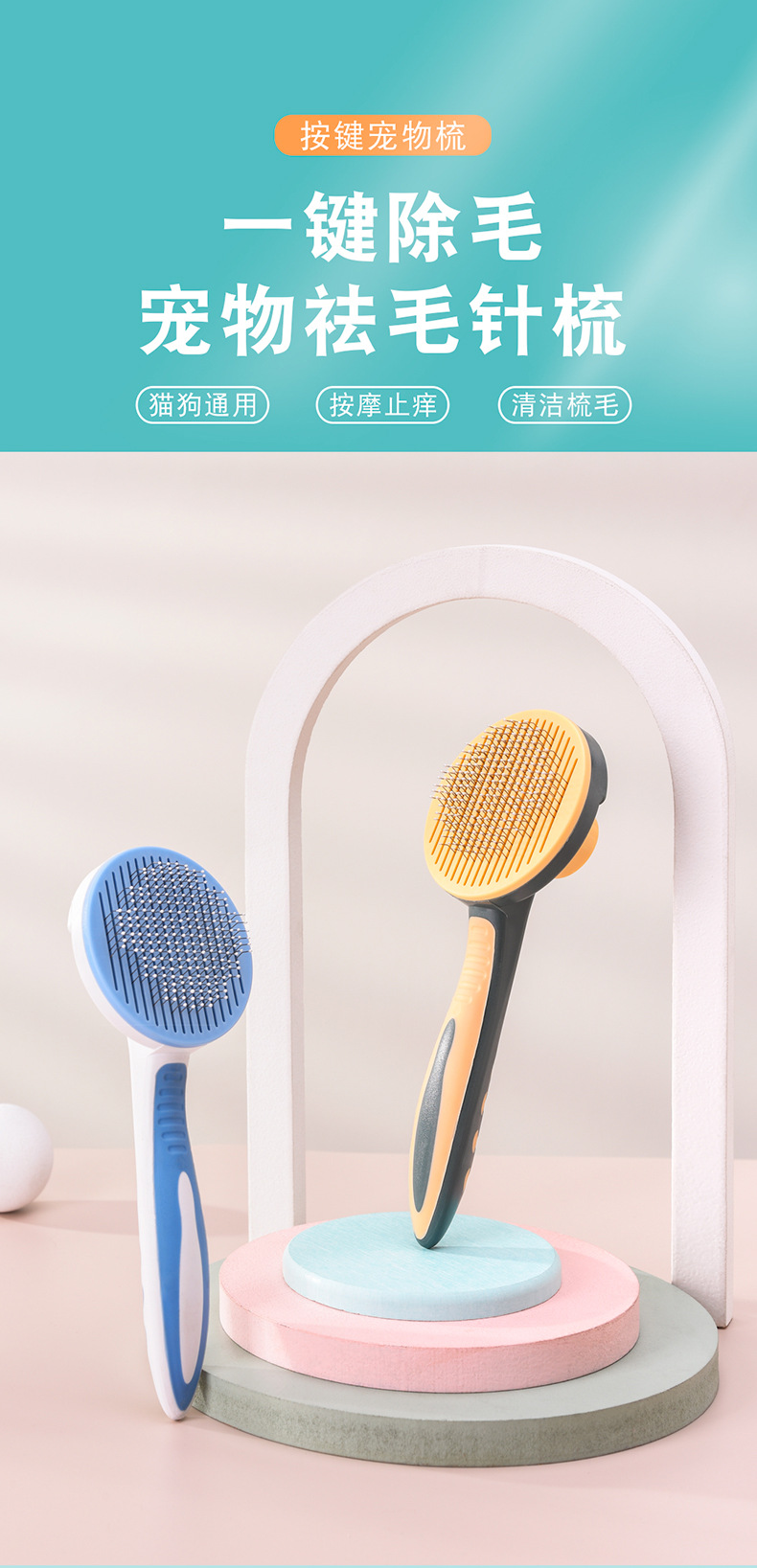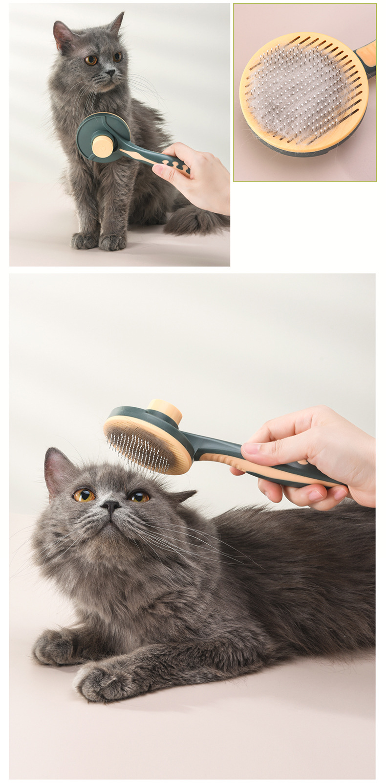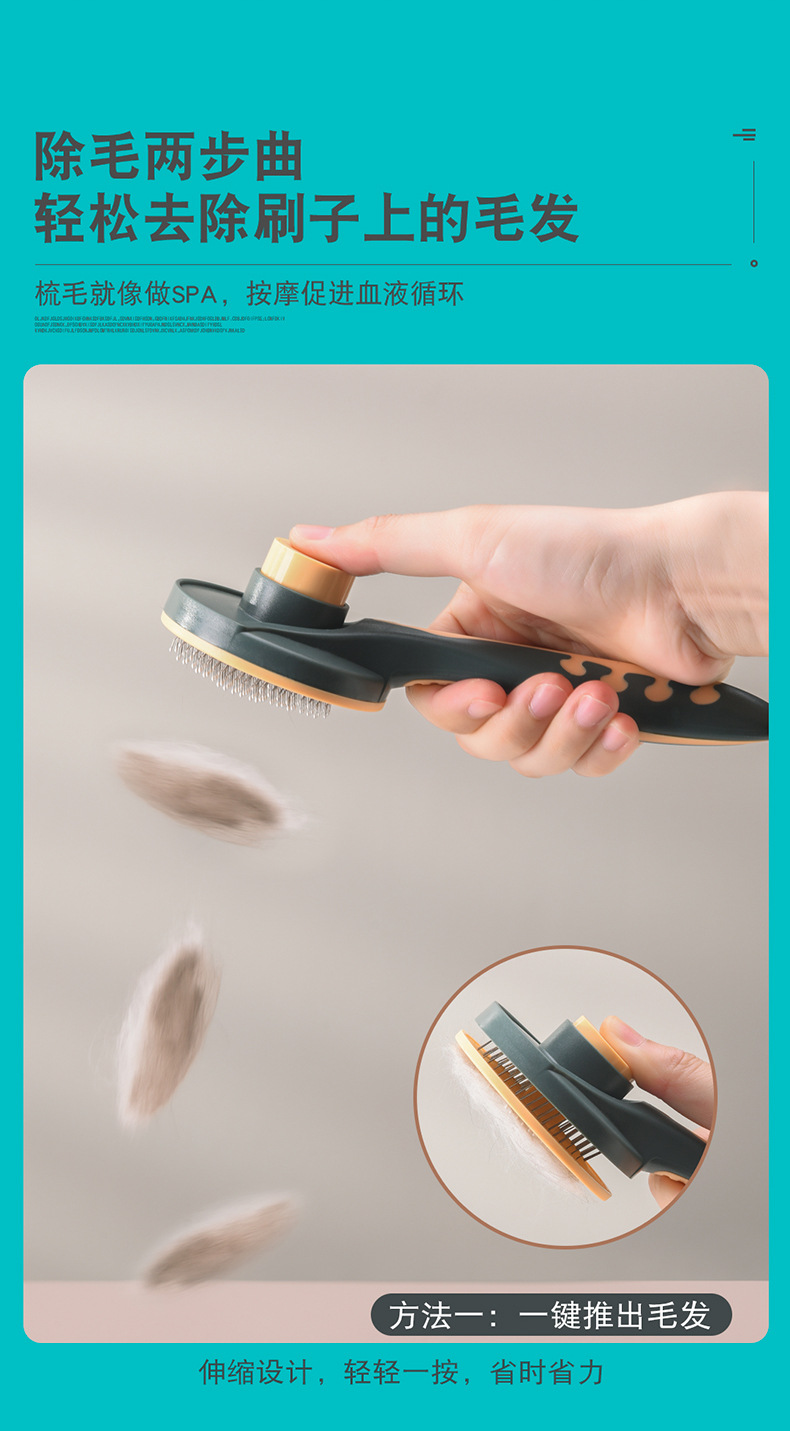 Meianju pein de botón redondo para eliminar el pelo flotante pein de masaje portátil para perros y gatos productos de limpieza de mascotas