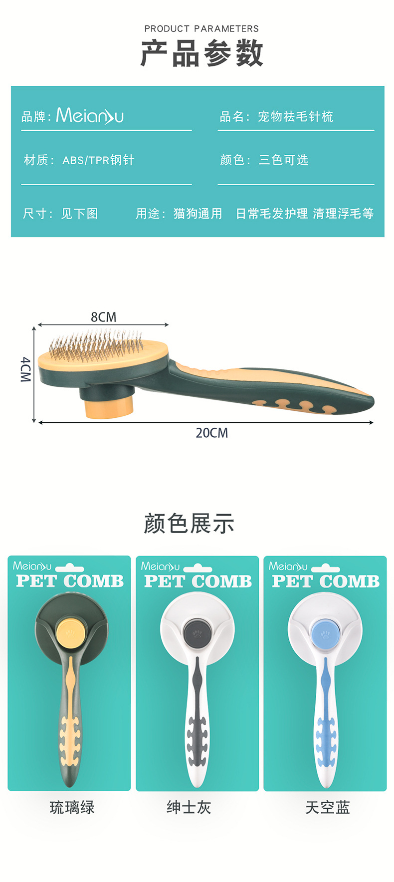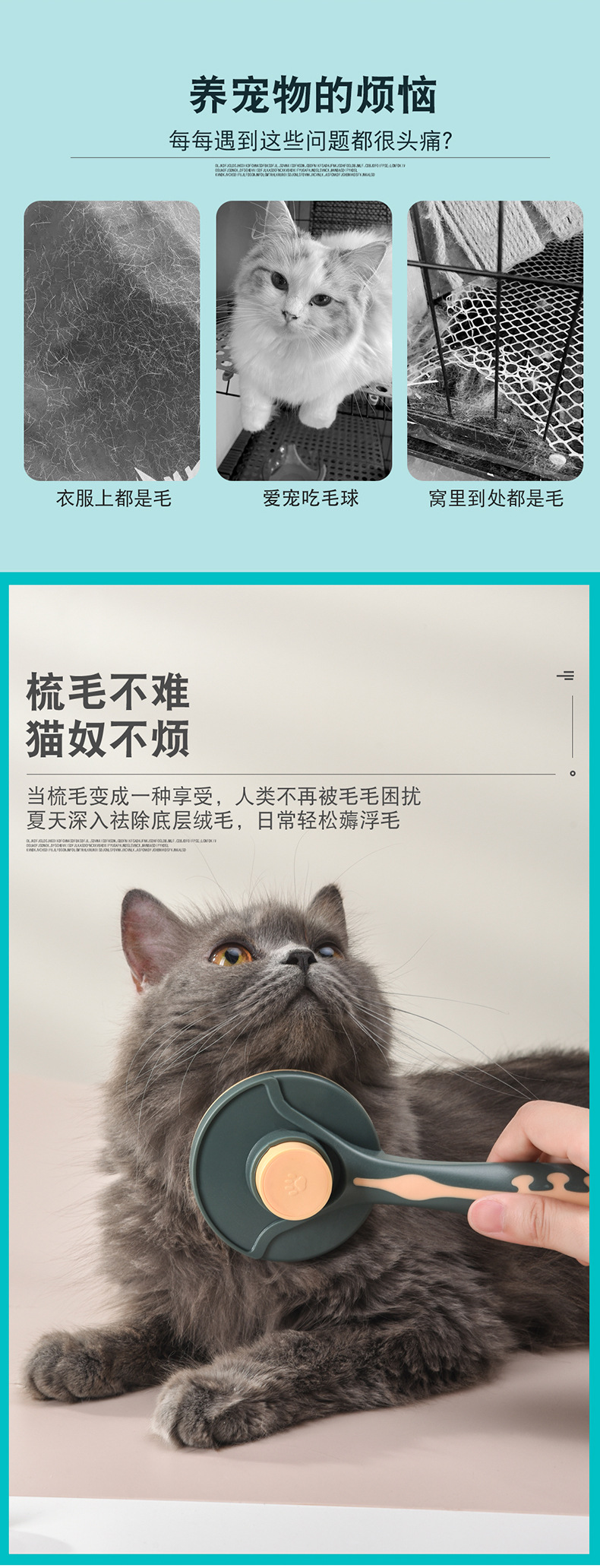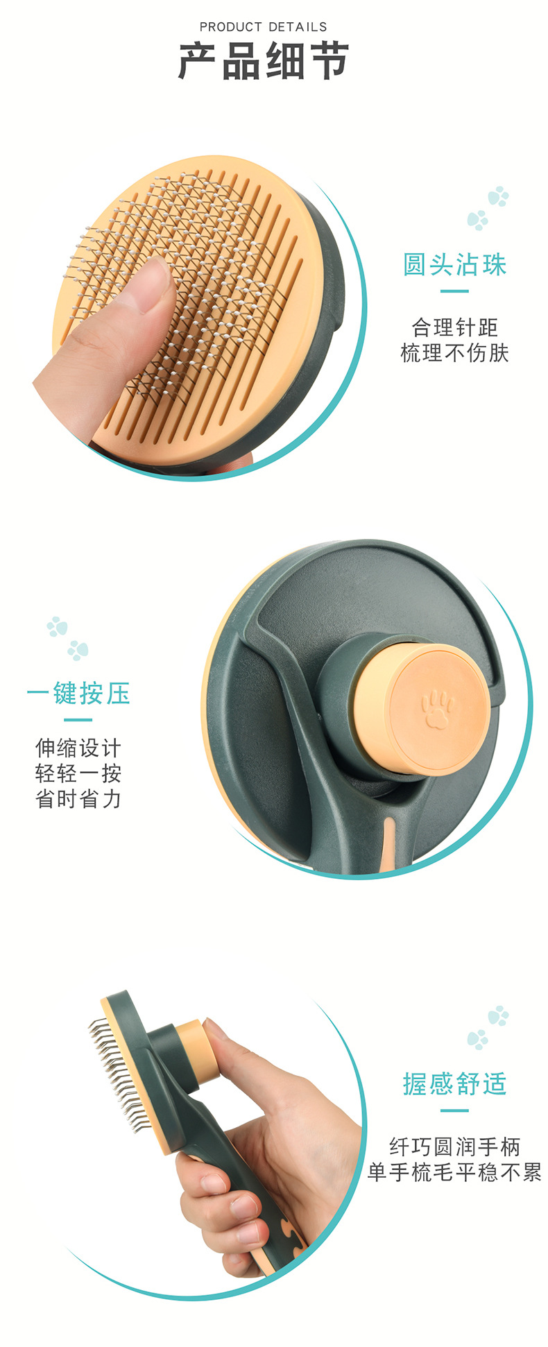 Meianju pein de botón redondo para eliminar el pelo flotante pein de masaje portátil para perros y gatos productos de limpieza de mascotas