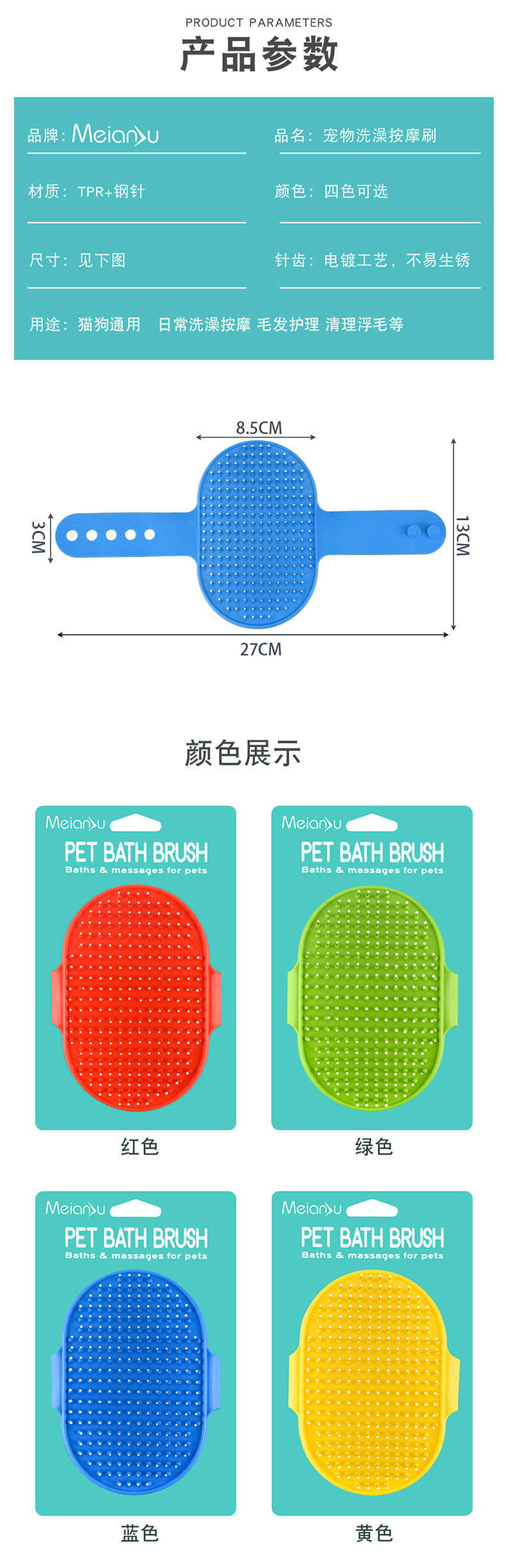 Meianju Masaje de baño de mascotas Peine de aguja Masaje de limpieza para perros y gatos de pelo flotante Baño universal Suministros para mascotas