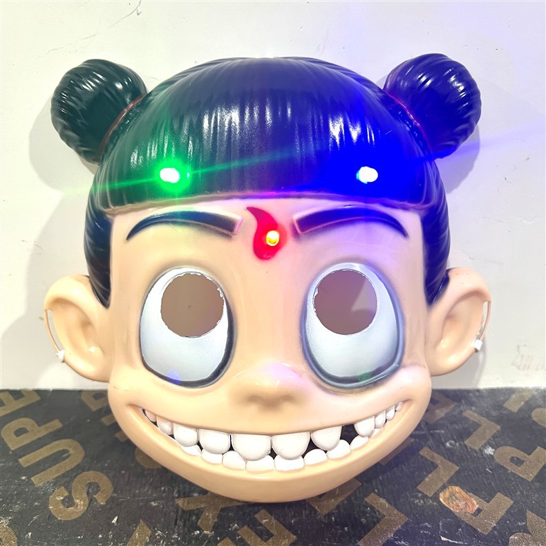 El 1 de junio, el niño demonio de Nezha viene al mundo, la máscara de Nezha, la cara, el traje de acción en vivo, la máscara de la actividad del jardín de infantes, el adulto