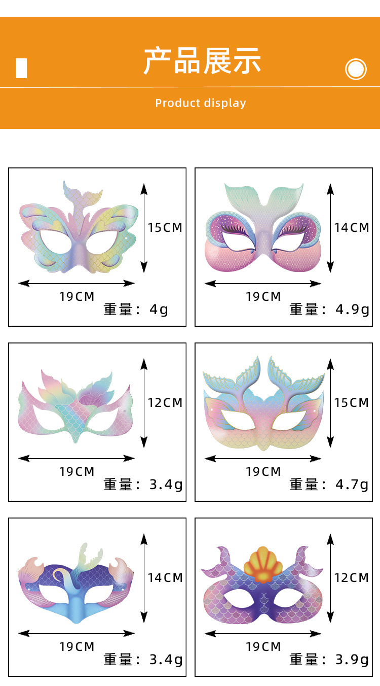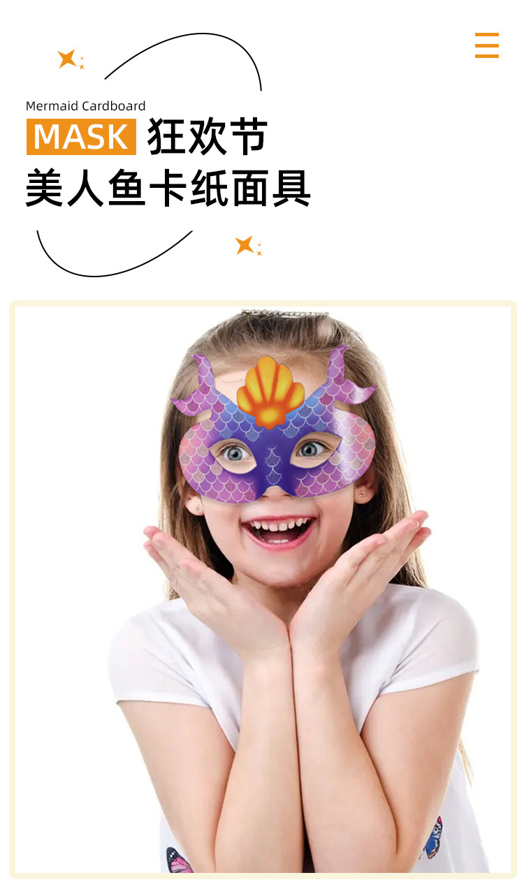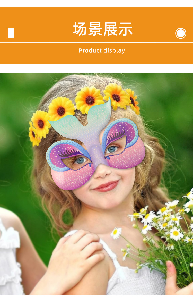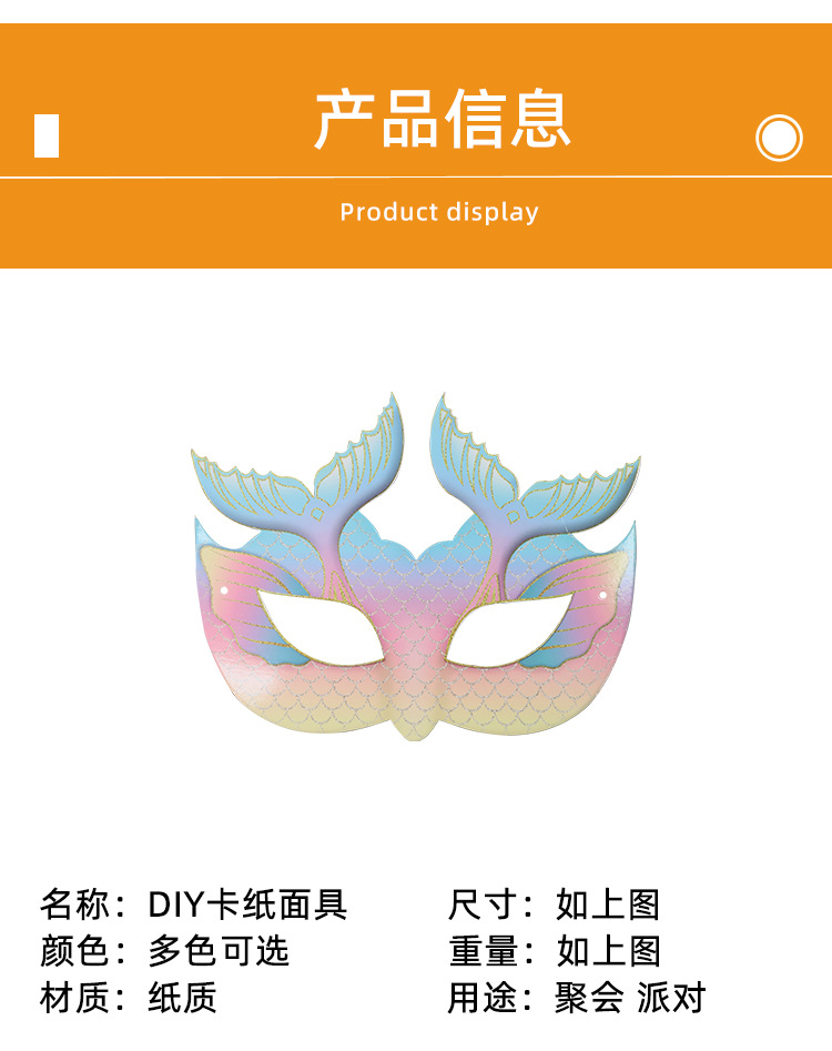Máscara de tarjeta de sirena transfronteriza DIY se puede colorear para niños fiesta de cumpleaños media cara máscara de ojos al por mayor