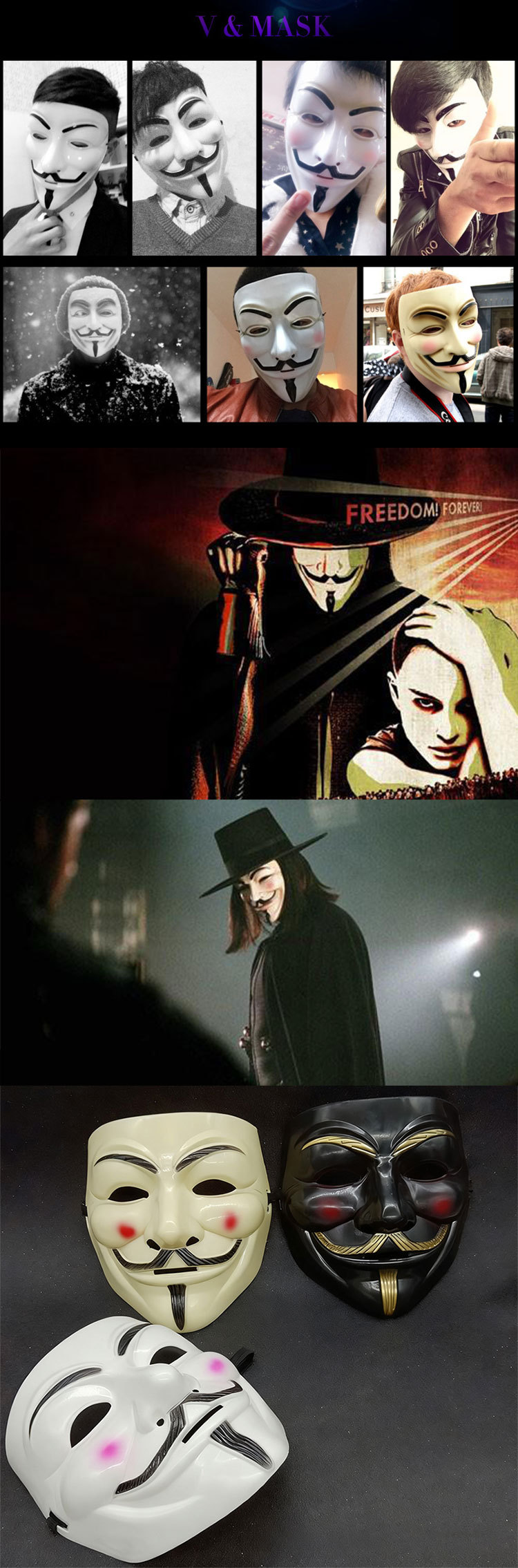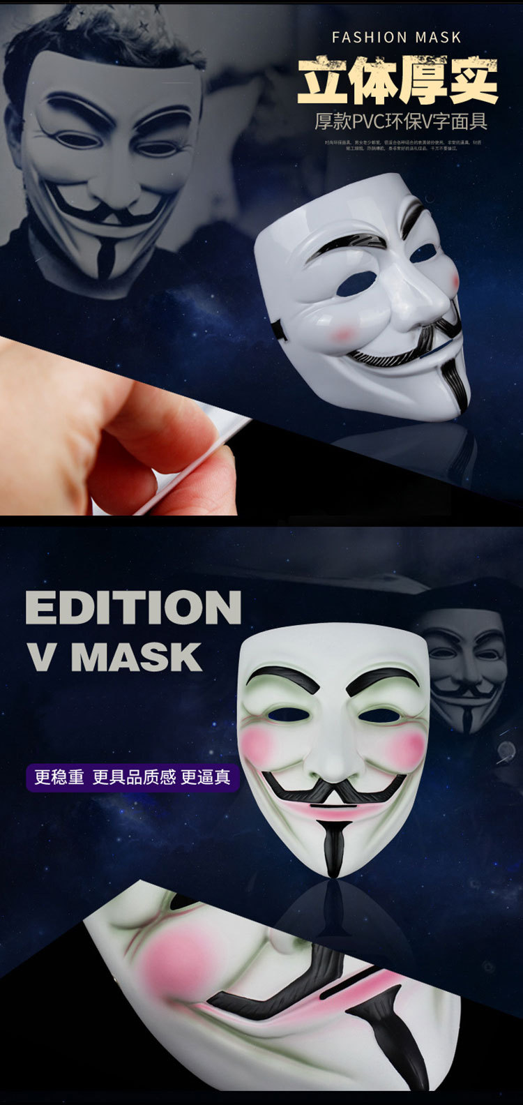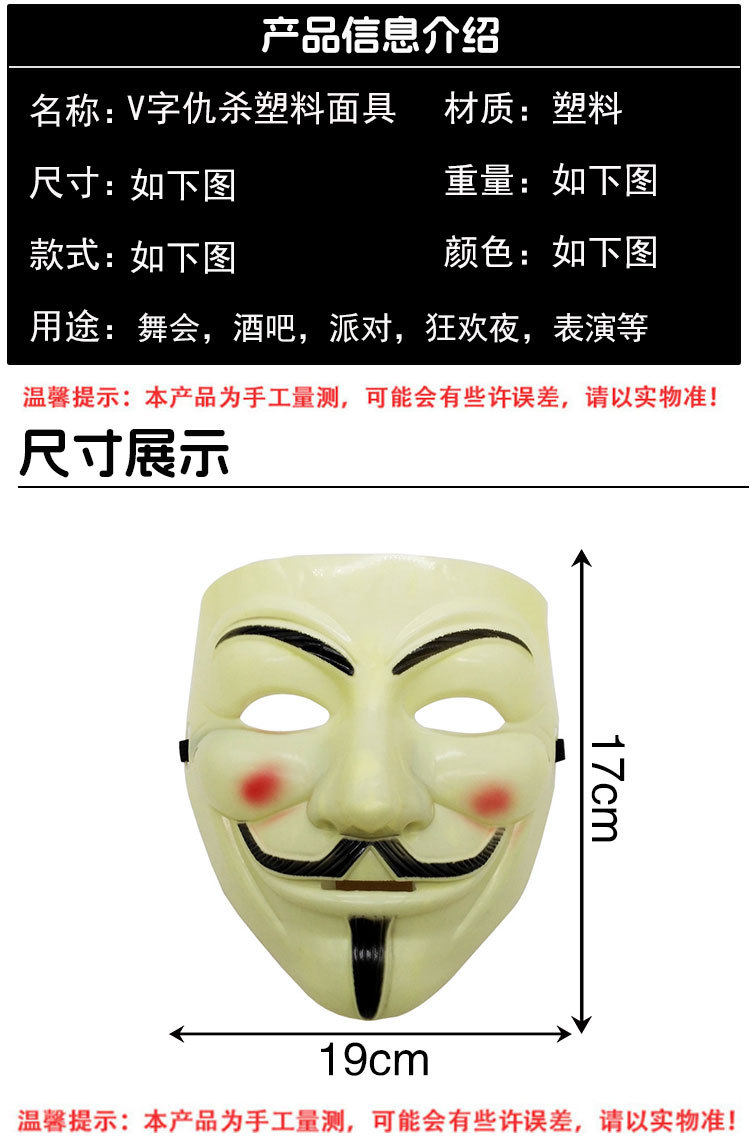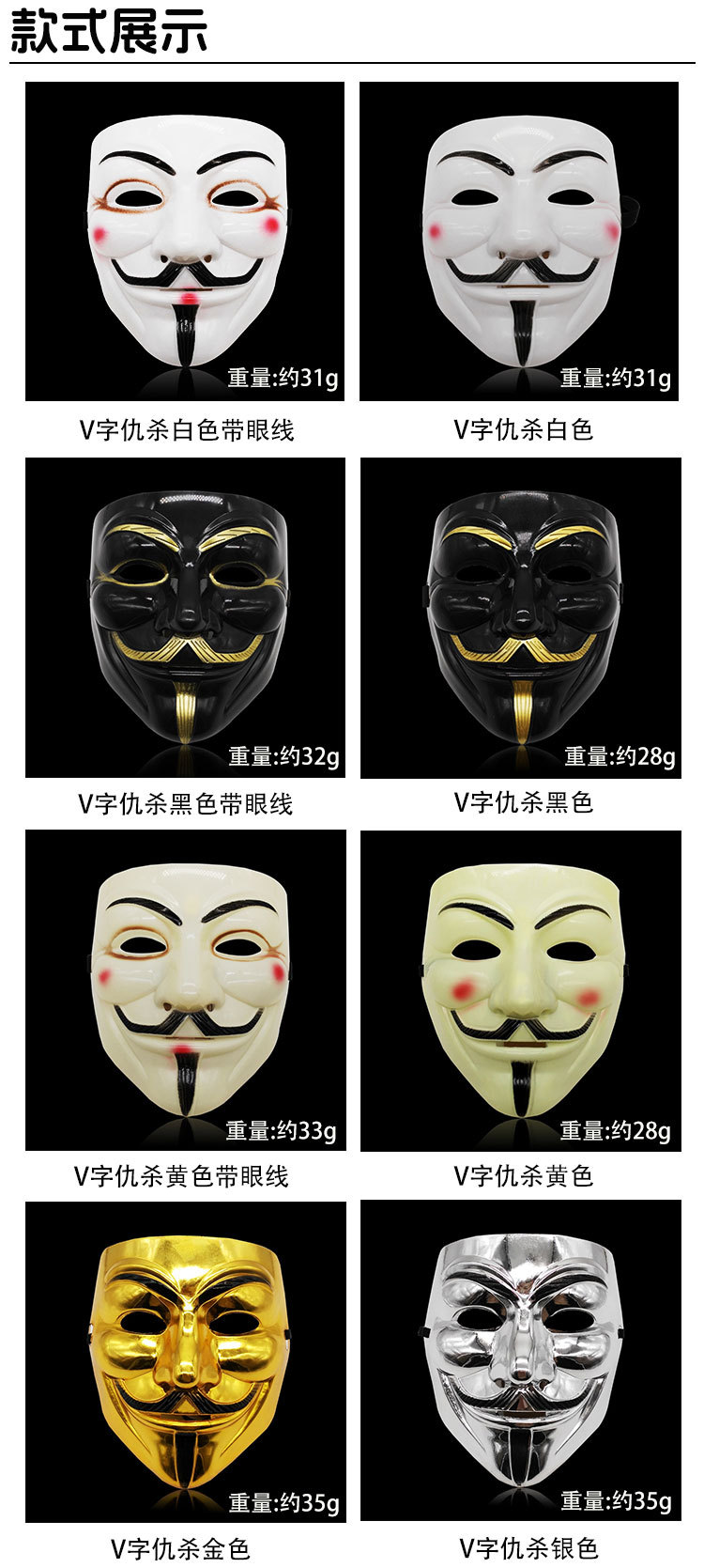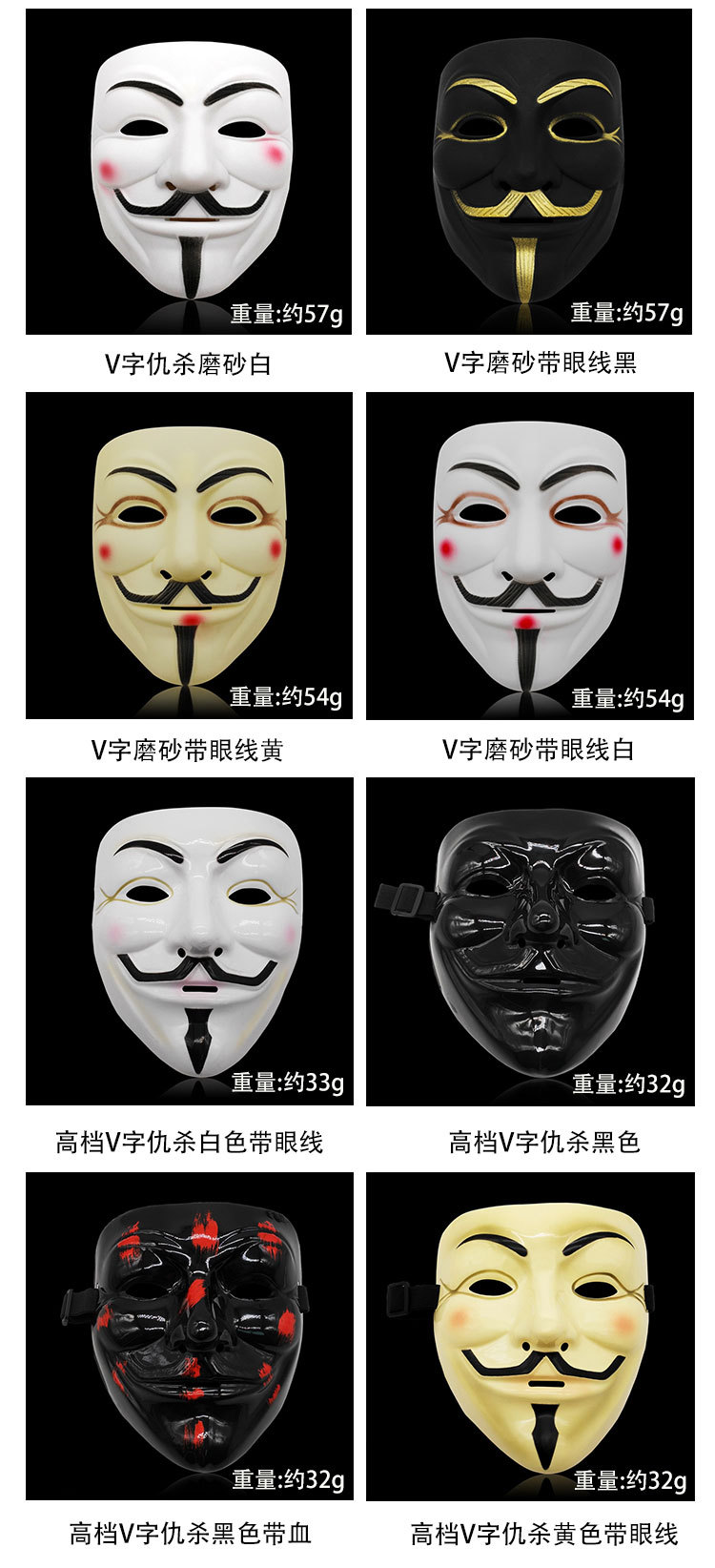 Fabricantes al por mayor carnaval transfronterizo V-shaped venganza máscara de Halloween payaso de terror disfraz máscara de plástico
