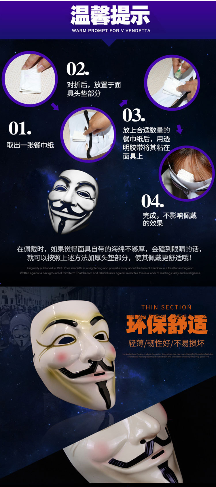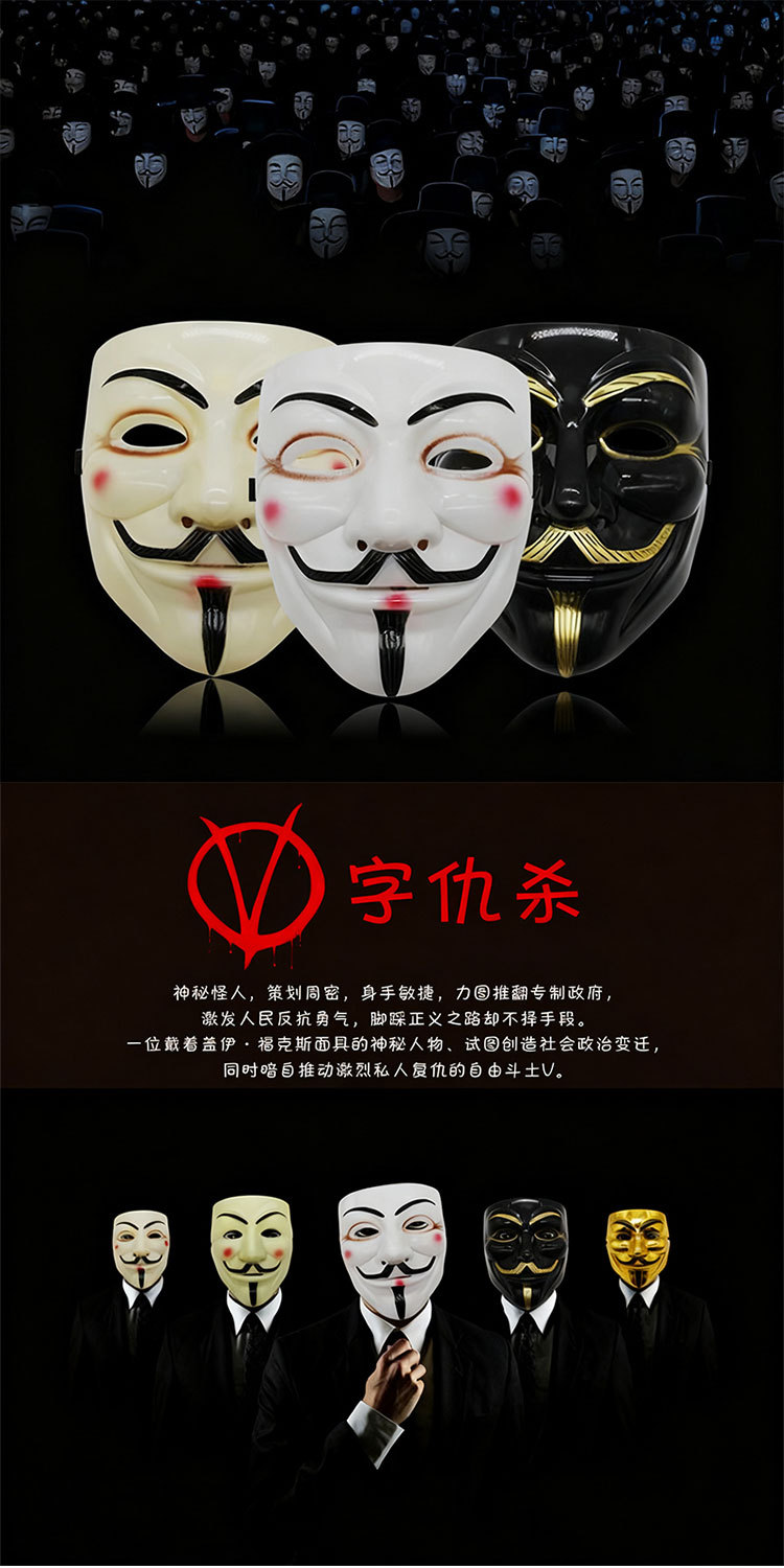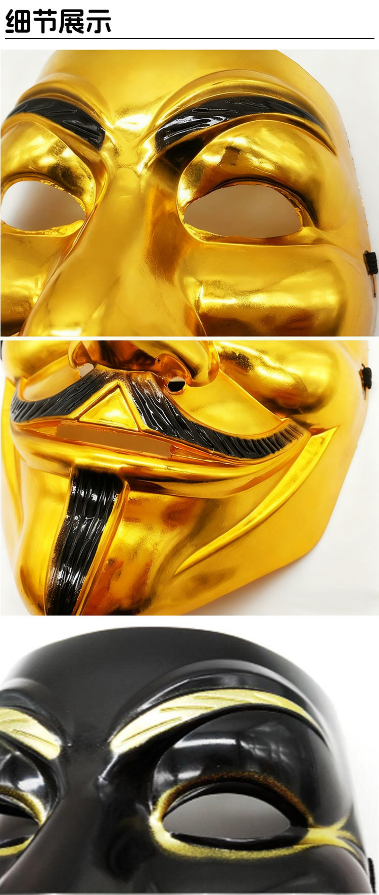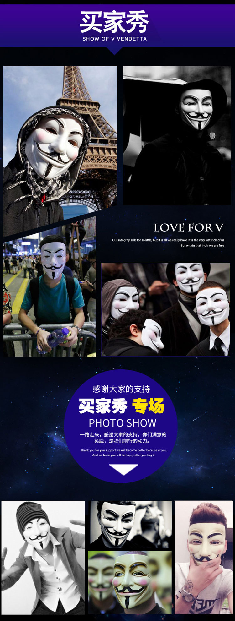 Fabricantes al por mayor carnaval transfronterizo V-shaped venganza máscara de Halloween payaso de terror disfraz máscara de plástico