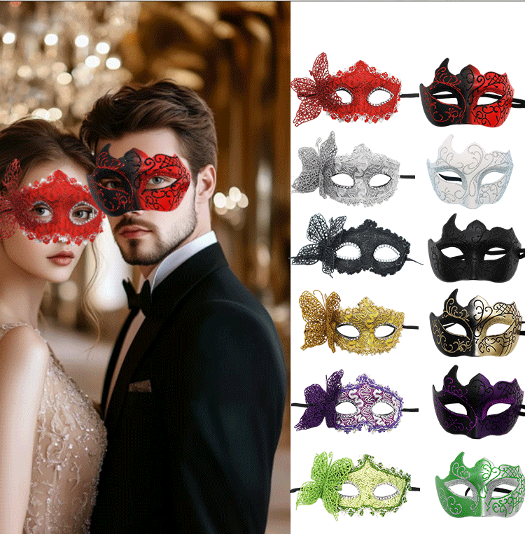 Carnaval transfronterizo lateral mariposa máscara de mitad de cara veneciana de alta calidad fiesta de baile pintada máscara de pareja para hombres