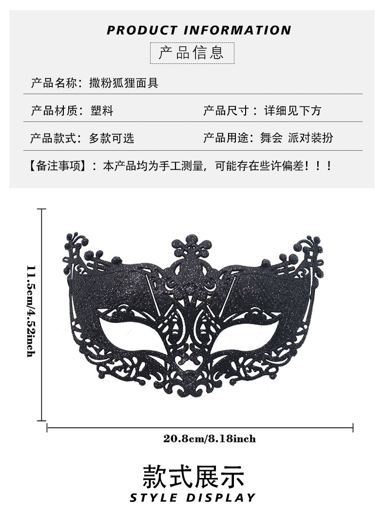 Amazon Carnaval Fox Half Face Mask Polvo de Oro Hollow Ball Halloween Venecia máscara de maquillaje de plástico
