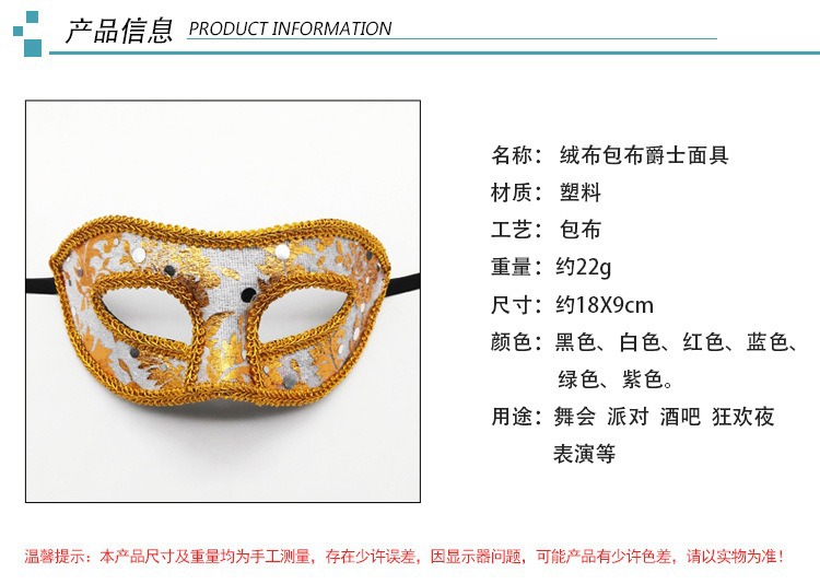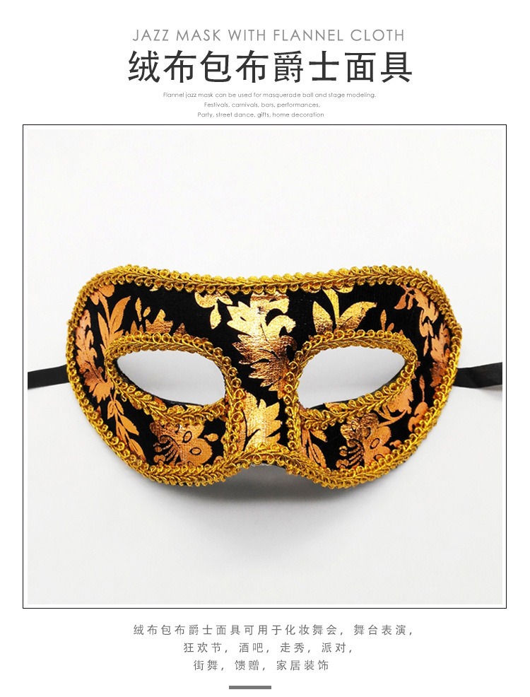 Amazon venta caliente máscara de jazz máscara de tela de lana cabeza plana máscara de borde para hombres suministros de vacaciones al por mayor