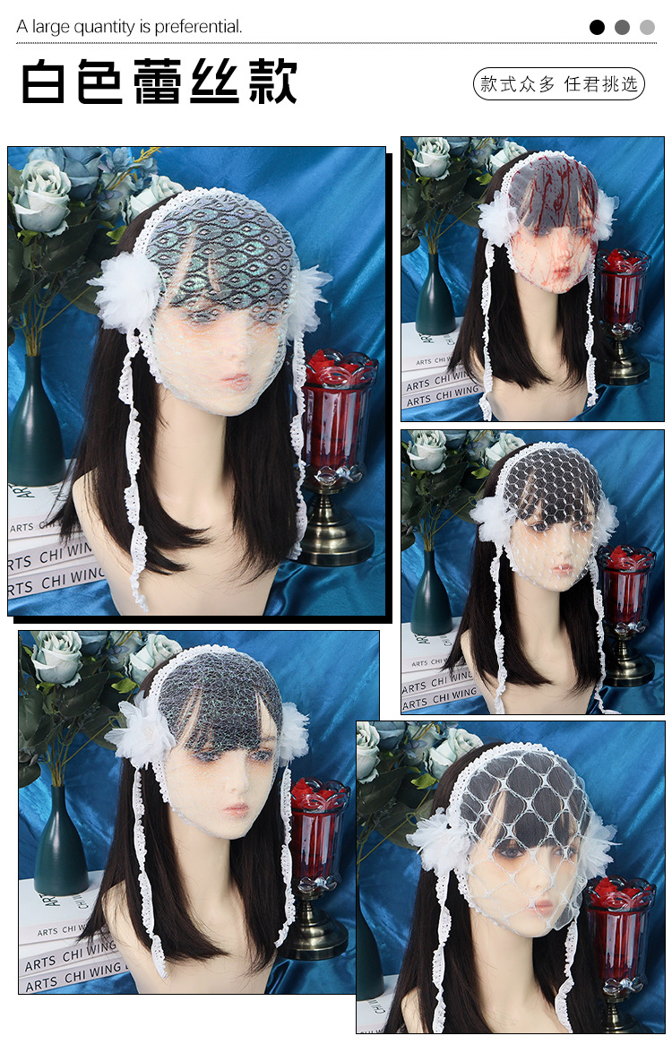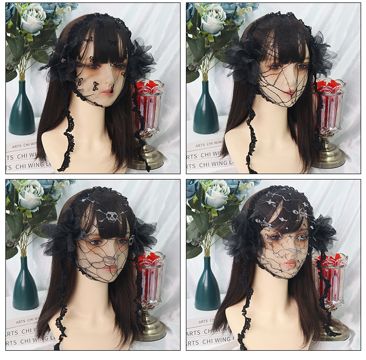 Amazon transfronterizo de encaje negro velos de cabello agujeros grandes toque de malla foto de fiesta de belleza TK
