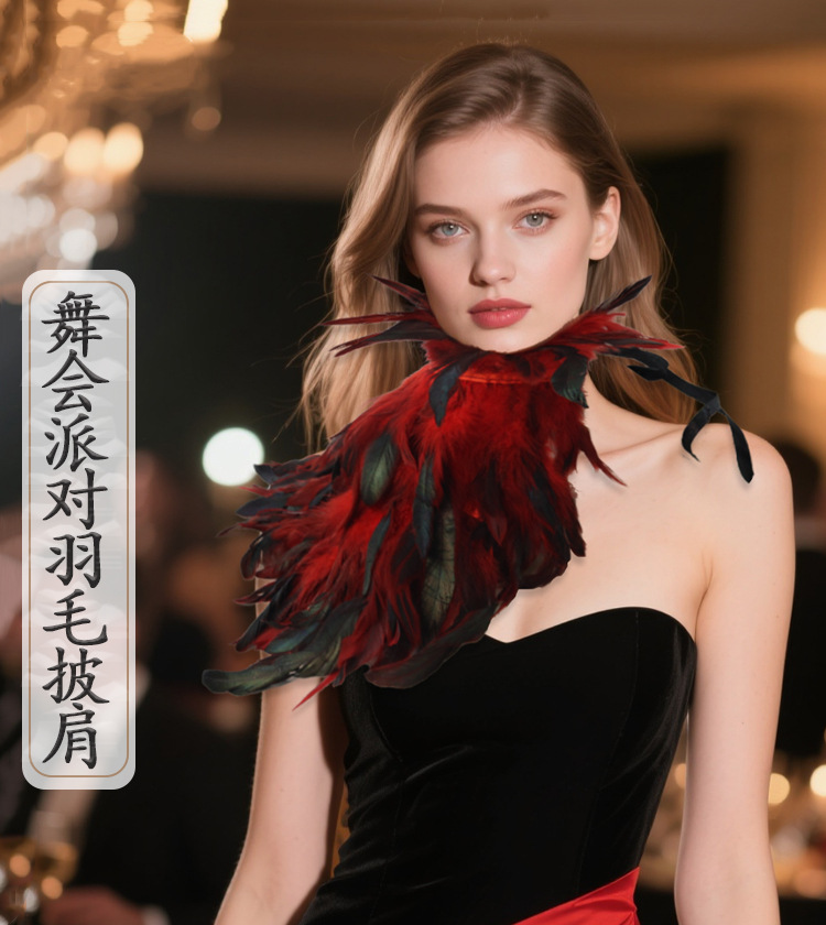 Ventas transfronterizas chale de encaje estilo gótico plumas escenario desfile de juegos de rol accesorios de fiesta