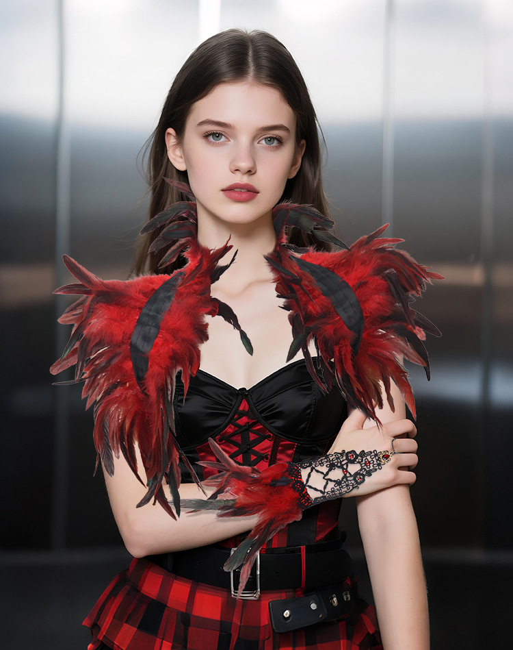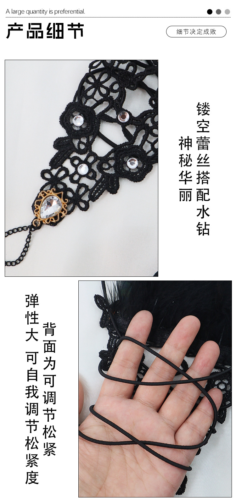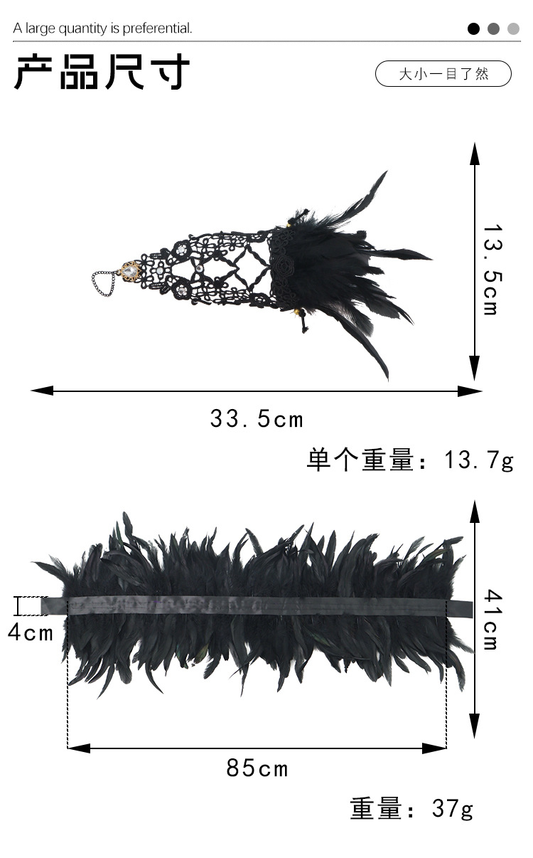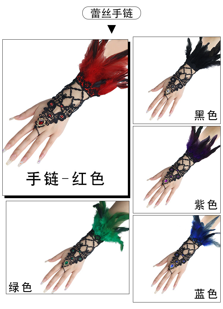 Nuevos productos transfronterizos de plumas, pañuelos de diamante, brazaletes de encaje, espectáculo de baile, vestido sexy, set oscuro