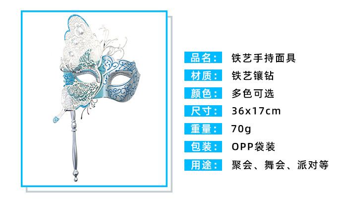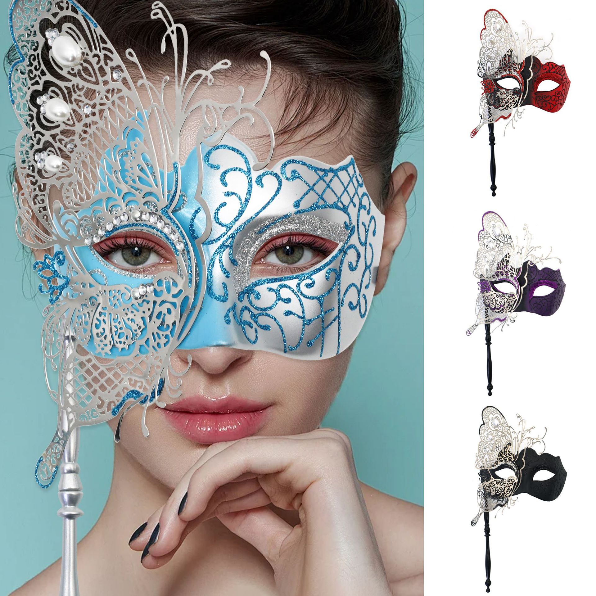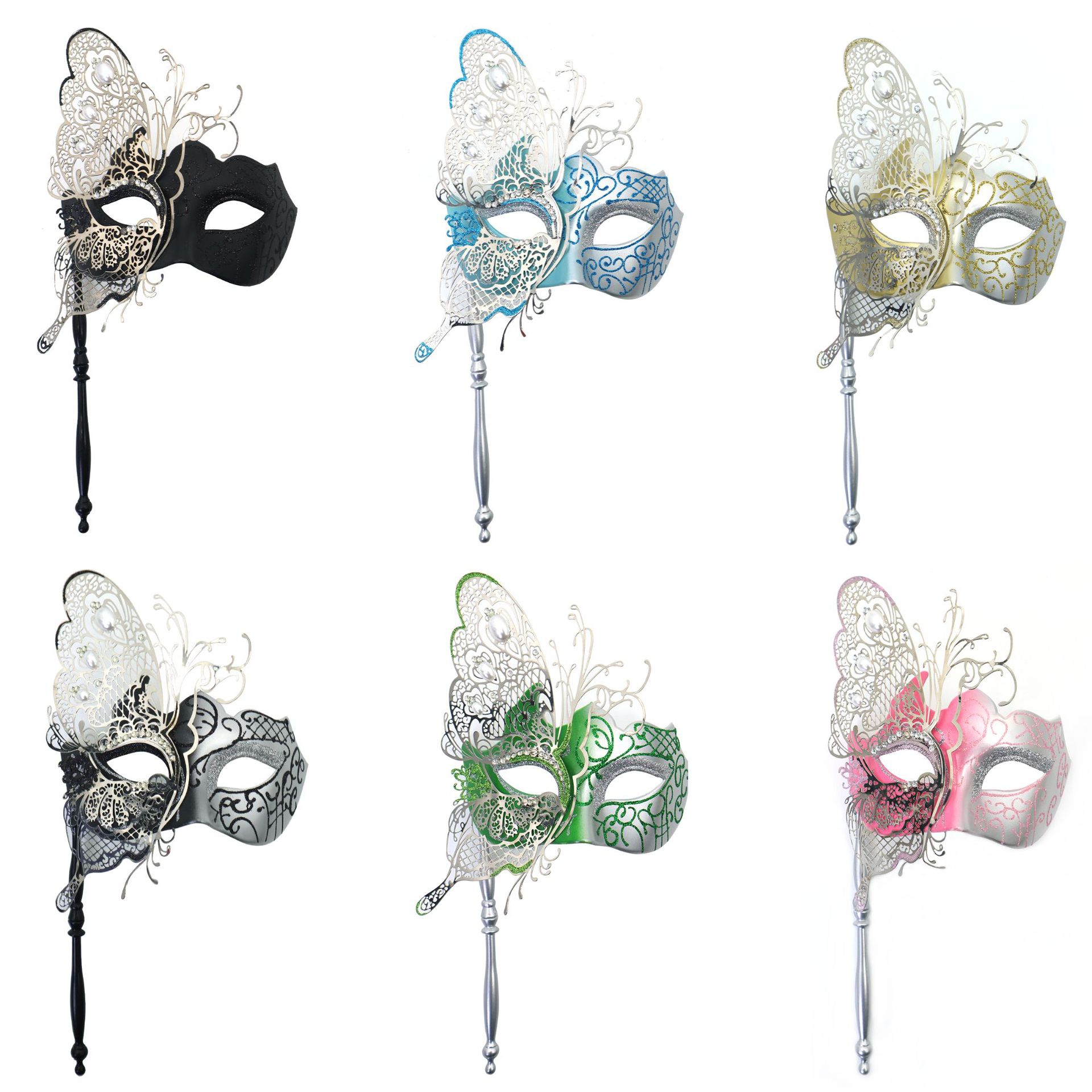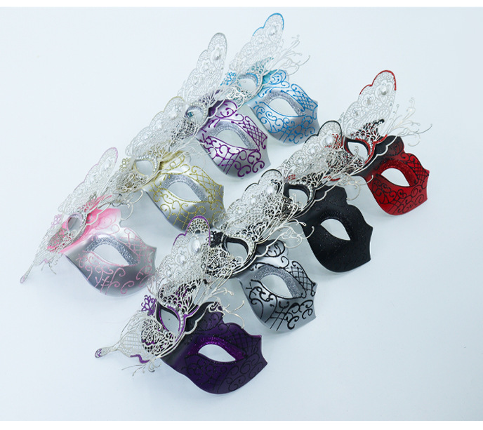 Ventas transfronterizas de diamantes de mano máscara de baile de maquillaje mariposa pintada de hierro forjado mitad cara máscara de carnaval sexy