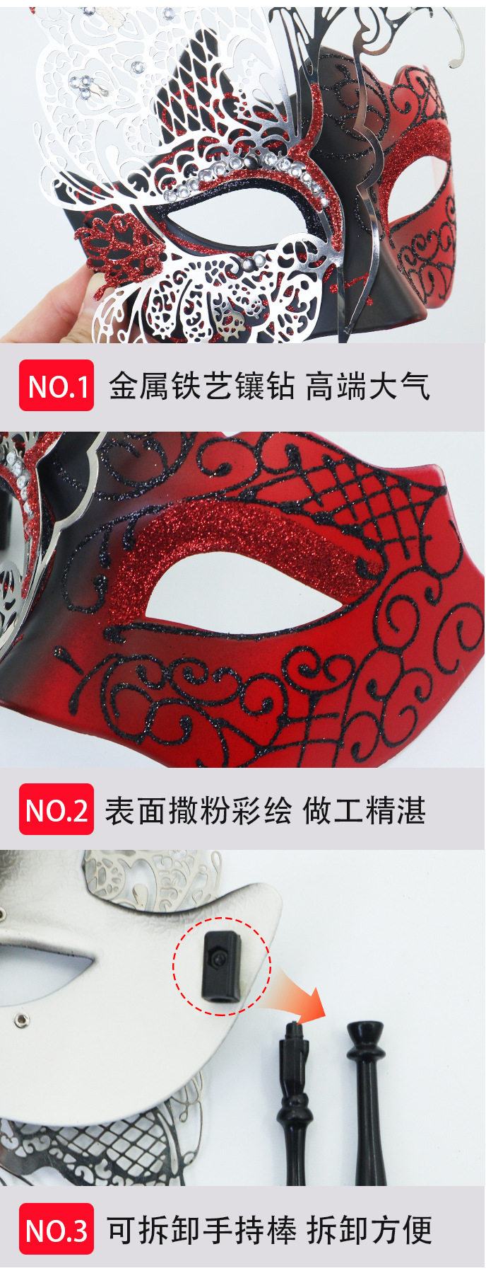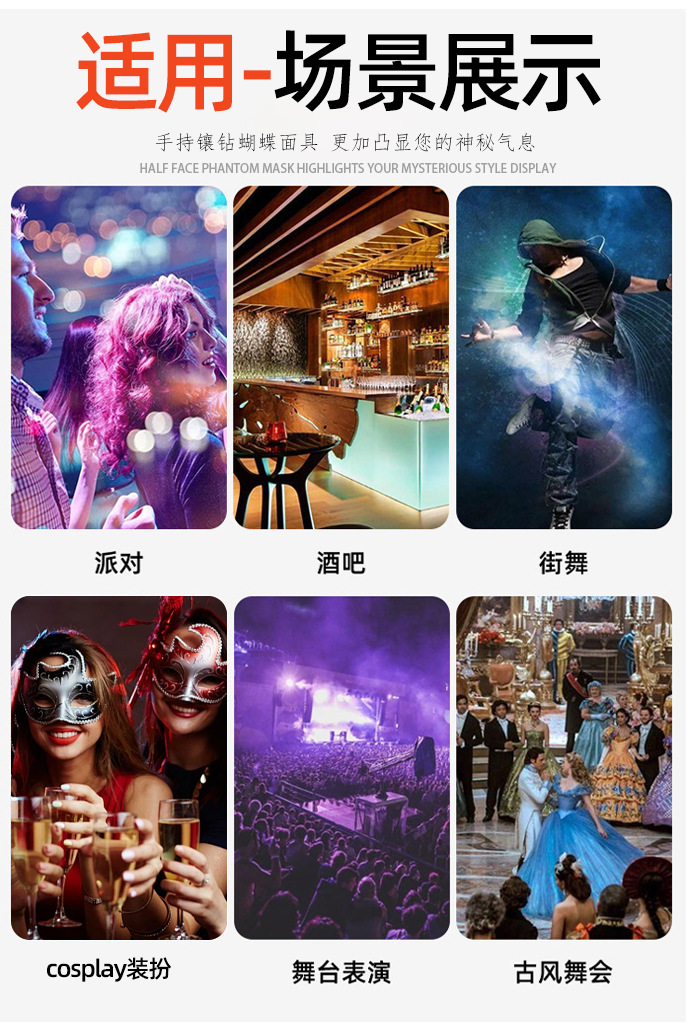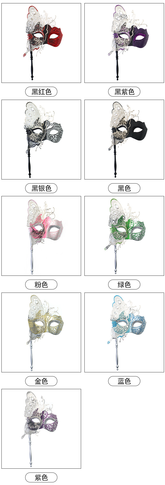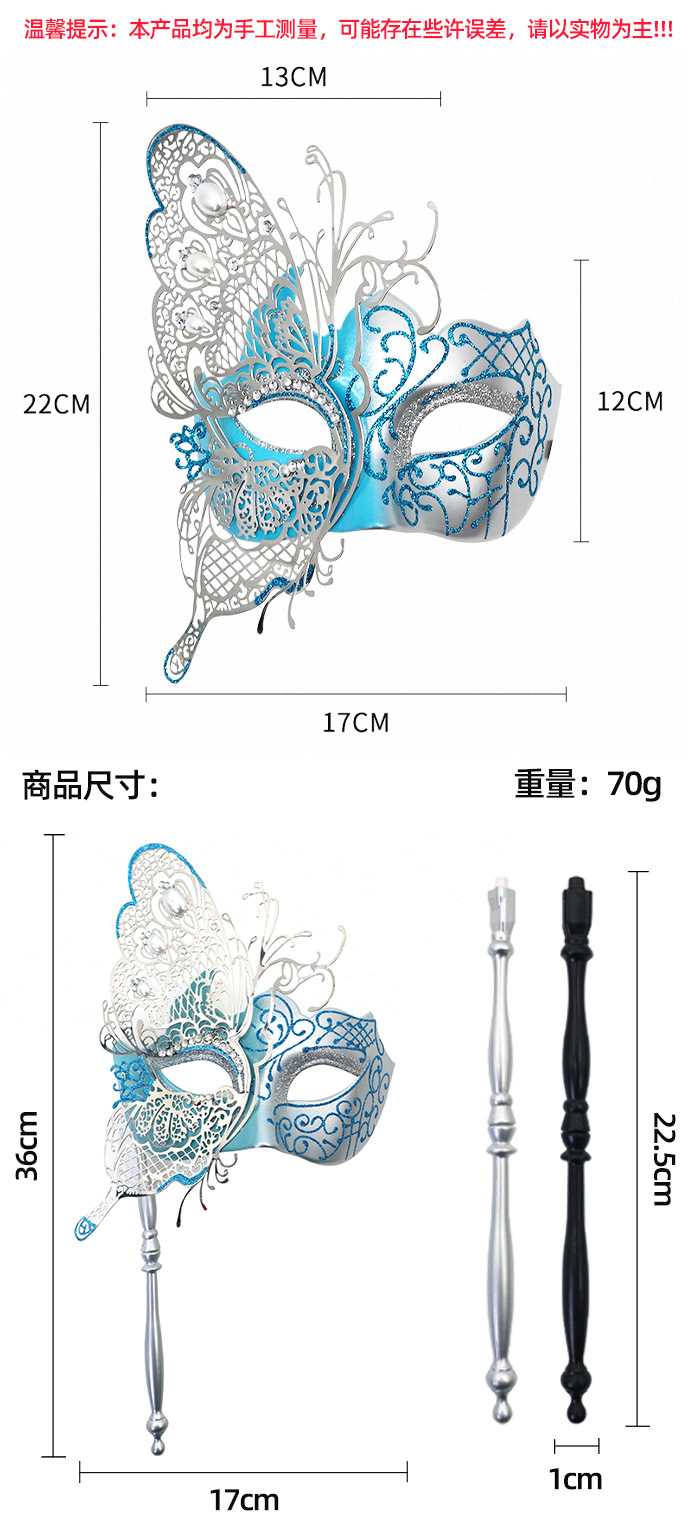 Ventas transfronterizas de diamantes de mano máscara de baile de maquillaje mariposa pintada de hierro forjado mitad cara máscara de carnaval sexy
