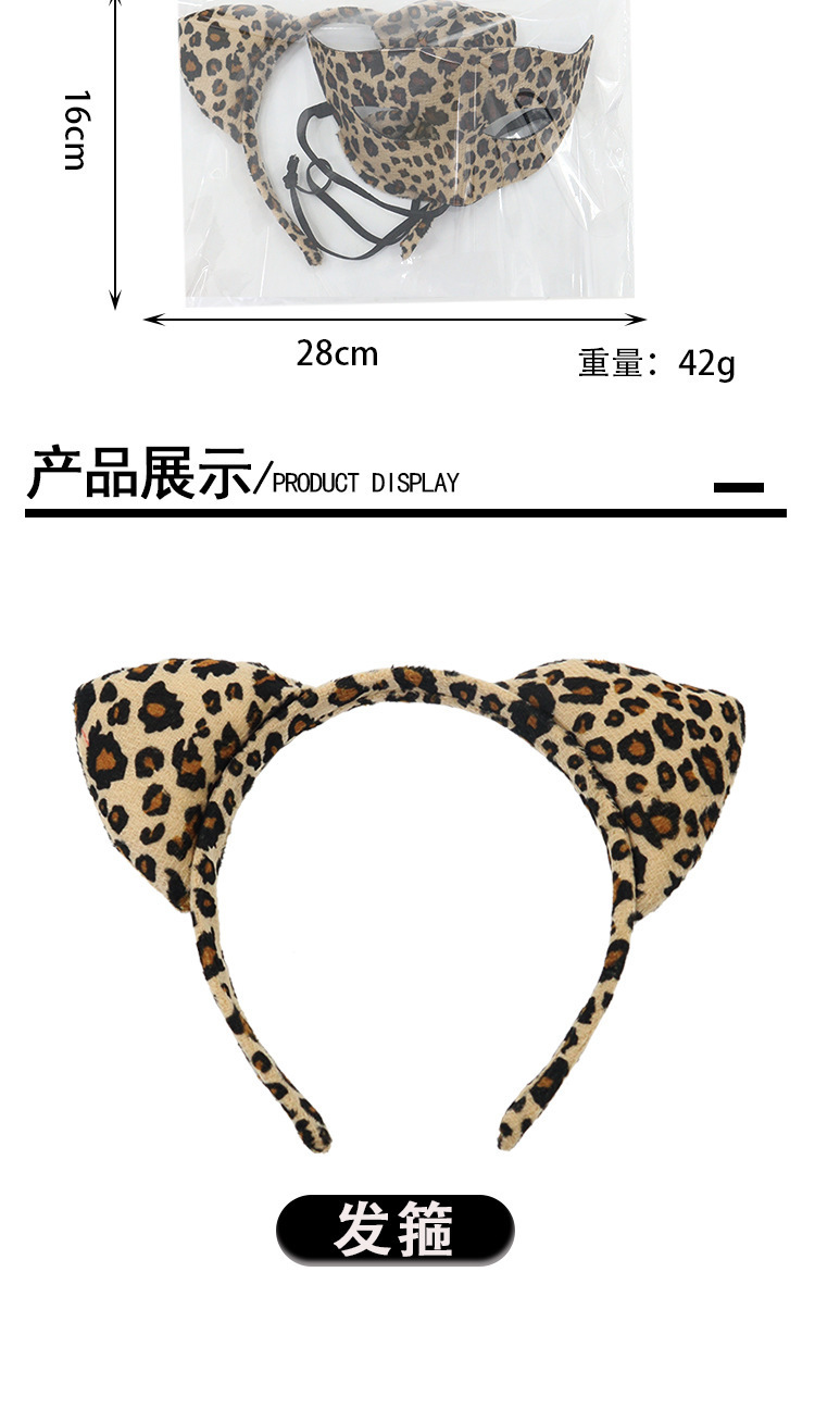 Ventas transfronterizas calientes gafas de leopardo media cara máscara de baile de leopardo gato orejas de cabello bandas de ojos decoración props de fiesta TK