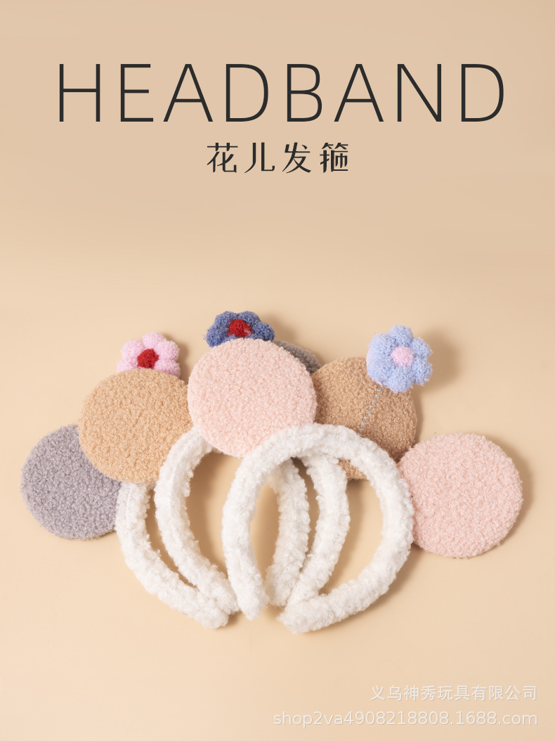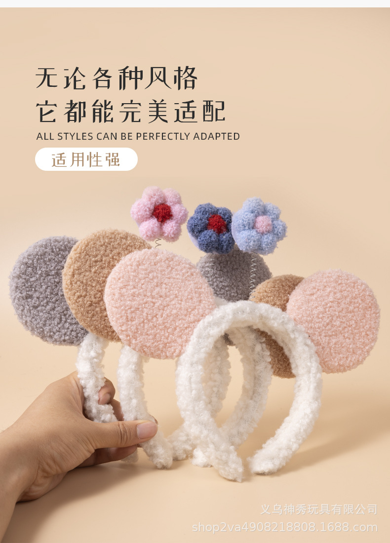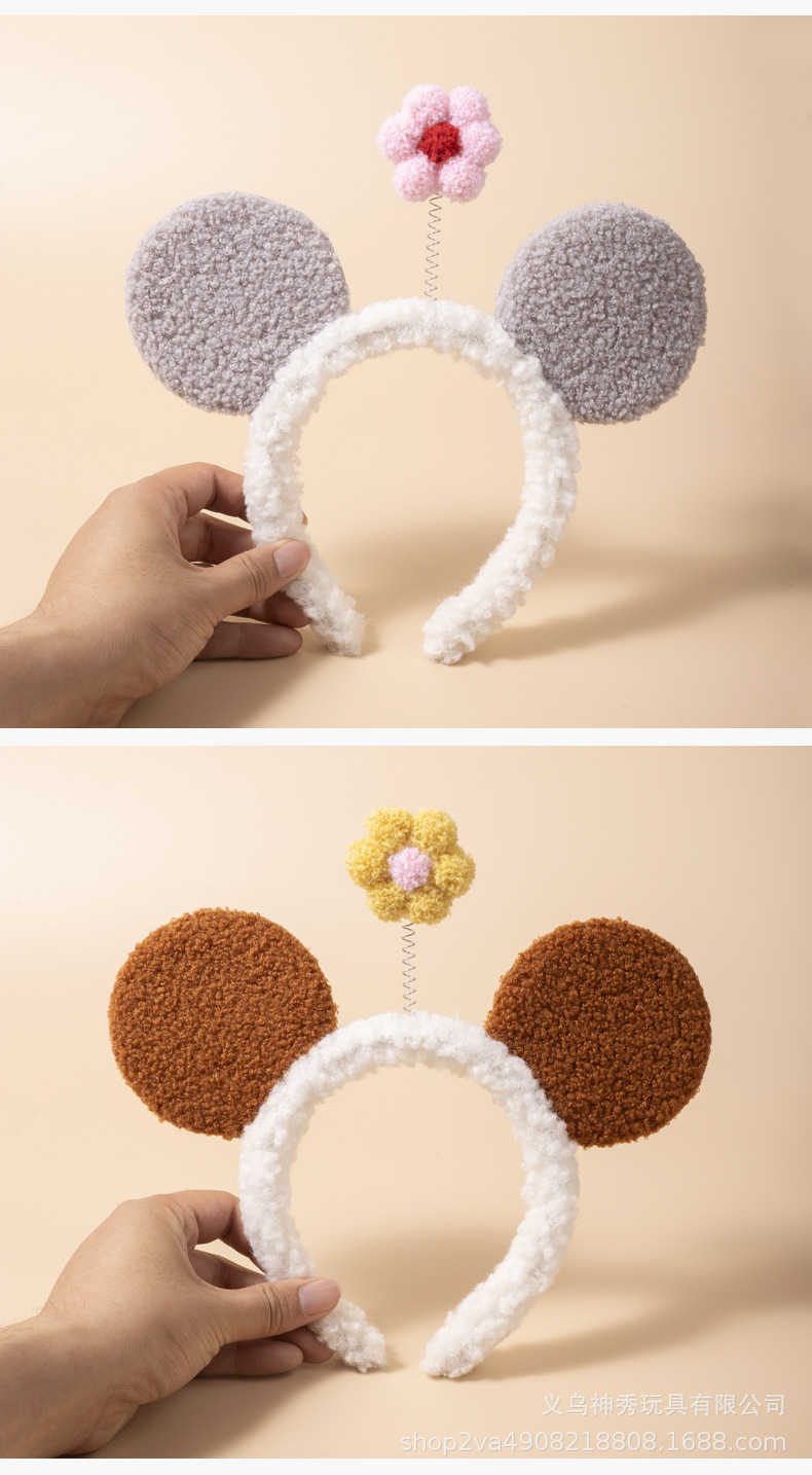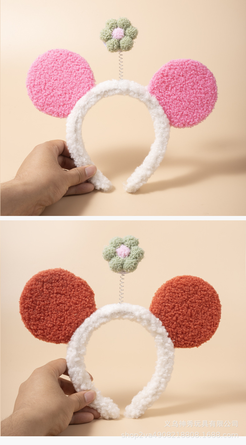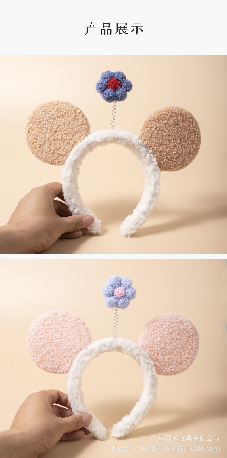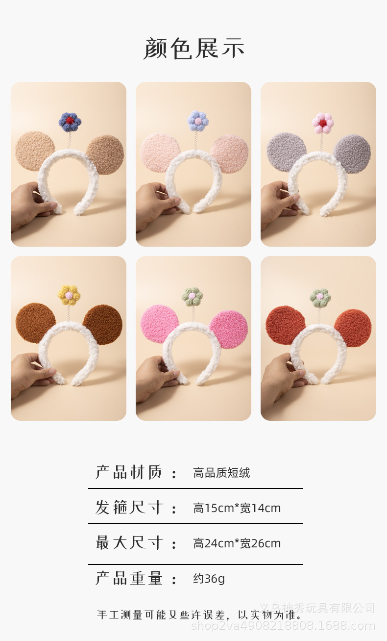 Nuevo estilo coreano orejas redondas pequeñas flores de dibujos animados lindos Mickey pequeñas flores de orejas de cabello para lavar la cara en stock