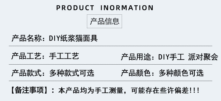 Máscaras de gato máscaras blancas de gato máscaras de pulpa de gato máscaras DIY máscaras de Halloween máscaras de baile TK